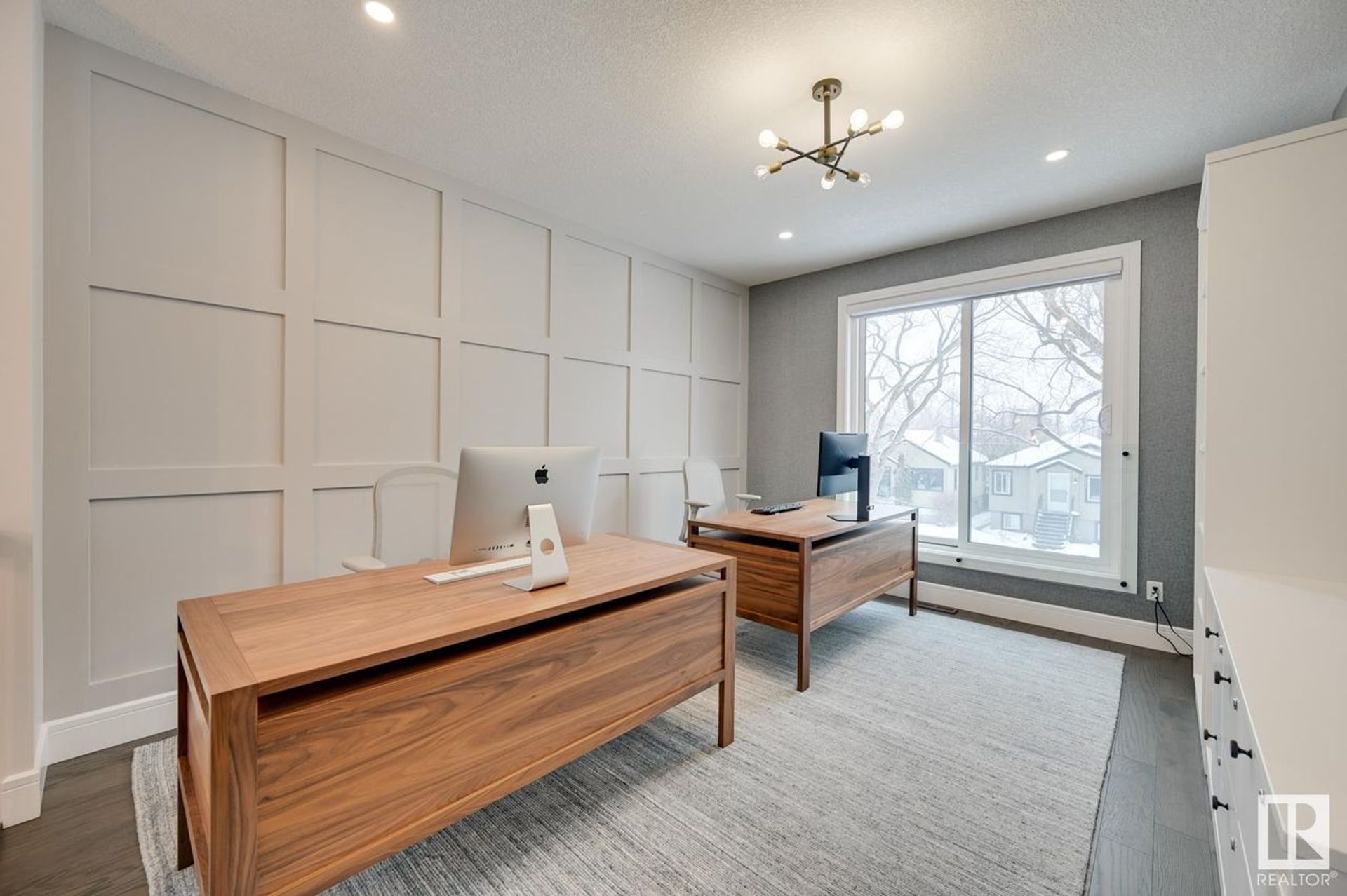 Don’t walk, RUN! Welcome to this professionally designed 2,700 sqft home located on the doorstep of The U of A. You'll love this 4 bedroom home on a quiet, traffic-calmed street in the heart of McKernan! Walk into the bright and open-concept living space with premium HARDWOOD floors, 10’ ceilings, GAS Fireplace, CENTRAL AIR CONDITIONING and $30,000 in designer window coverings! The Chef’s kitchen offers KITCHEN AID Appliances, loads of storage, GAS Stove and large corner PANTRY! Enjoy the convenience of your main floor OFFICE or Bedroom, second family room, FULL 4pc bathroom and SEPARATE Basement Entrance for a future SUITE. Upstairs, find a beautiful BONUS ROOM and huge Master with extra large walk-in closet and designer 5pc ENSUITE! Down the hall, find 2 more bedrooms, 3rd full bathroom, upstairs laundry room with sink and a beautiful balcony overlooking the treetops! Your garden door leads to a SUNNY WEST FACING backyard with composite deck and 24’x24’ Oversized Double