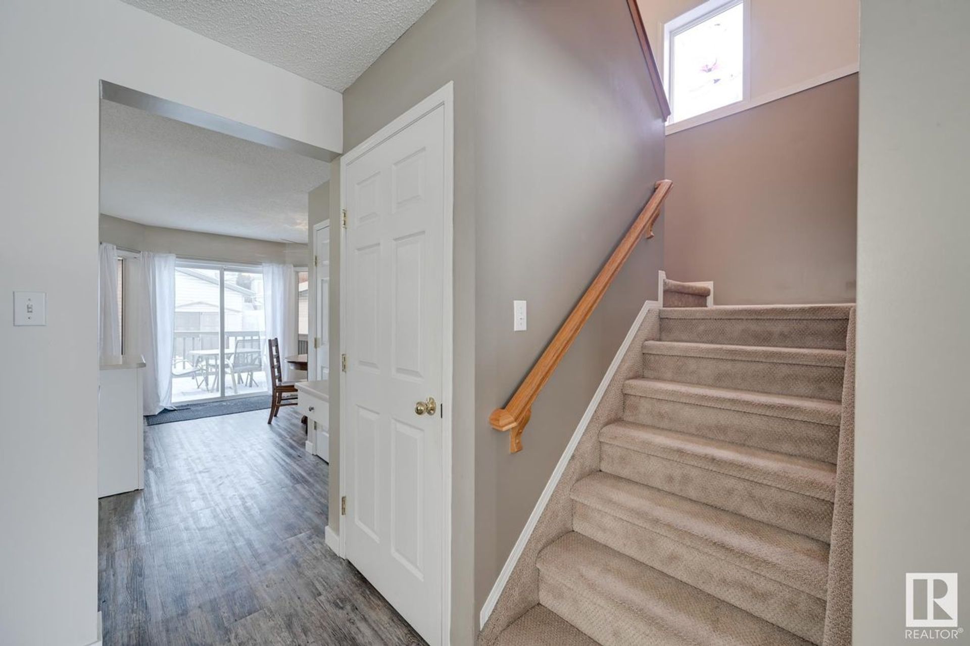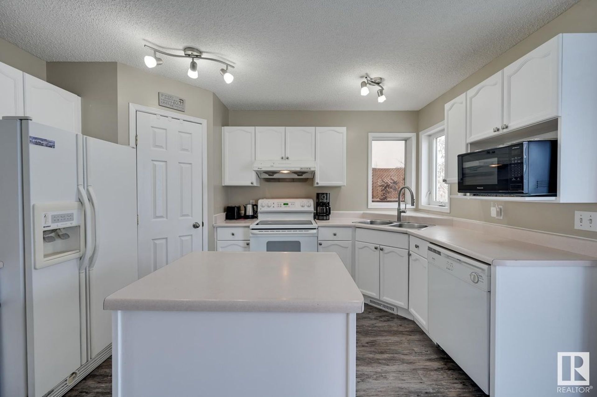Welcome to Edmonton’s Miller Neighbourhood! Beautifully maintained 4bd (3up+1down) + 3bath, 2 storey nestled in a quiet cul de sac. Features a large living room with flex space near entry that can double as a formal dining rm, office, or toy room. BRIGHT WHITE KITCHEN has corner pantry/island which overlooks the WEST BACKING YARD. The dinette has a quick access sliding door large deck/yard. The main floor has Commercial Grade NEWER VINYL PLANK flooring! As you go upstairs, the Upper 3 bdms are well appointed for size. PRIMARY BDRM has plenty of room to accommodate a king size bed with a MASSIVE Walk-in Closet. The basement features rec room currently used as a bedm. 4th bedroom exists but some some minor finishing details remain for the new owners to take on. A full 3pc bath is also present. Dble garage is spacious & definite a MUST HAVE! Close to schools, busing, access to Shopping District, Costco, Walmart & Edmonton’s Pride Jewel- the Henday Ring Road! Great family home waiting to be LOVED O
