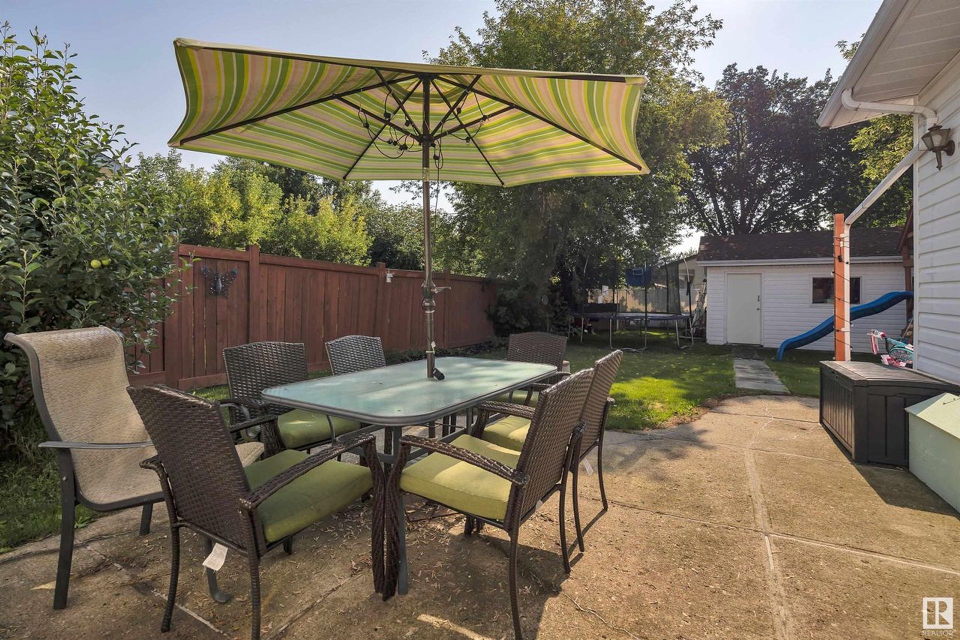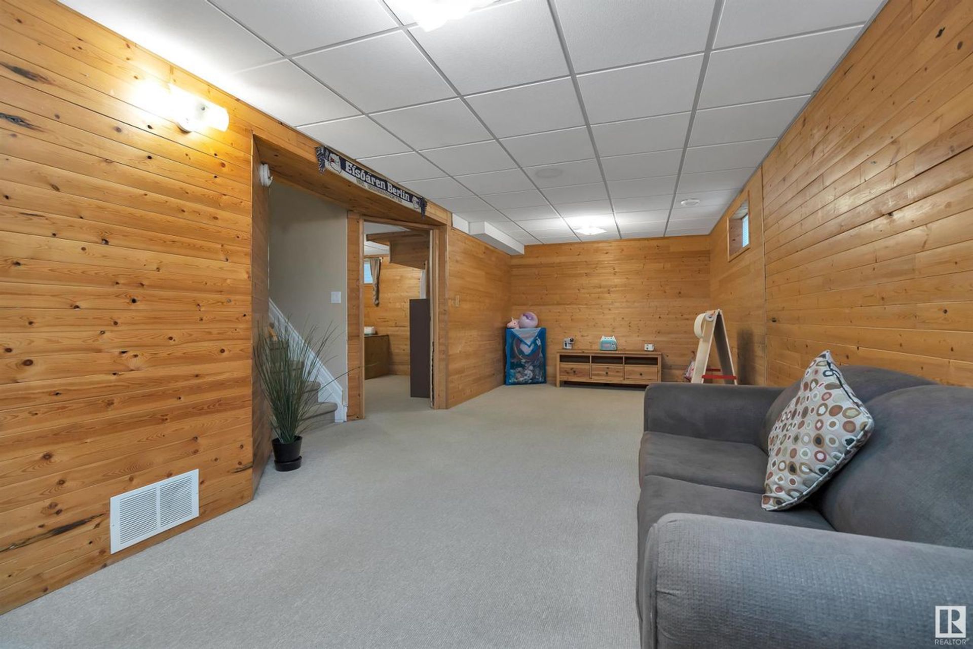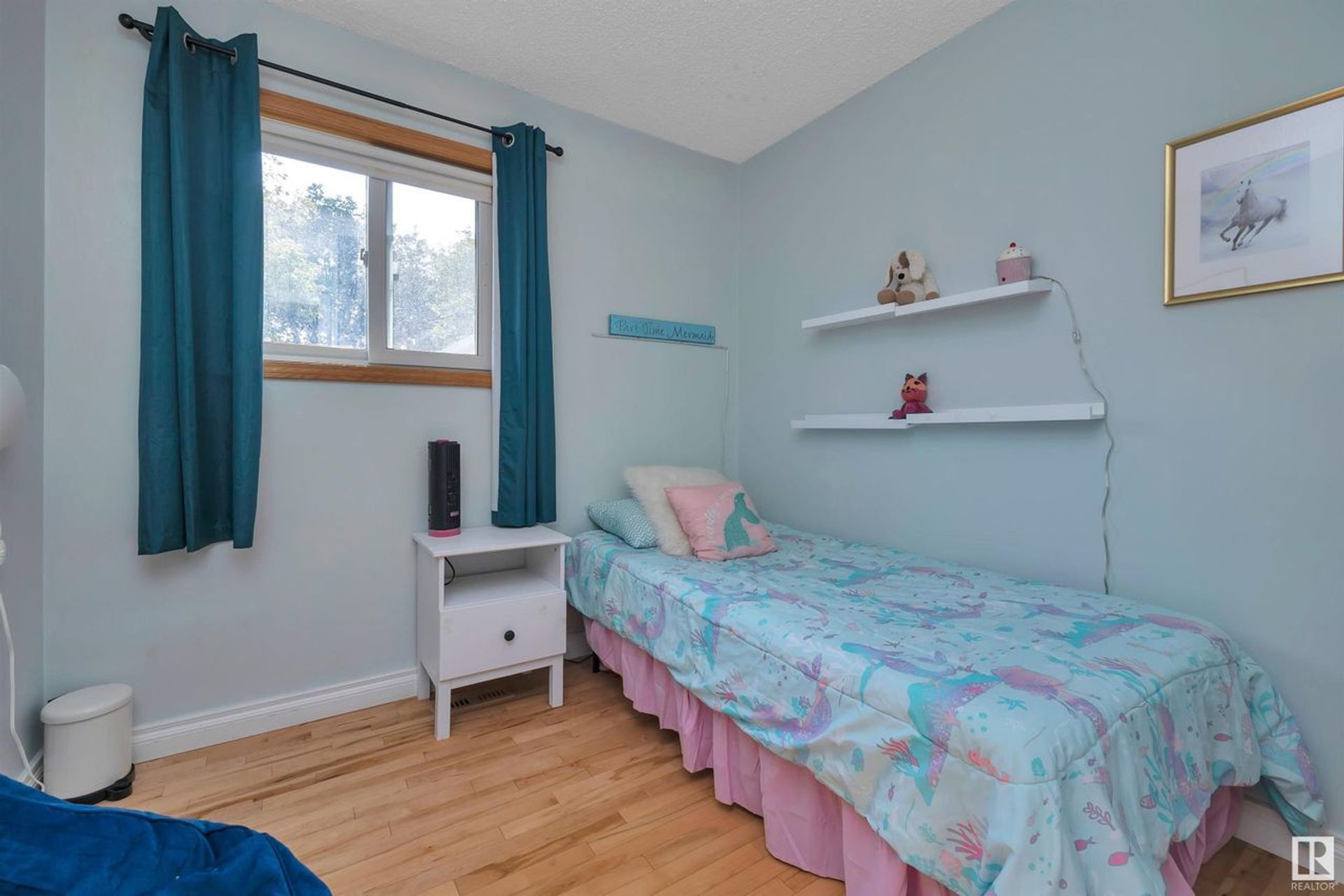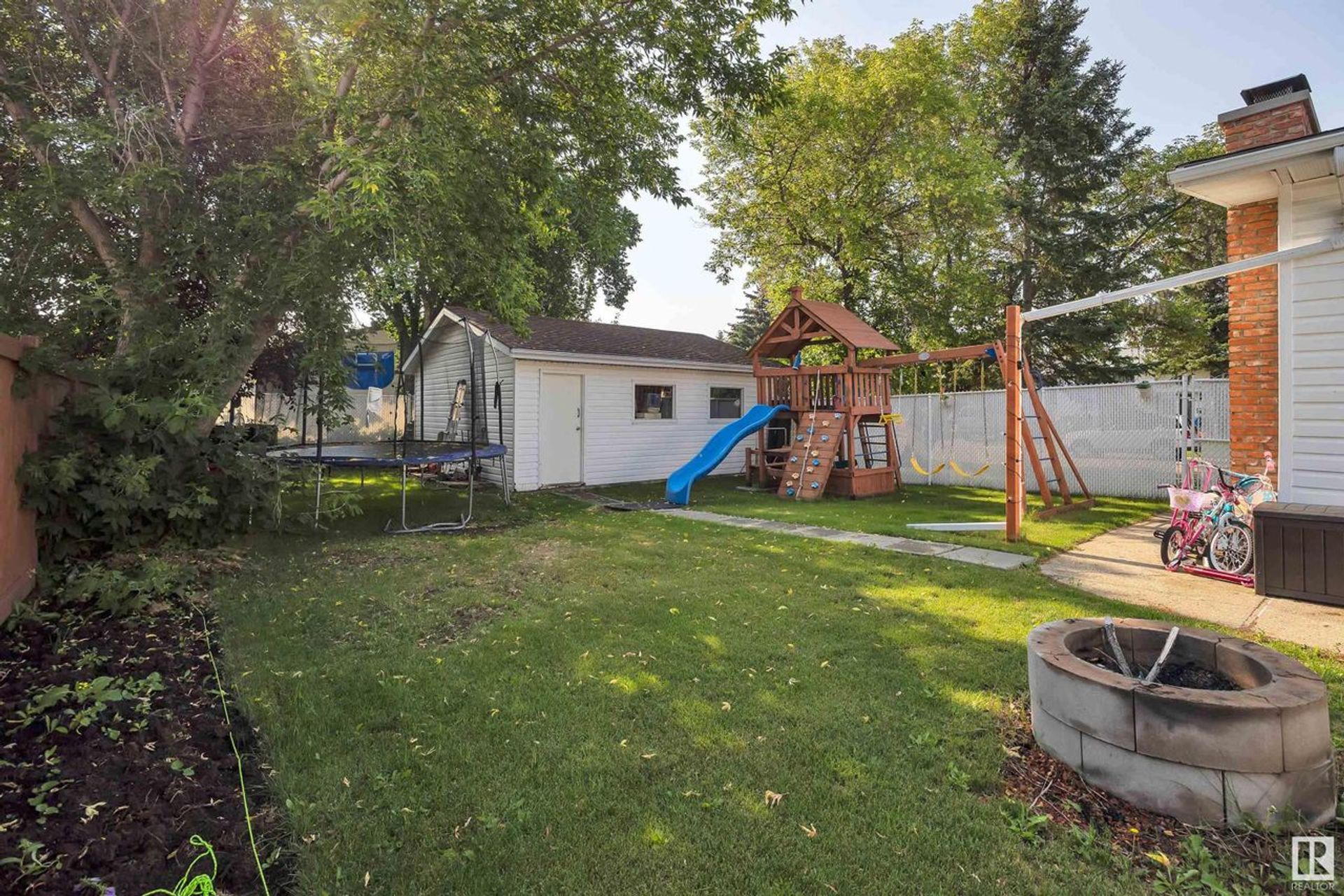Welcome to Menisa! Situated on a large corner lot, this conveniently located and well maintained 4 bedroom bungalow is ready for you to call home. As you enter, you will be welcomed into the formal dining room with views of the stunning open living room with its vaulted ceiling, brick-faced wood fireplace, and garden doors to the rear patio and treed backyard. The spacious kitchen features stainless steel appliances, a pantry, and breakfast nook. Just down the hall is the 4-piece main bathroom, primary bedroom with walk-in closet, and 2 additional bedrooms. The finished basement features a large rec room, 4th bedroom or home office/gym, laundry, and a 3-piece bathroom. The double detached garage provides plenty of space for storage or a workshop. Newer furnace and triple paned windows. Factor in the easy access to Anthony Henday, Mill Woods Town Centre & Rec Centre, and being within walking distance to schools, parks, and public transit, you’ll be close to all the action.