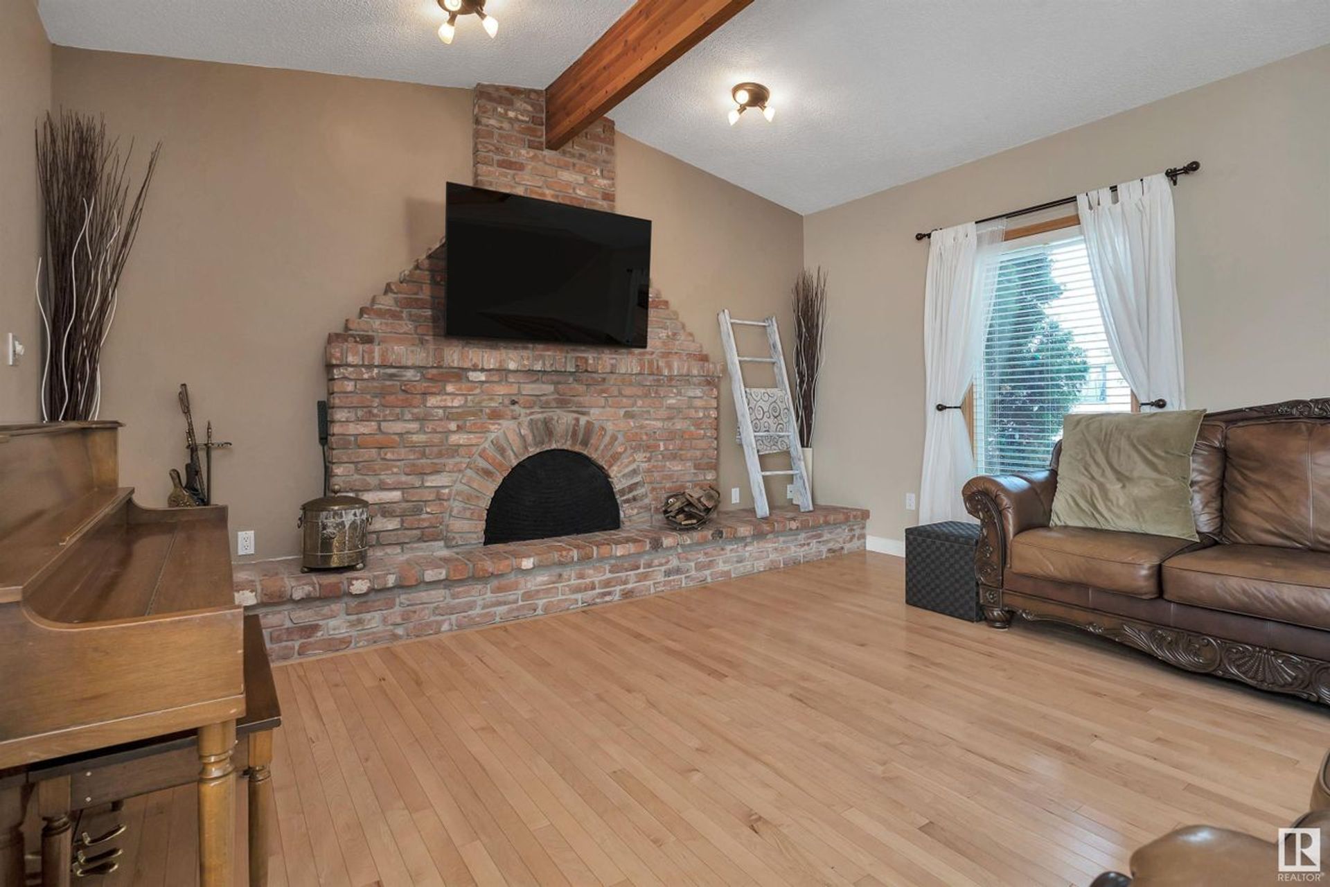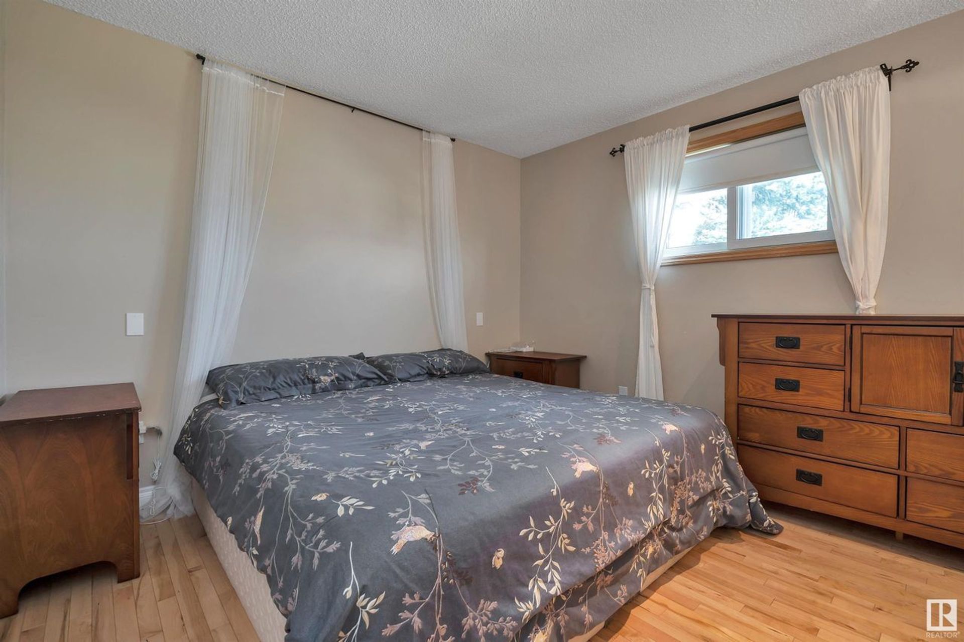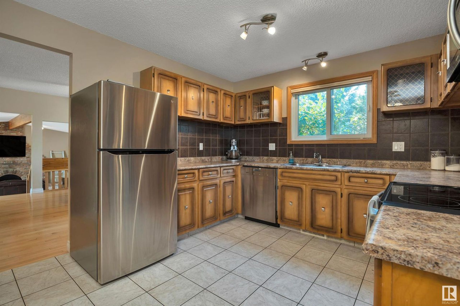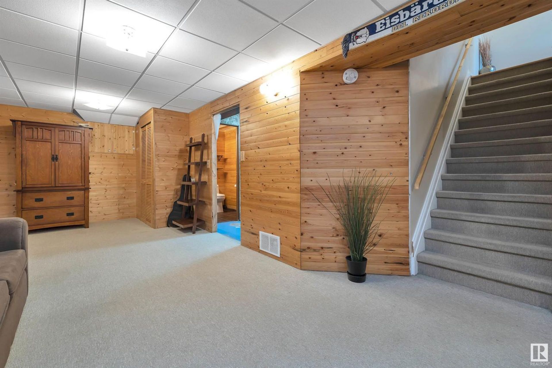 Welcome to Menisa! Situated on a large corner lot, this conveniently located and well maintained 4 bedroom bungalow is ready for you to call home. As you enter, you will be welcomed into the formal dining room with views of the stunning open living room with its vaulted ceiling, brick-faced wood fireplace, and garden doors to the rear patio and treed backyard. The spacious kitchen features stainless steel appliances, a pantry, and breakfast nook. Just down the hall is the 4-piece main bathroom, primary bedroom with walk-in closet, and 2 additional bedrooms. The finished basement features a large rec room, 4th bedroom or home office/gym, laundry, and a 3-piece bathroom. The double detached garage provides plenty of space for storage or a workshop. Newer furnace and triple paned windows. Factor in the easy access to Anthony Henday, Mill Woods Town Centre & Rec Centre, and being within walking distance to schools, parks, and public transit, you’ll be close to all the action.