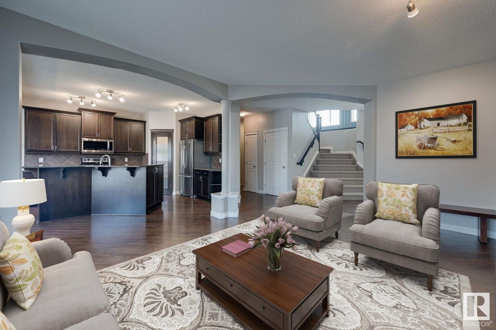 Look no further! You will be impressed with this beautiful family home offering great living space for the entire family. The bright open concept offers a wonderful entertaining area with a large Great Rm (gas fireplace & B/I wall unit), a Dinette that can fit a table for 12 and a large deck - perfect for those family BBQ's. Your Chefs kitchen has ample Maple Cabinets, Stainless Steel Appliances, a large island with breakfast bar as well as a walk through pantry! There is a huge vaulted BONUS Rm on the 2nd level that can be a theatre area for Movie Night, kids play space, Gym/Yoga area and you'll still have room for a home office/study. The Master Oasis accommodates king size furniture, has a nice walk in closet and lovely ensuite with Soaker tub to relax in. In addition, there's a Laundry Rm, 2 additional Bdrms that are a good size and a full bathroom completing the 2nd floor. You will appreciate having a HEAT GARAGE, CENTRAL A/C, 9 Ft Ceilings & you have great access to schools, shopping, trails