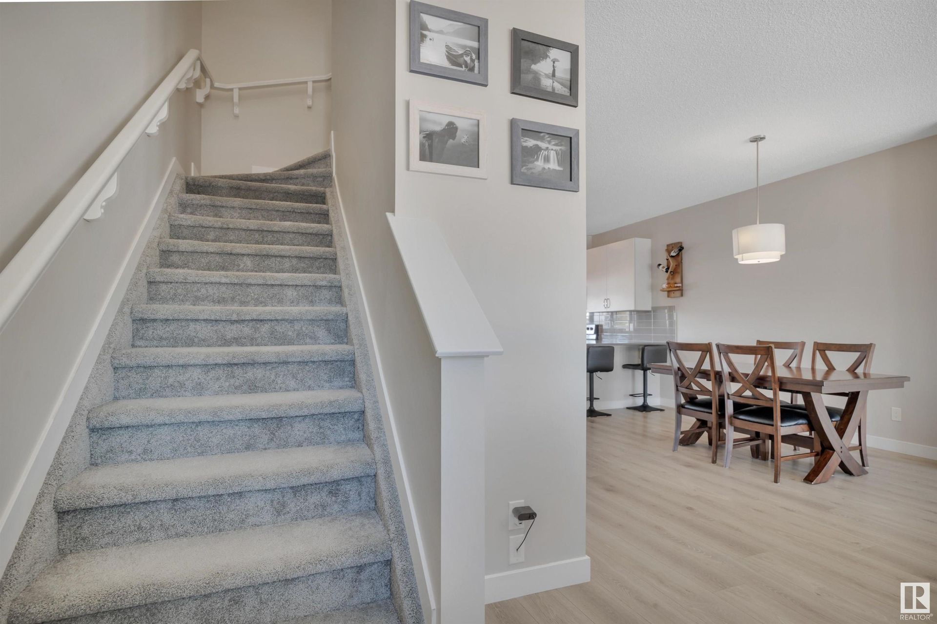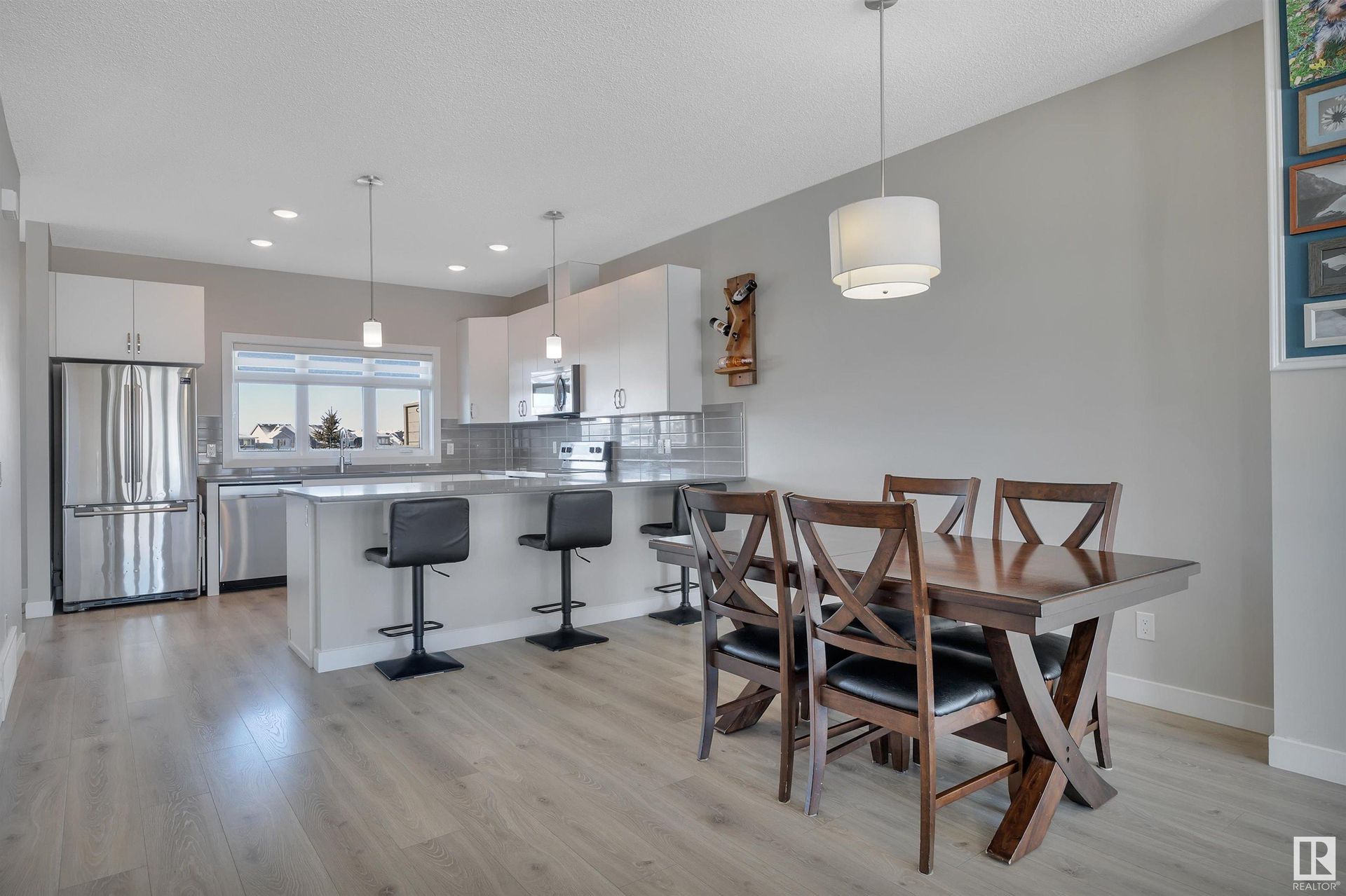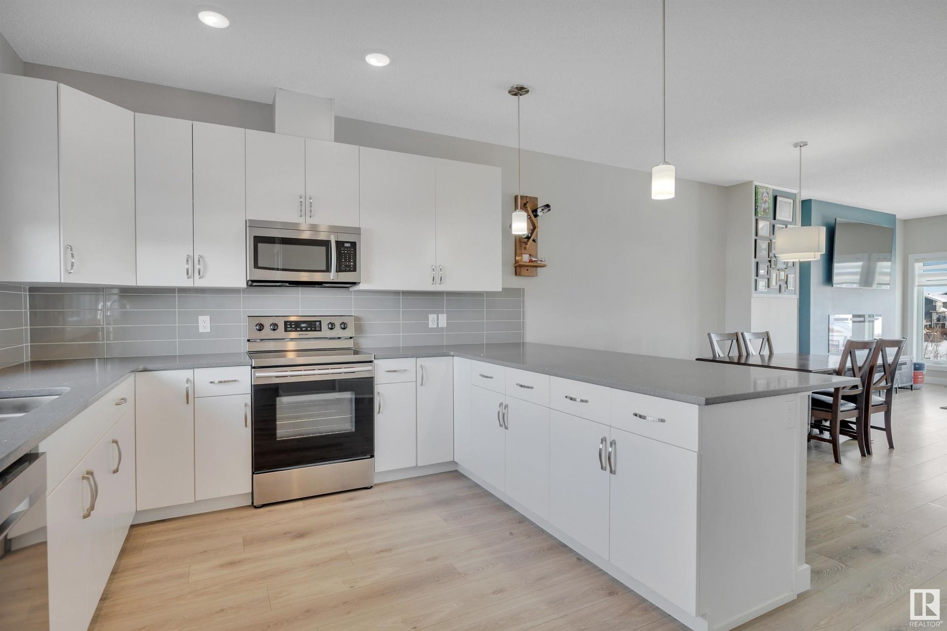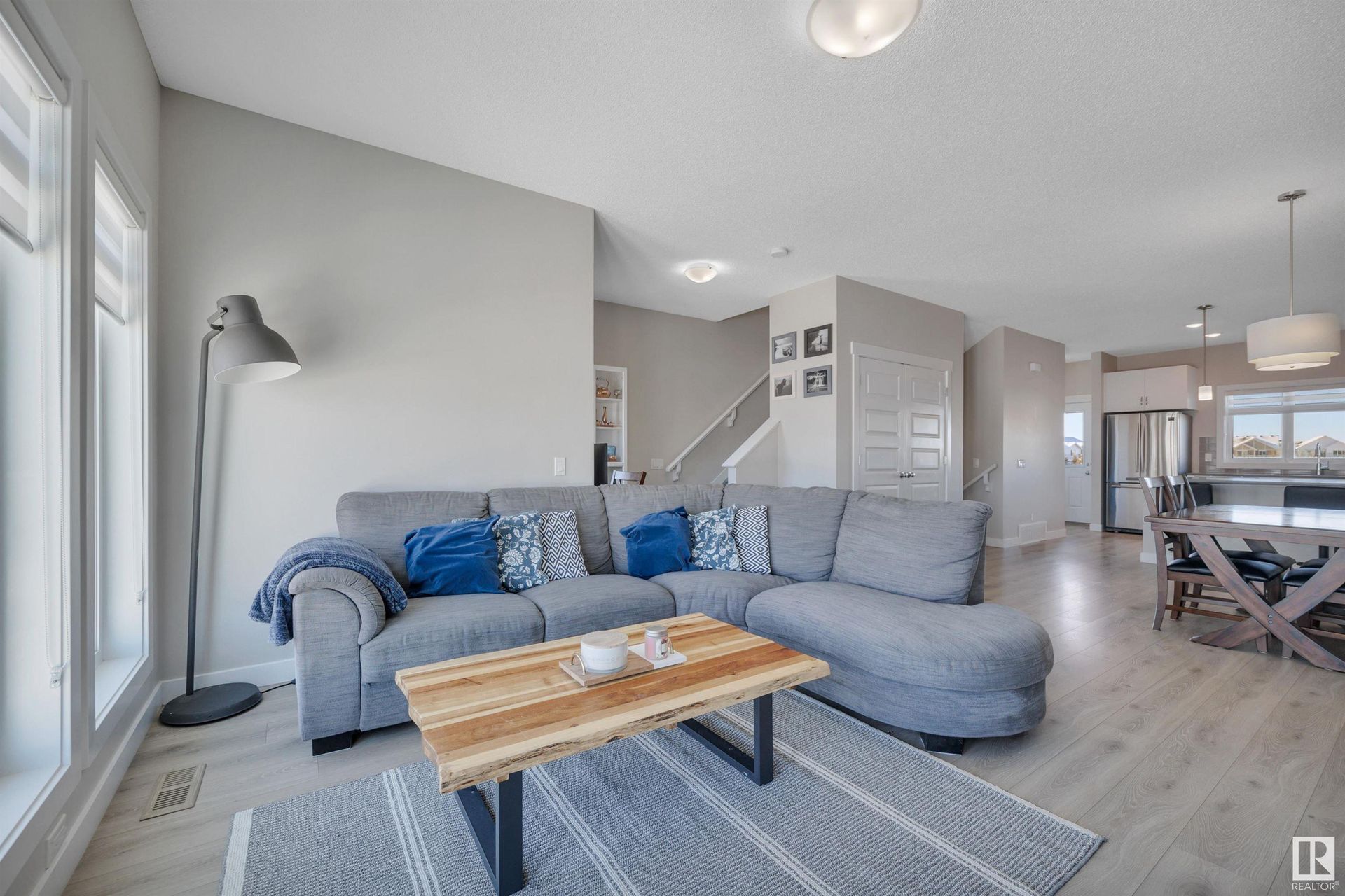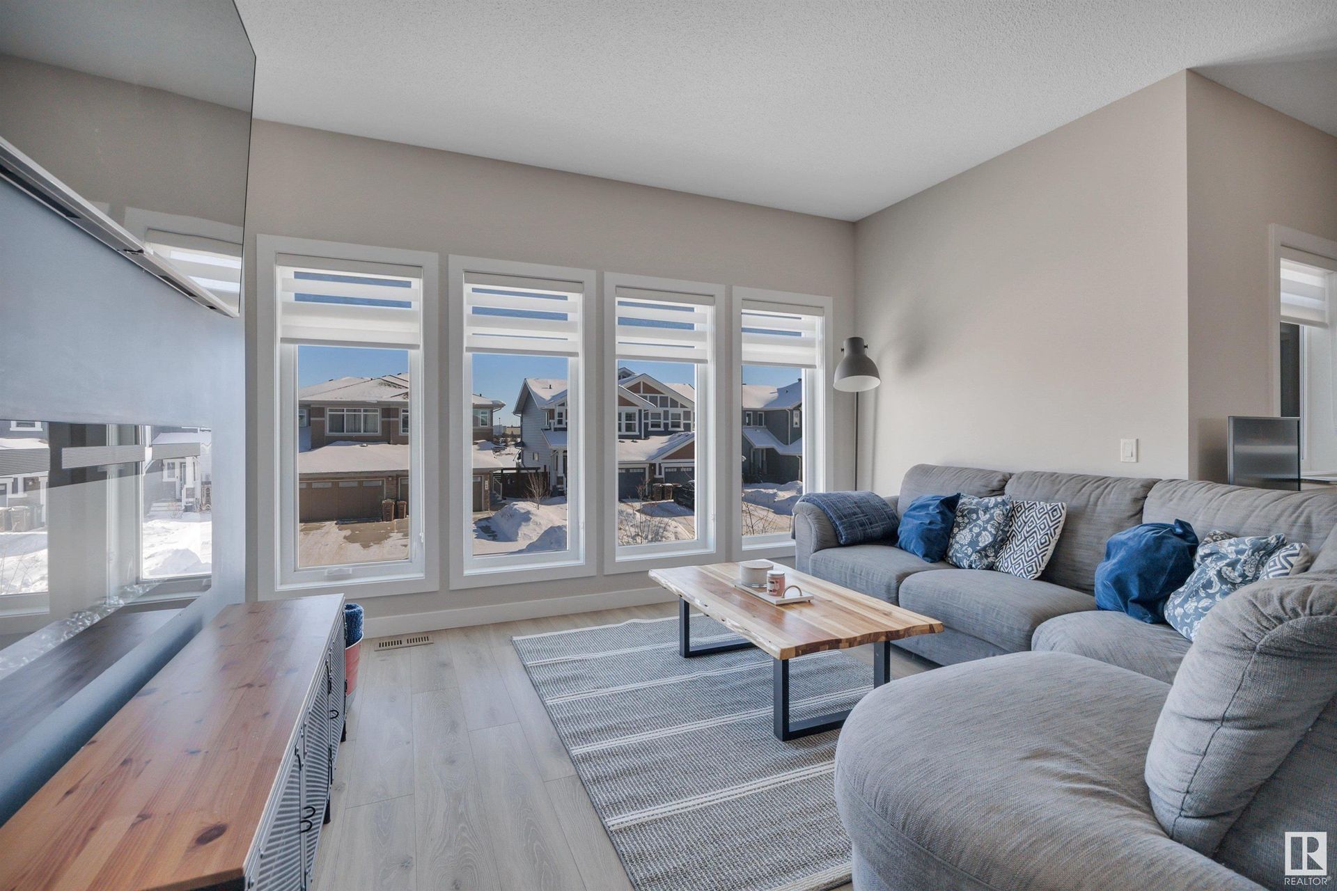 Welcome to Jensen Lakes! This stylish and air-conditioned townhouse backs a park and features 3 beds, 2.5 baths, and a double attached garage with ample storage. The family room, with an abundance of natural light, provides the perfect space to relax with the family. Enjoy cooking in your spacious kitchen with stainless steel appliances, quartz countertops, and extended counter space and storage. Beyond the kitchen, you’ll find your rear balcony with stairs to the lower level deck and spacious backyard. The upstairs features your primary suite with a walk-through closet and 3-piece ensuite, 2 additional bedrooms, a 4-piece bathroom, and your separate laundry room. With vinyl flooring, custom blinds, and 9' ceilings on the main floor, you'll appreciate the attention to detail and pride of ownership. Enjoy the perks of living in Jensen Lakes, including access to the beach, lake, and community programming. Located close to schools, parks, shopping, and restaurants, you'll be close to all the action.