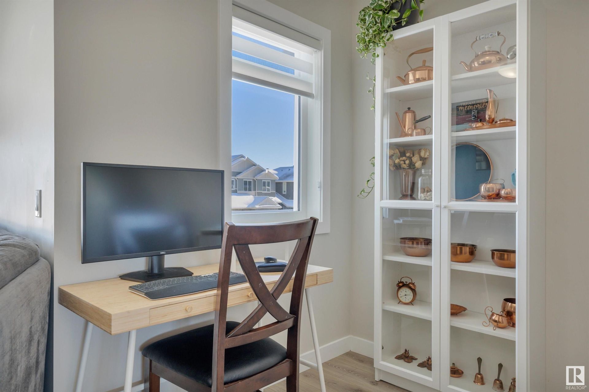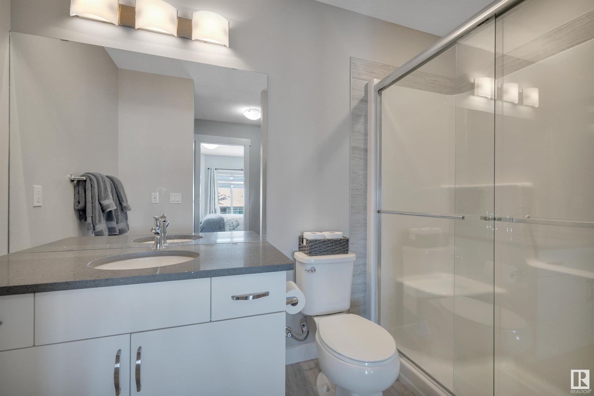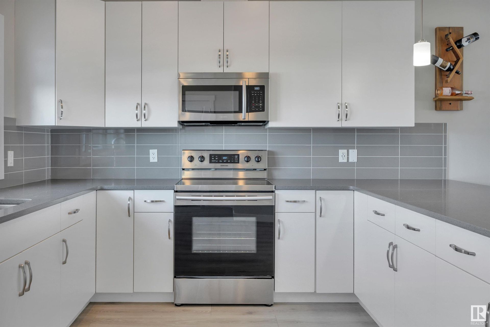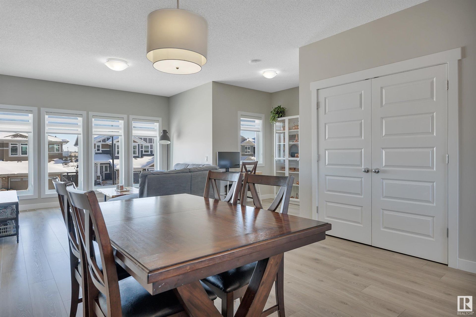 Welcome to Jensen Lakes! This stylish and air-conditioned townhouse backs a park and features 3 beds, 2.5 baths, and a double attached garage with ample storage. The family room, with an abundance of natural light, provides the perfect space to relax with the family. Enjoy cooking in your spacious kitchen with stainless steel appliances, quartz countertops, and extended counter space and storage. Beyond the kitchen, you’ll find your rear balcony with stairs to the lower level deck and spacious backyard. The upstairs features your primary suite with a walk-through closet and 3-piece ensuite, 2 additional bedrooms, a 4-piece bathroom, and your separate laundry room. With vinyl flooring, custom blinds, and 9' ceilings on the main floor, you'll appreciate the attention to detail and pride of ownership. Enjoy the perks of living in Jensen Lakes, including access to the beach, lake, and community programming. Located close to schools, parks, shopping, and restaurants, you'll be close to all the action.
