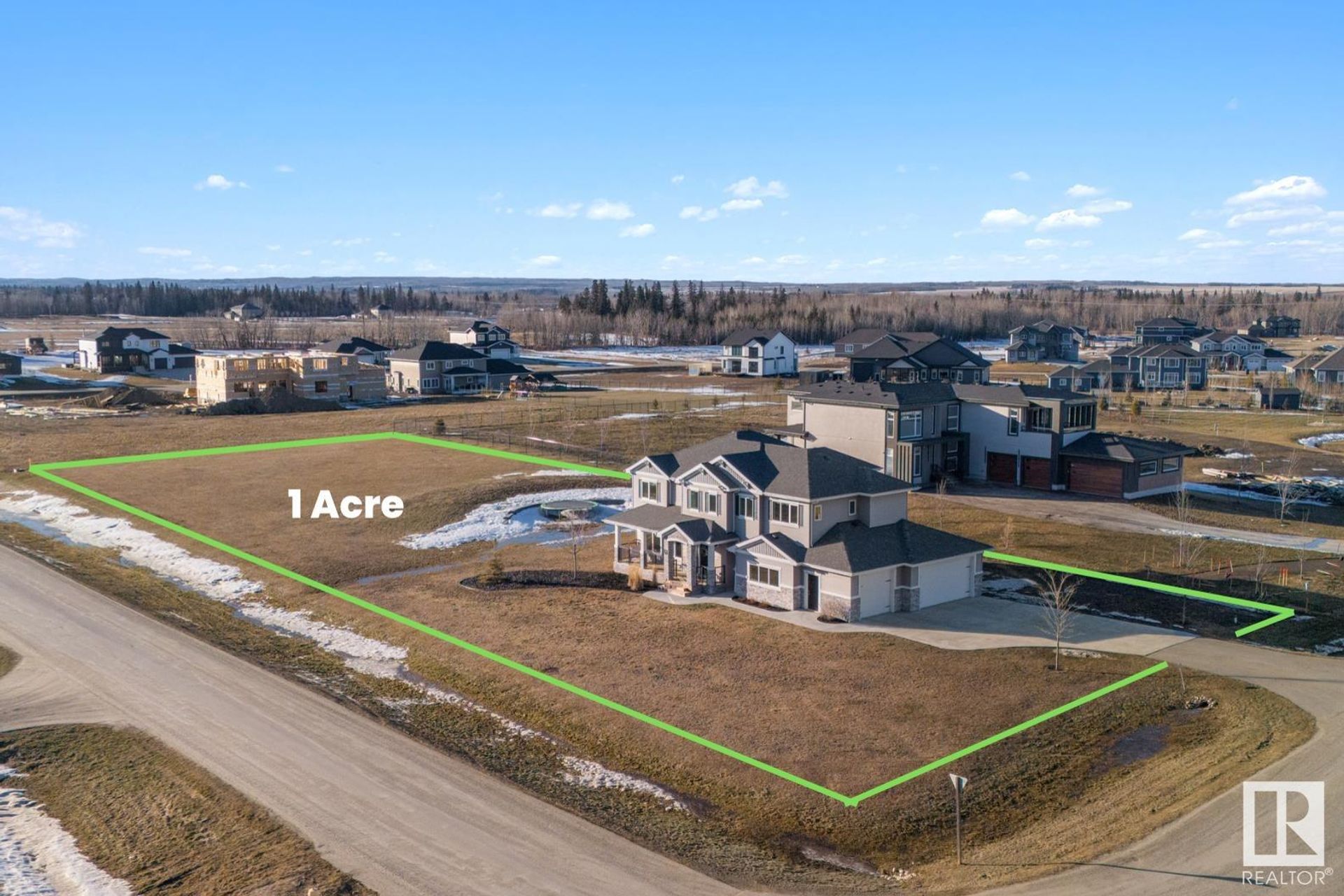 Wow! Conveniently located only 4 Minutes West of Edmonton, this Gorgeous Dream Acreage sits on 1 acre with Municipal Water and Sewer Service! This huge family home has 5 bedrooms, 5 bathrooms, a Professionally Finished Basement, Central Air Conditioning, a Fully Landscaped 1 Acre Yard and a Heated 36'x32' Triple Garage with Floor Drain! This home has been Meticulously Maintained and is in 10/10 Mint Condition! Walk into your bright living space with Soaring Vaulted Ceilings, Massive Windows and a Giant Chef's Kitchen that will knock your socks off! Upstairs, you'll find a huge Master Suite, Bonus Room, Laundry Room w. Sink, and two kids bedrooms each with their own ensuite! Your professionally finished basement reveals your Home Theatre with Built In Speakers, 4th and 5th bedrooms, and another full bathroom. All of this plus a West-Facing backyard, perfect for summer sunsets! Enjoy amazing Family Living in a Prime Location - just 4 minutes outside of Edmonton in a neighbourhood filled with young families.