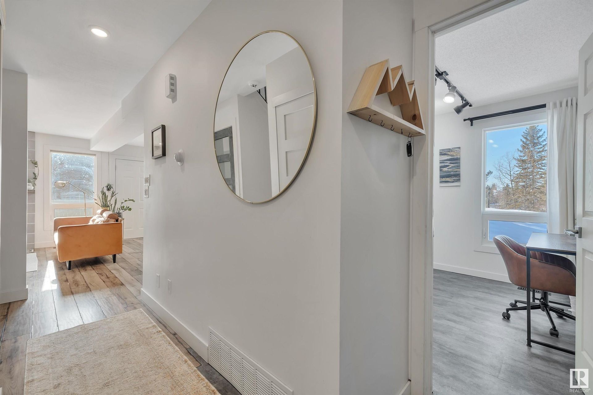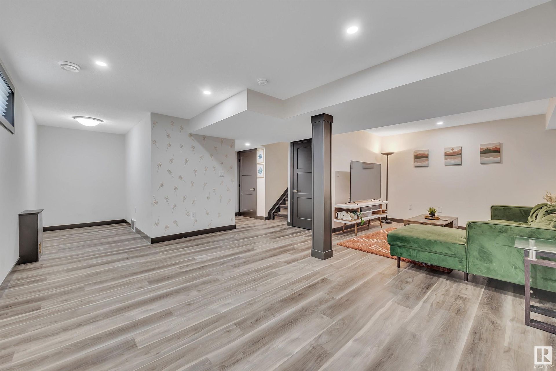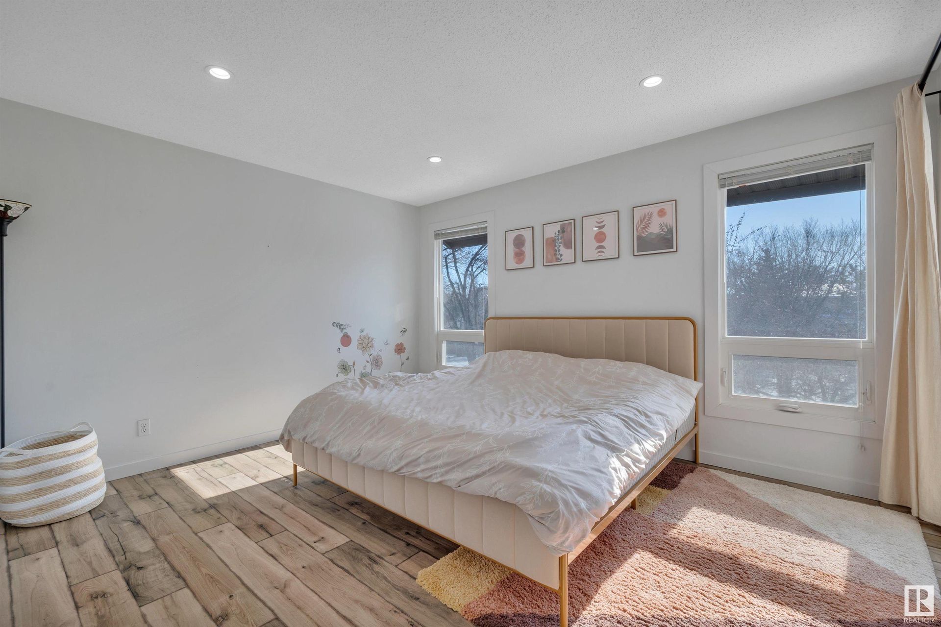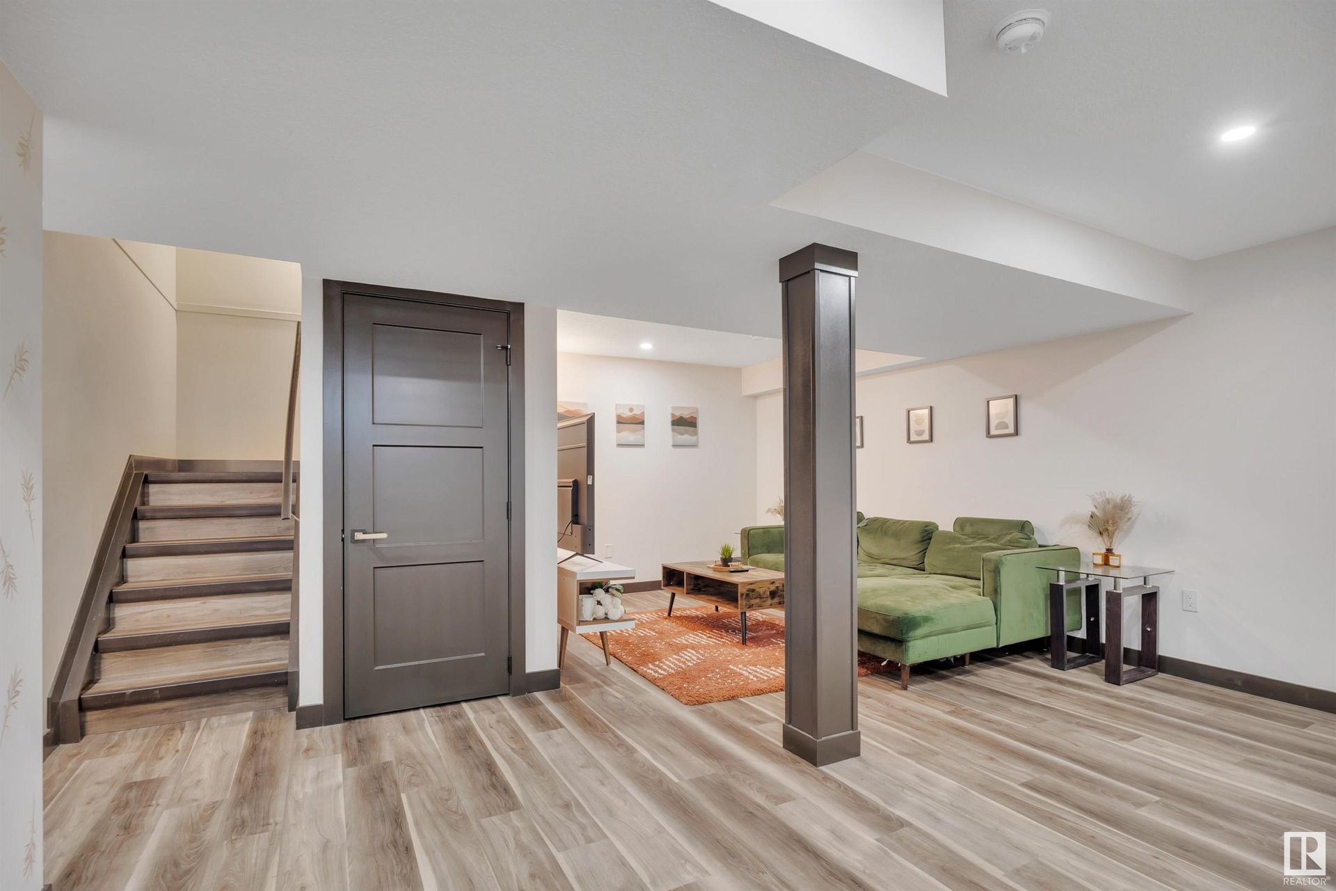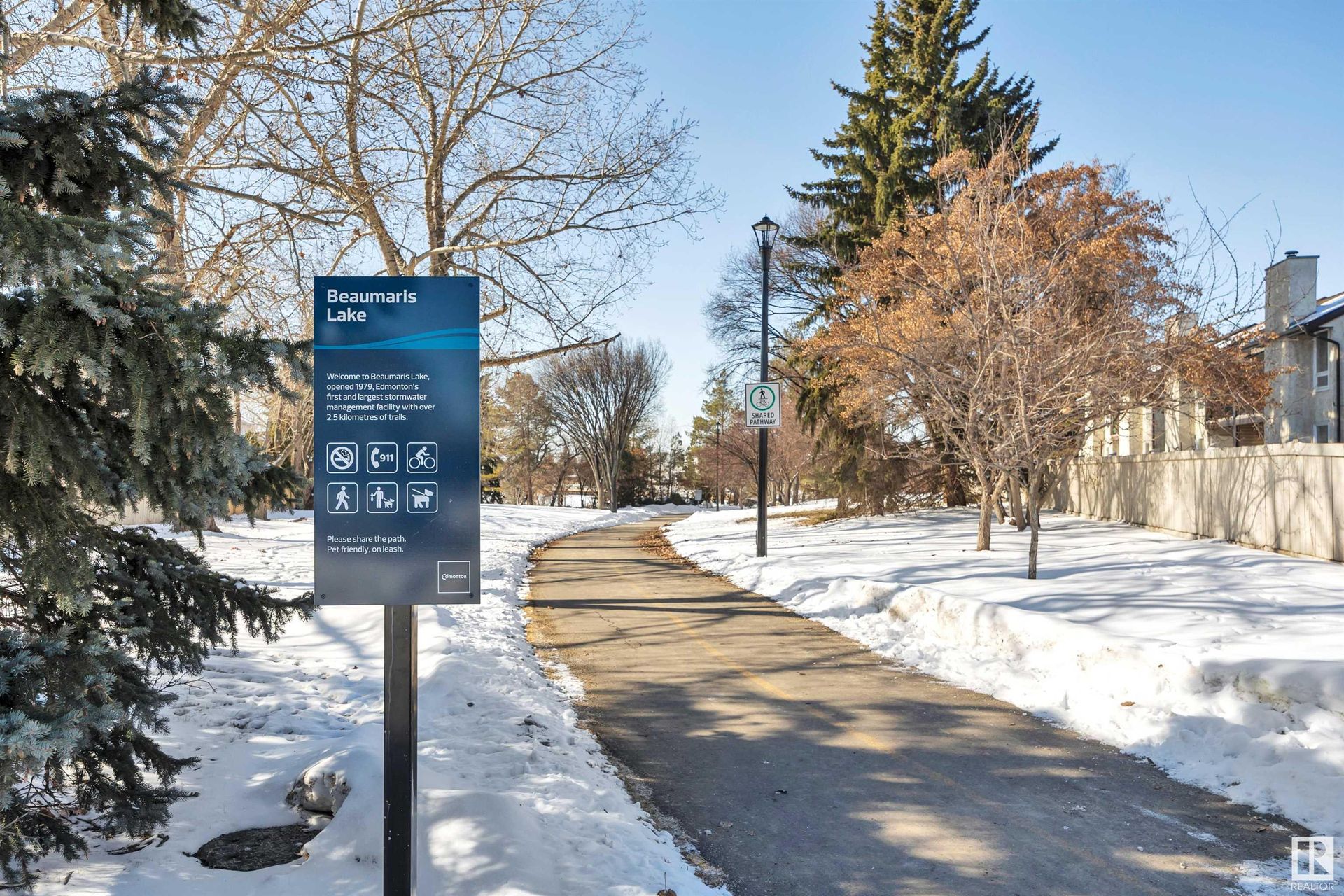 Welcome to Woodlake in Beaumaris! Rare opportunity to own this beautifully updated 2 storey half-duplex with attached garage and direct views of walking trails and Beaumaris Lake. This home features 3 bedrooms, a main floor den, main floor laundry, and a fully finished basement. The bright and open-concept layout invites you into the oversized living room with gas fireplace, the dining area, and kitchen with stylish cabinets, quartz countertops, and stainless steel appliances. Beyond the patio door, you will find your private and fully fenced backyard. The upstairs features a 5-piece main bath, 2 additional bedrooms, and your primary suite with an incredible walk-in closet and your private balcony overlooking the lake. The basements was recently professionally developed to include a large family room and stylish 4-piece bath. Be close to all the action with easy access to Castle Downs Rec Centre, Northgate Centre, the shops and restaurants along Canadian Forces Trail, and the Anthony Henday. A must see!