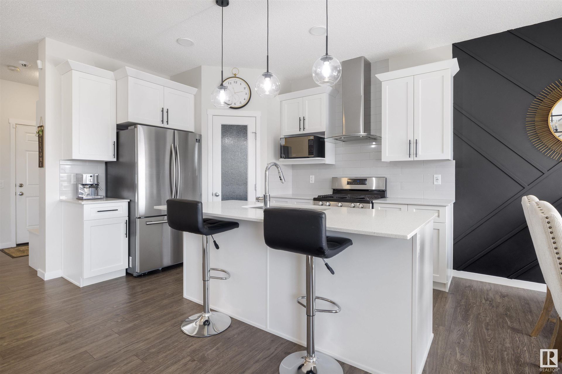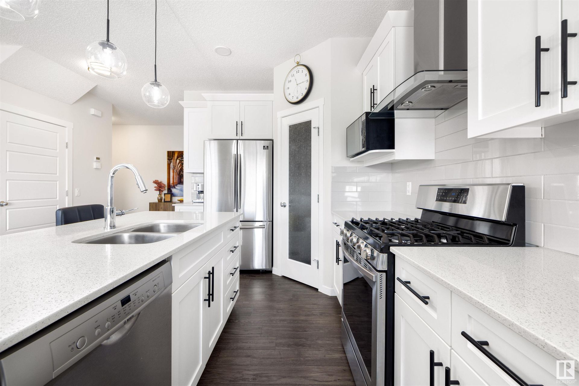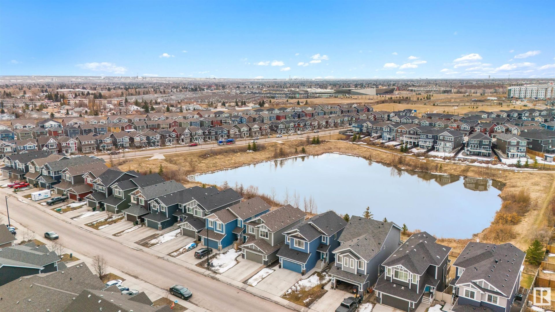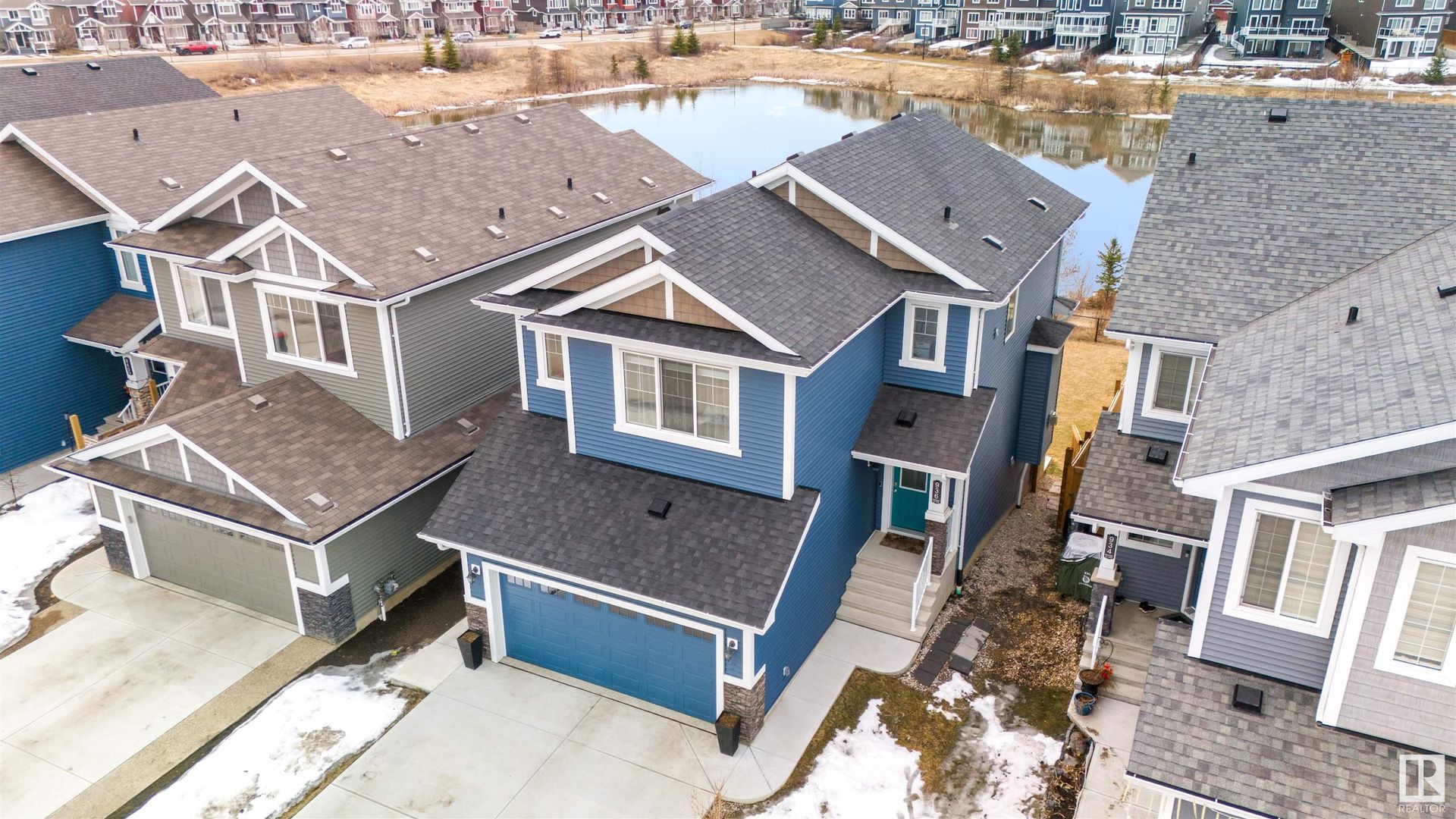 This modern home features 4 beds, 3.5 baths, and a walk-out basement backing onto a lake. The fully finished basement with separate entrance offers a 2nd kitchen, living room, 4-piece bath, and additional bedroom. The open concept kitchen is sure to impress with its quartz countertops, stainless steel appliances, corner pantry, and gas range. Beyond the dining area lies the patio doors to your rear deck with stunning views of the water. Relax in the living room next to the gas fireplace, or upstairs in your stylish bonus room. The primary suite with walk-in closet and ensuite, the laundry room, a 4-piece bath, and 2 additional bedrooms completes the upstairs. Once outside, venture down the concrete steps to the oversized patio and fully fenced yard. With 9' ceilings on the main floor and countless upgrades throughout, you will appreciate the attention to detail. Conveniently located close to walking trails, Clareview Rec Centre, the Anthony Henday, and the shops and restaurants of Manning Town Centre.