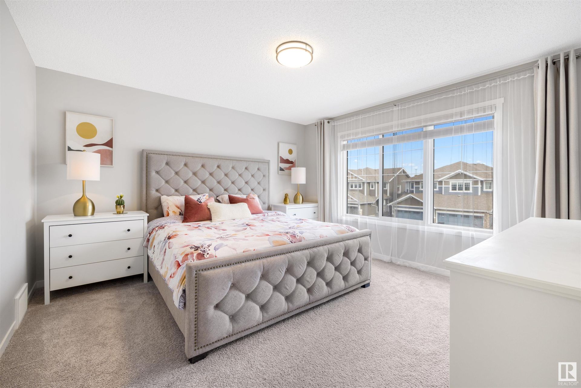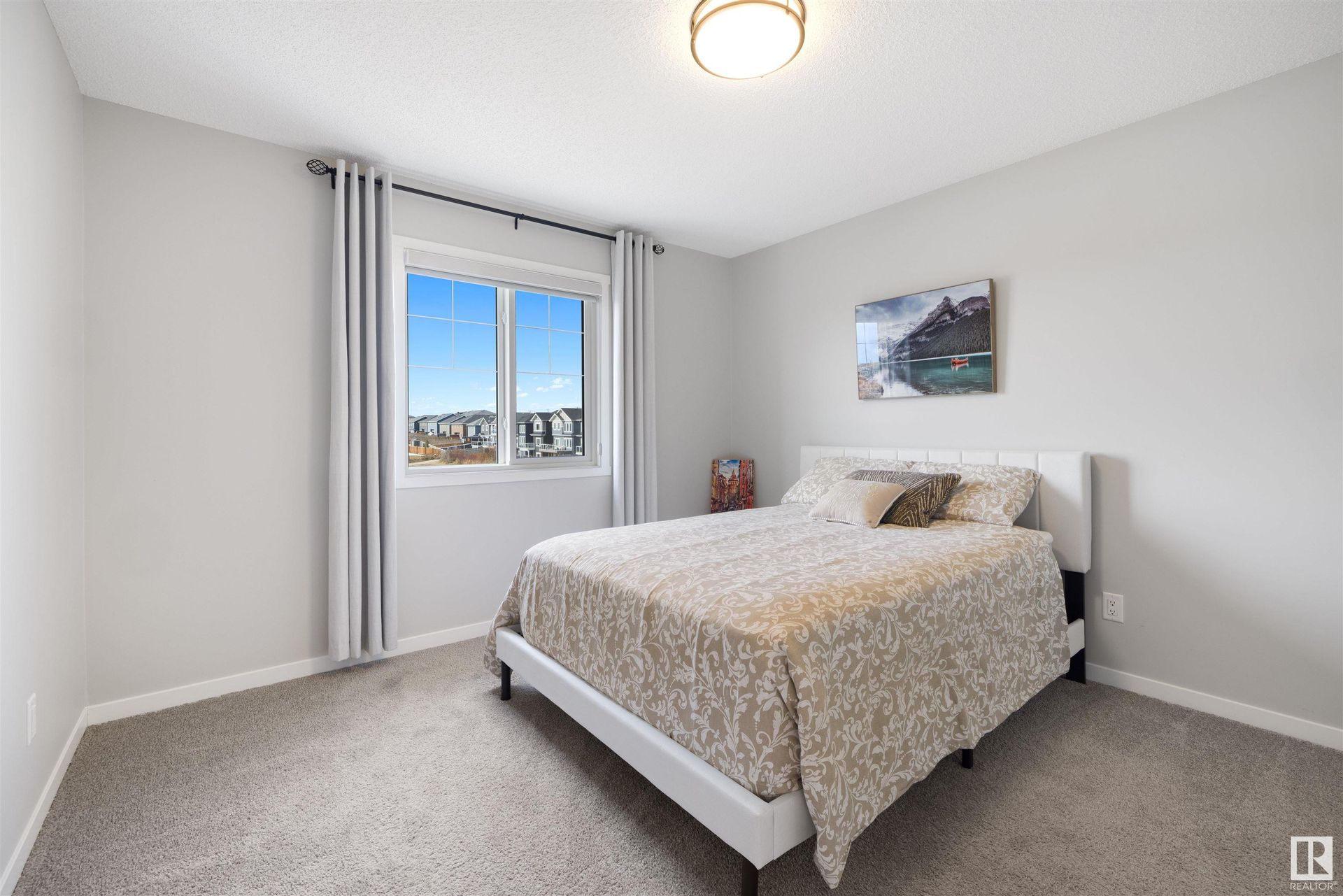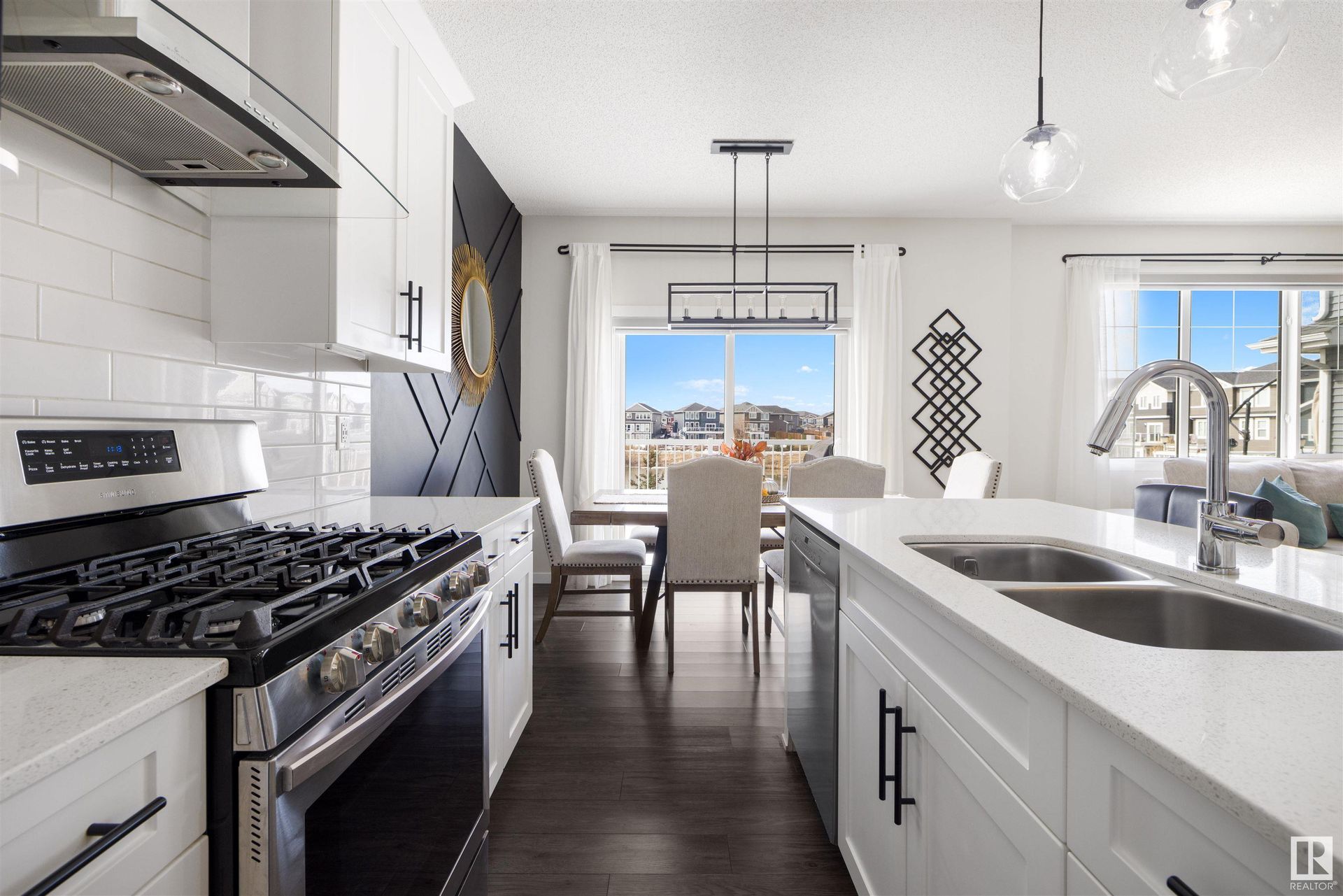 This modern home features 4 beds, 3.5 baths, and a walk-out basement backing onto a lake. The fully finished basement with separate entrance offers a 2nd kitchen, living room, 4-piece bath, and additional bedroom. The open concept kitchen is sure to impress with its quartz countertops, stainless steel appliances, corner pantry, and gas range. Beyond the dining area lies the patio doors to your rear deck with stunning views of the water. Relax in the living room next to the gas fireplace, or upstairs in your stylish bonus room. The primary suite with walk-in closet and ensuite, the laundry room, a 4-piece bath, and 2 additional bedrooms completes the upstairs. Once outside, venture down the concrete steps to the oversized patio and fully fenced yard. With 9' ceilings on the main floor and countless upgrades throughout, you will appreciate the attention to detail. Conveniently located close to walking trails, Clareview Rec Centre, the Anthony Henday, and the shops and restaurants of Manning Town Centre.