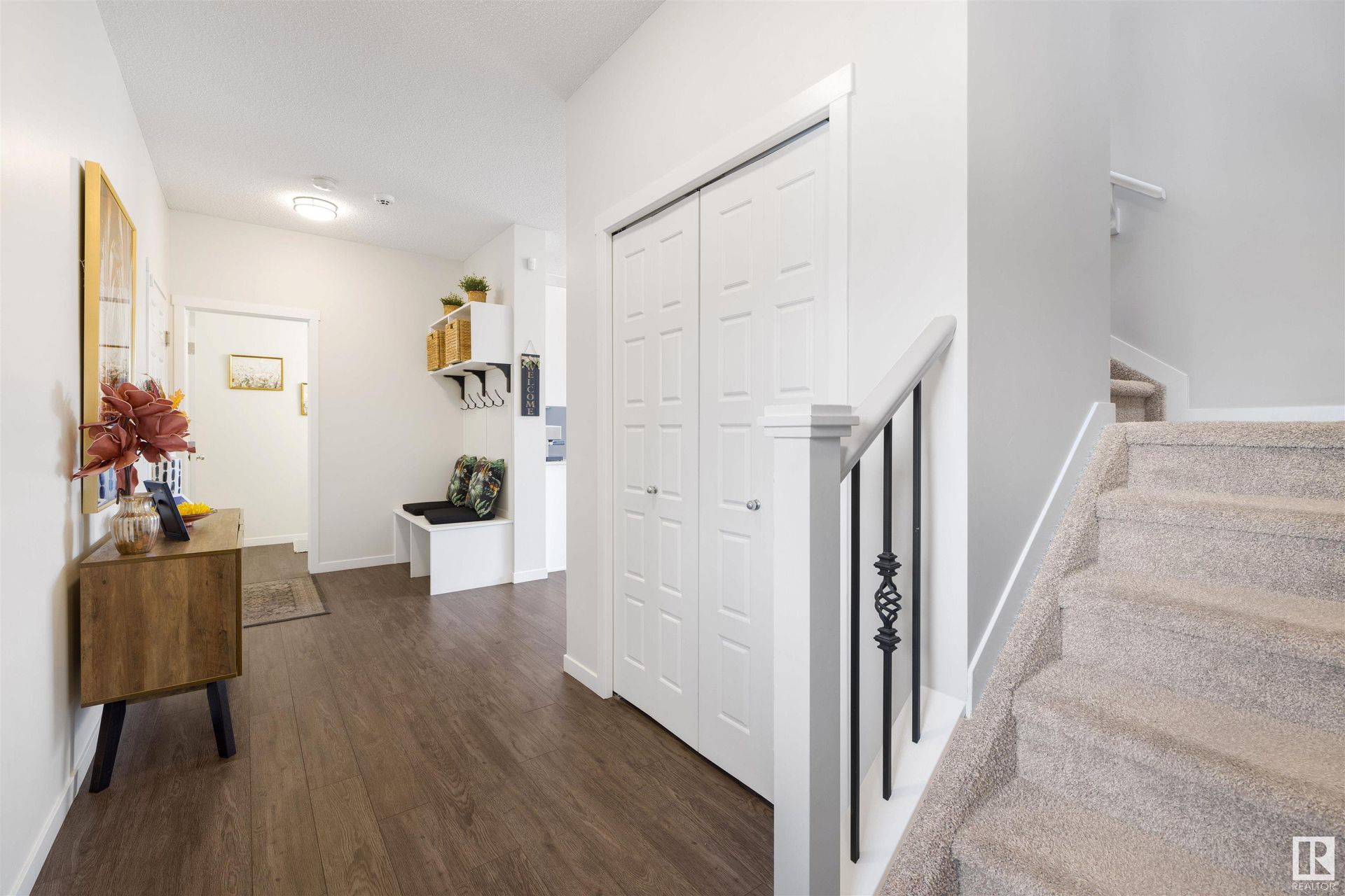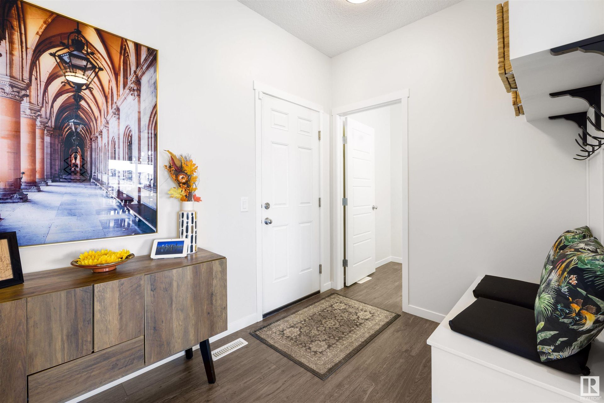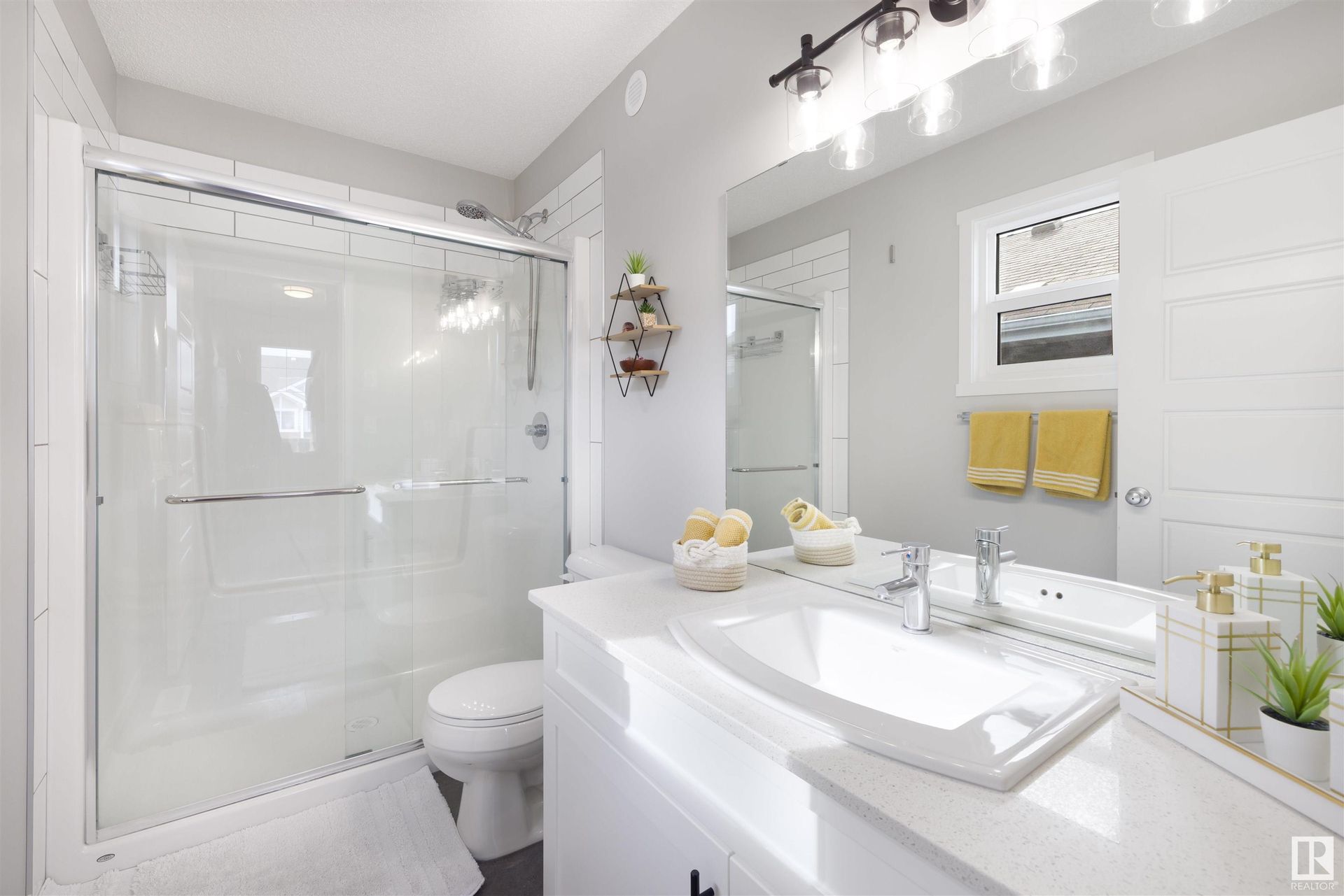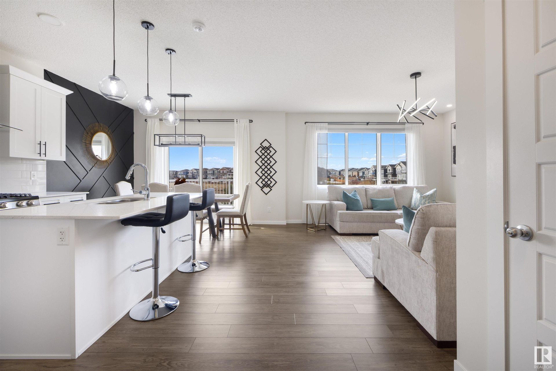 This modern home features 4 beds, 3.5 baths, and a walk-out basement backing onto a lake. The fully finished basement with separate entrance offers a 2nd kitchen, living room, 4-piece bath, and additional bedroom. The open concept kitchen is sure to impress with its quartz countertops, stainless steel appliances, corner pantry, and gas range. Beyond the dining area lies the patio doors to your rear deck with stunning views of the water. Relax in the living room next to the gas fireplace, or upstairs in your stylish bonus room. The primary suite with walk-in closet and ensuite, the laundry room, a 4-piece bath, and 2 additional bedrooms completes the upstairs. Once outside, venture down the concrete steps to the oversized patio and fully fenced yard. With 9' ceilings on the main floor and countless upgrades throughout, you will appreciate the attention to detail. Conveniently located close to walking trails, Clareview Rec Centre, the Anthony Henday, and the shops and restaurants of Manning Town Centre.
