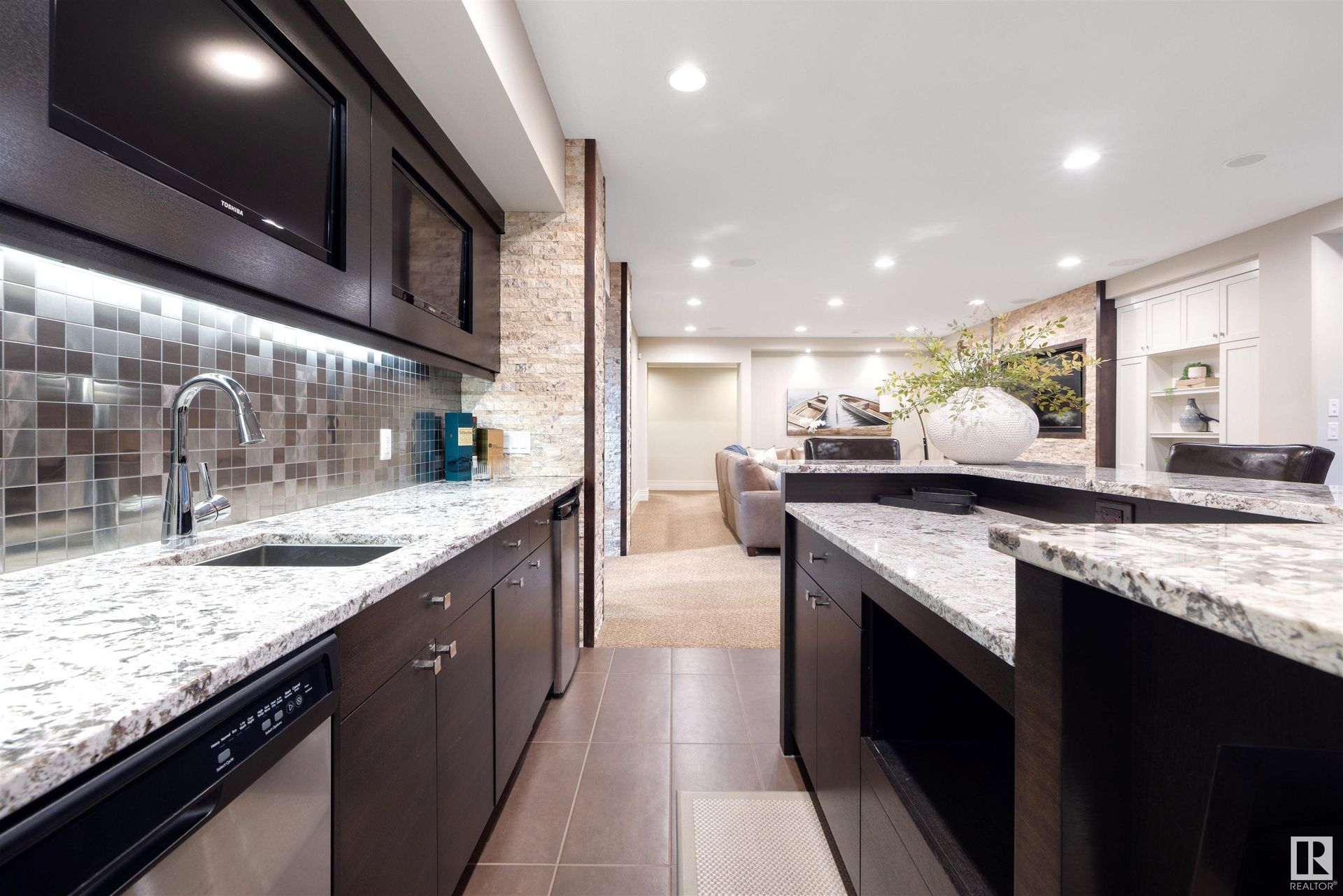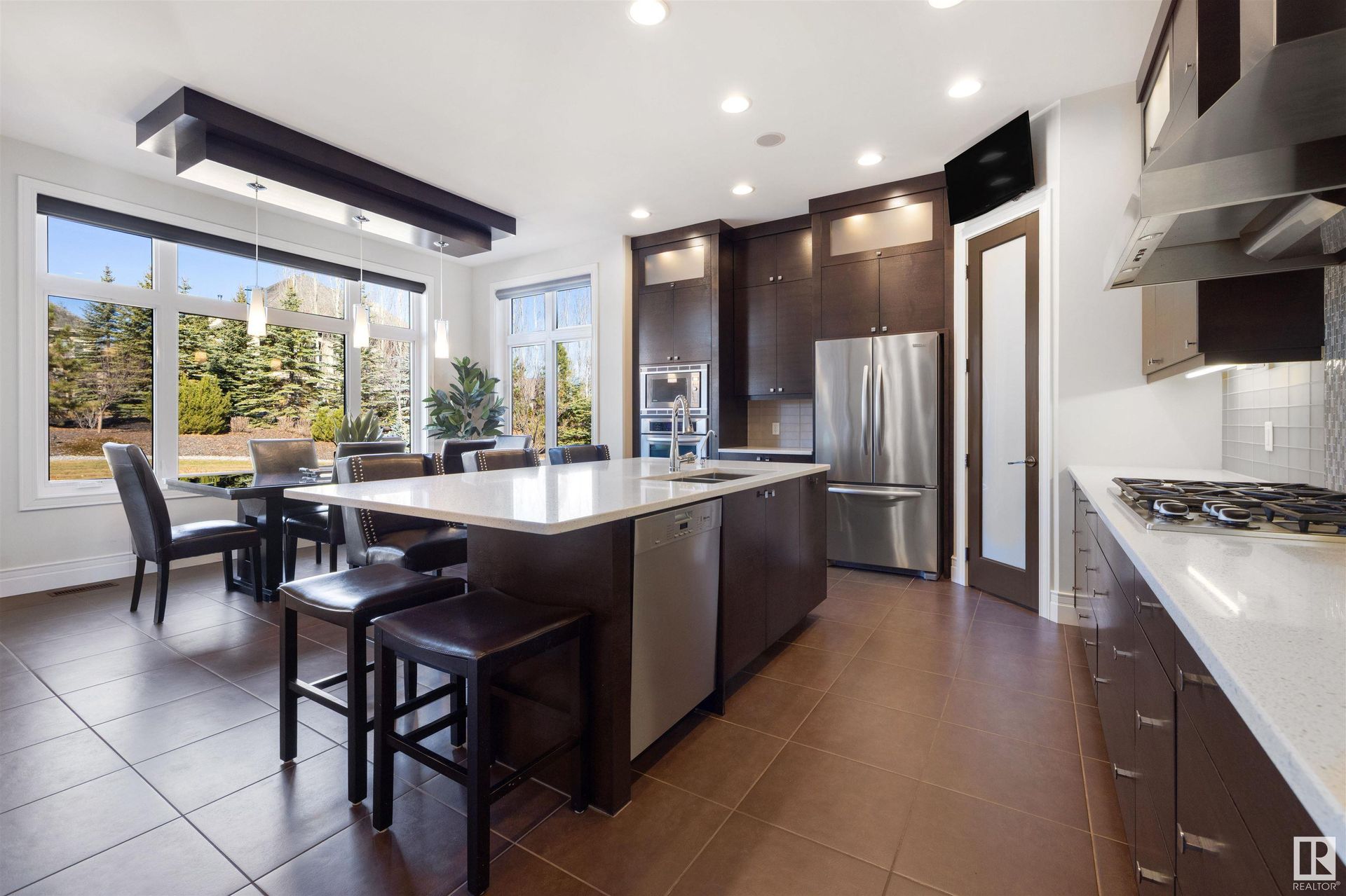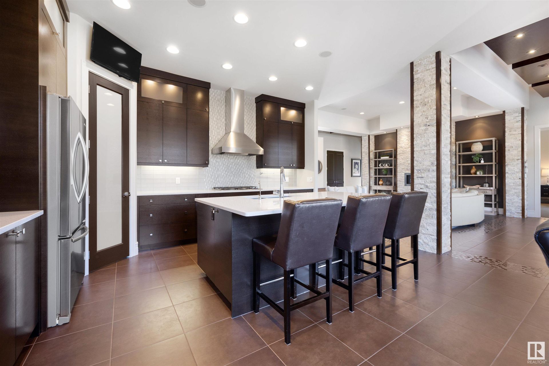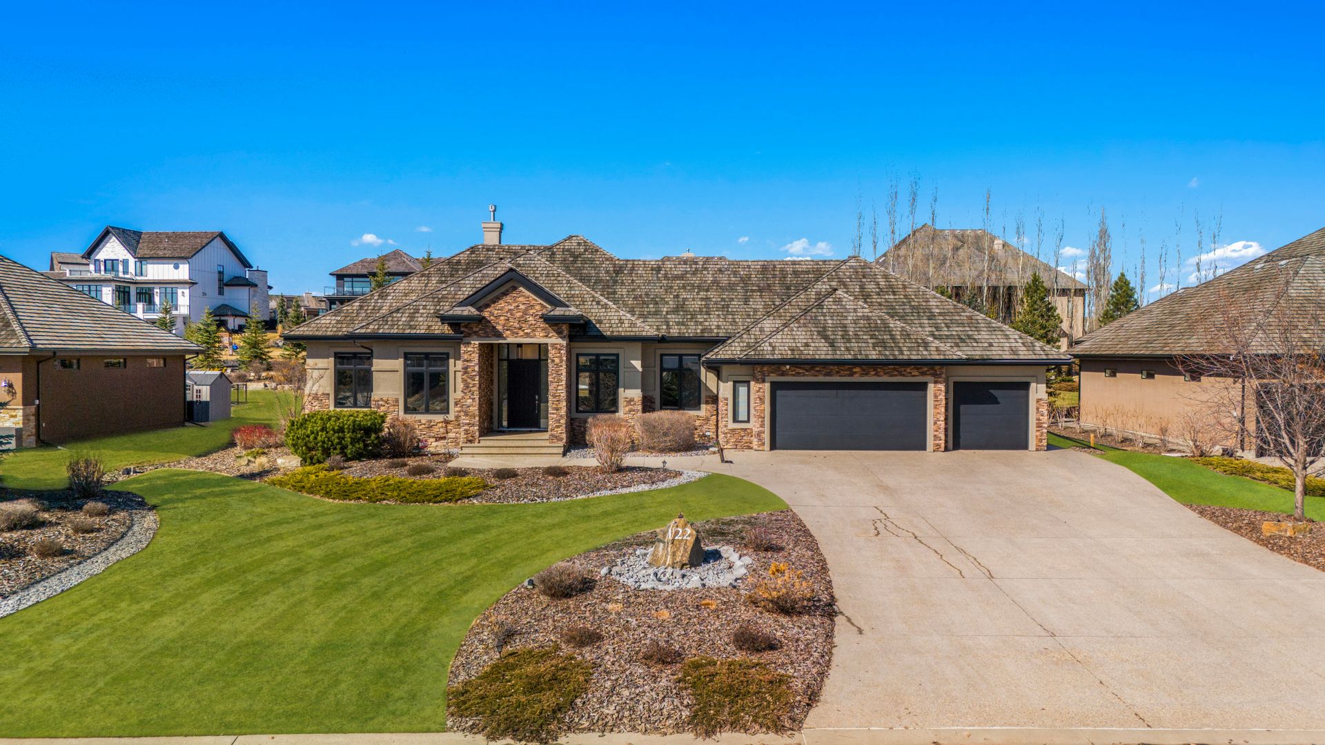Welcome to this Executive Bungalow with your Dream Six Car Garage on a beautiful 1/2 Acre West-Backing lot! Both floors are upgraded with In-Floor Heating - plus 10' ceilings, 8' doors, mosaic tile flooring, central A/C, gas fireplace with stone accents and massive windows with automatic blinds overlooking the gorgeous backyard. The beautiful kitchen and dining area include a Dacor Gas Cooktop, Full-Height Custom Cabinetry and Walk-Through Pantry that leads to your huge back entrance. Enjoy the convenience of main floor laundry and a great home office/bedroom! The large Master Suite has a luxury ensuite with glass shower, soaker tub and double vanities - plus a huge walk in closet with custom shelving. Downstairs, find a huge Bonus Room with Fireplace, Wet Bar + Speaker System, Home Gym, and 3rd+4th bedrooms with 5pc Ensuite. Enjoy summers in your professionally landscaped & sunny west-facing backyard! The rare massive 1200sqft heated Garage is nearly 37' deep & easily fits Six Cars. Welcome home!
