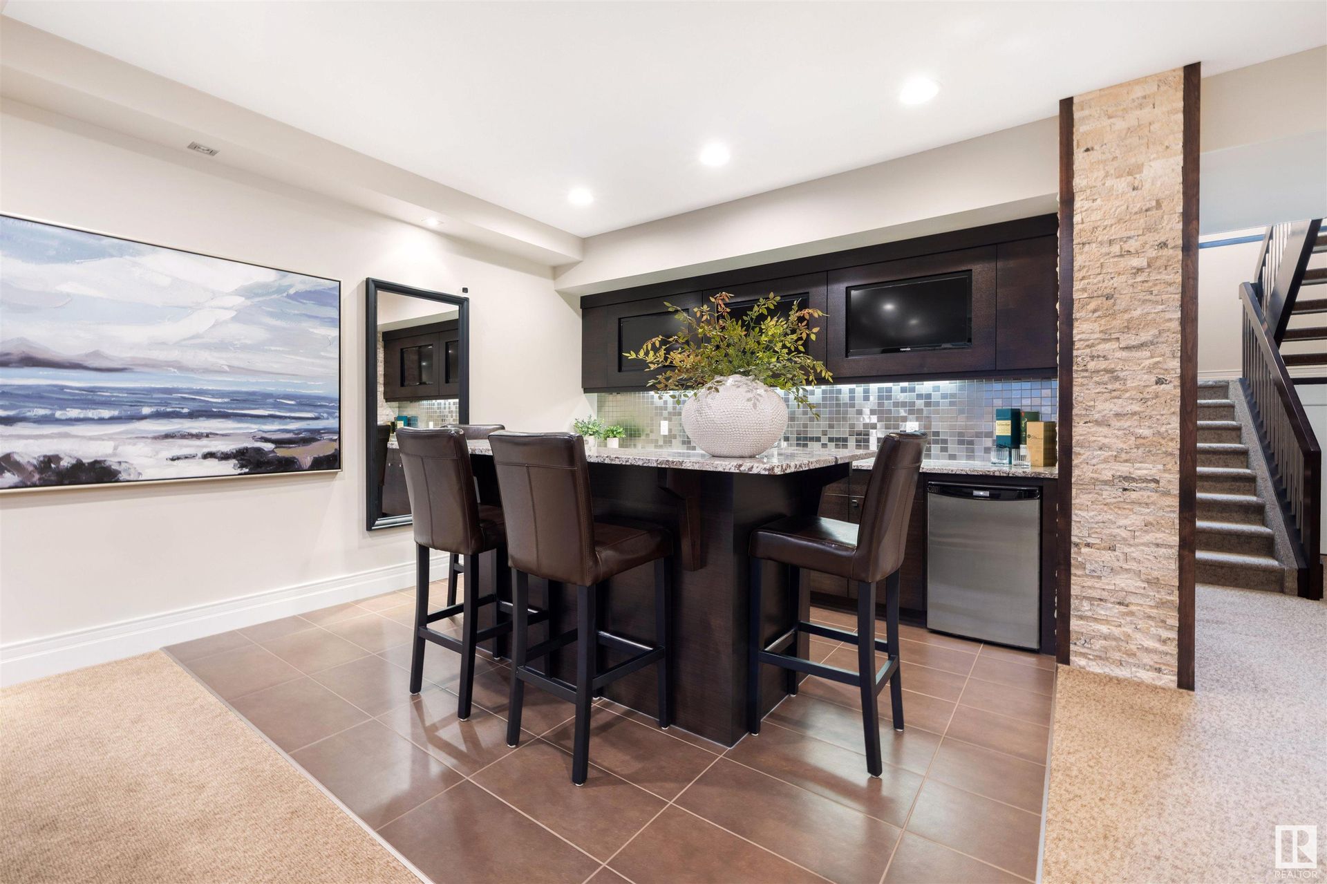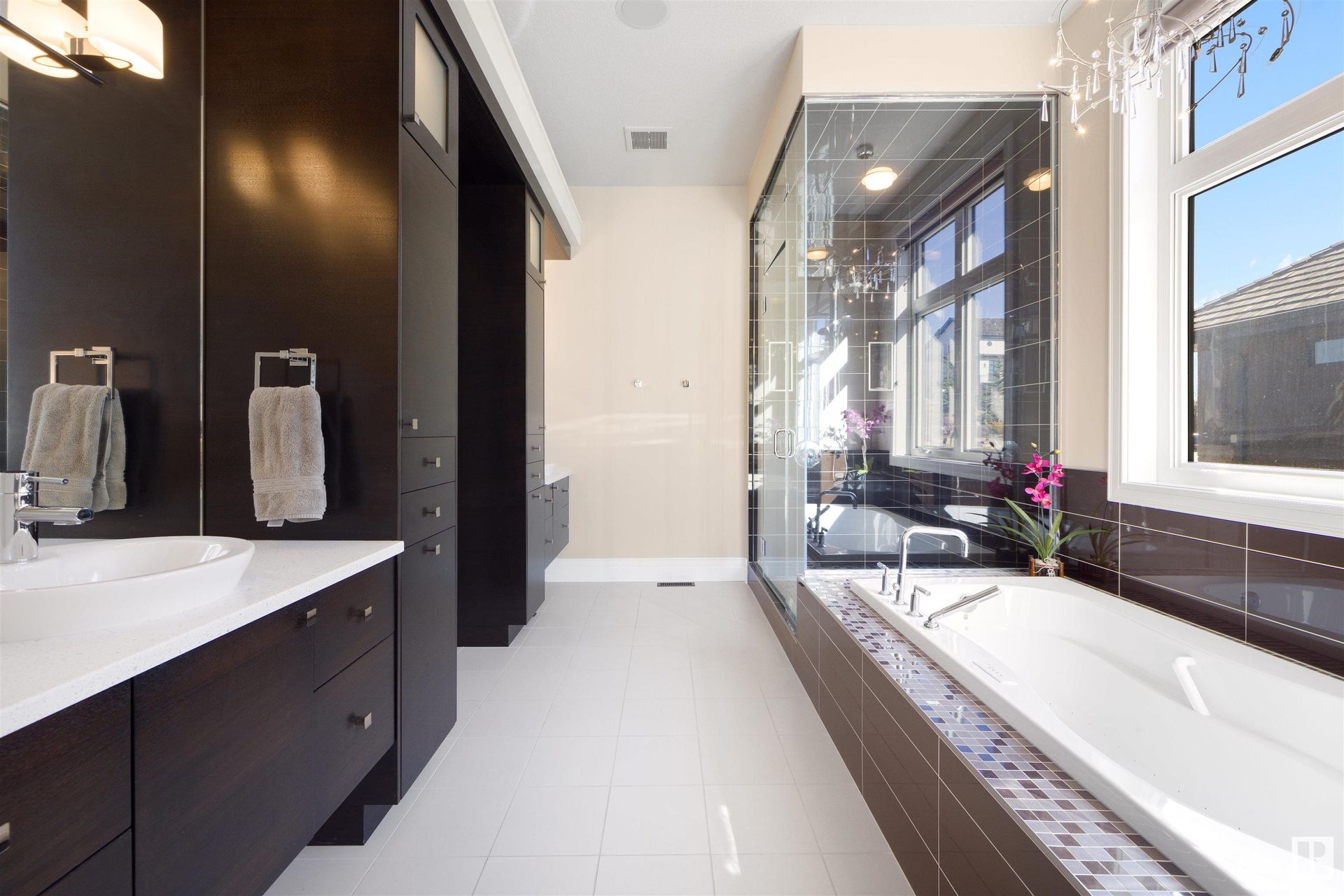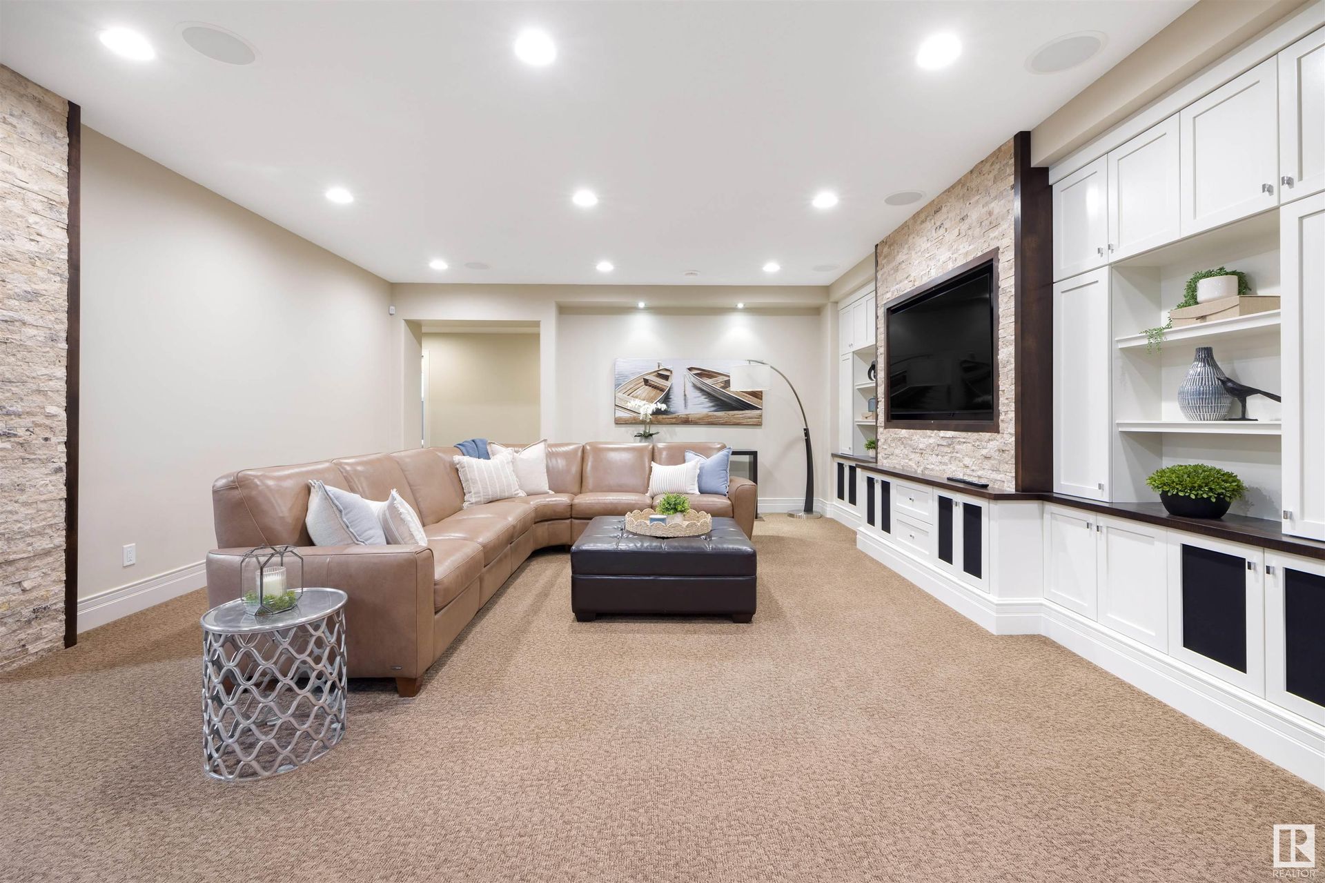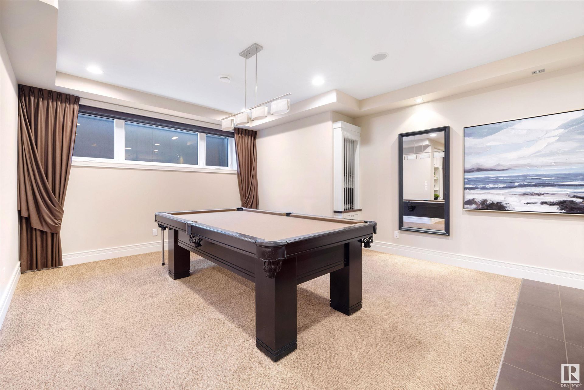 Welcome to this Executive Bungalow with your Dream Six Car Garage on a beautiful 1/2 Acre West-Backing lot! Both floors are upgraded with In-Floor Heating - plus 10' ceilings, 8' doors, mosaic tile flooring, central A/C, gas fireplace with stone accents and massive windows with automatic blinds overlooking the gorgeous backyard. The beautiful kitchen and dining area include a Dacor Gas Cooktop, Full-Height Custom Cabinetry and Walk-Through Pantry that leads to your huge back entrance. Enjoy the convenience of main floor laundry and a great home office/bedroom! The large Master Suite has a luxury ensuite with glass shower, soaker tub and double vanities - plus a huge walk in closet with custom shelving. Downstairs, find a huge Bonus Room with Fireplace, Wet Bar + Speaker System, Home Gym, and 3rd+4th bedrooms with 5pc Ensuite. Enjoy summers in your professionally landscaped & sunny west-facing backyard! The rare massive 1200sqft heated Garage is nearly 37' deep & easily fits Six Cars. Welcome home!