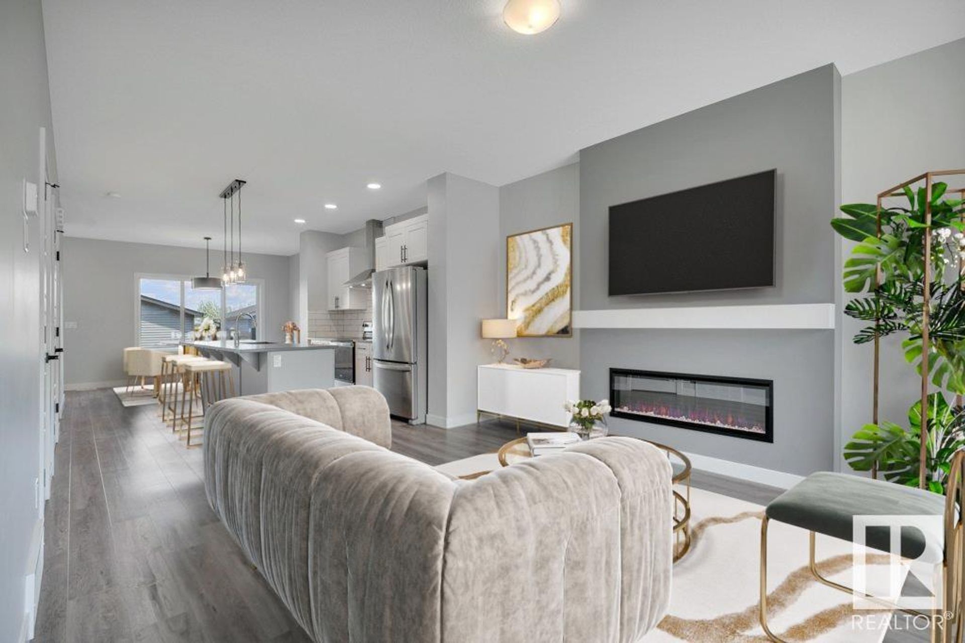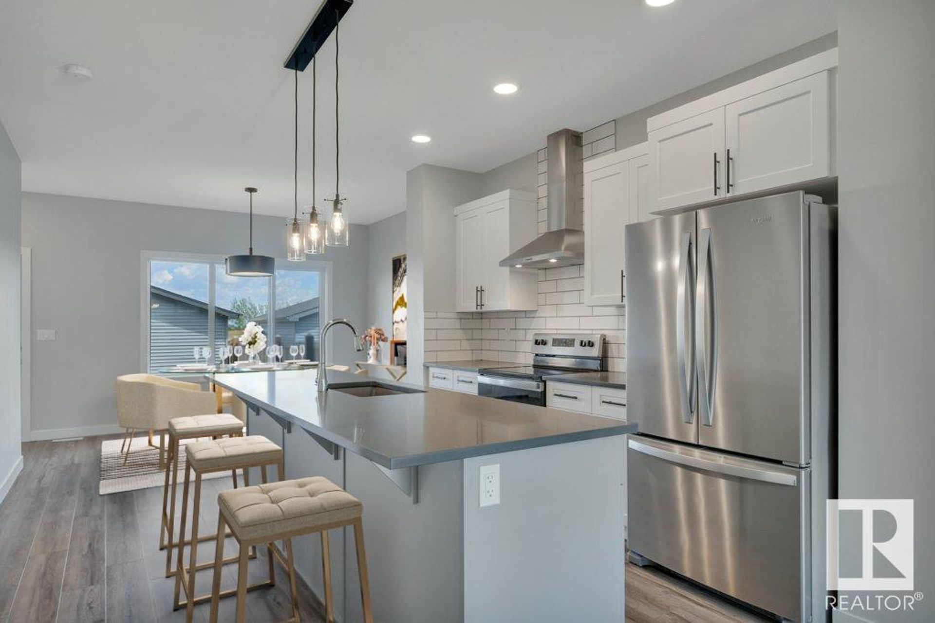 Better than NEW! Move right into this IMMACULATE, FULLY FENCED and LANDSCAPED home. Come feel the zen in this well appointed open concept gem. You will appreciate the bright Chef's kitchen with ample storage, quartz counters, stainless steel appliances, pantry and large Island with pendant lighting. Entertaining is made easy in your lovely Living Rm with linear fireplace and generous Dinette area that easily accommodates a larger table and buffet/hutch or desk area. The fully fenced yard with complete deck is perfect for your little ones, pets, and those Summer BBQ's with Family and Friends. Your Master Bedroom accommodates larger furniture, incudes a walk in closet and private ensuite w/ His/Hers sinks. In addition there are 2 more Bedrooms, a full Bathroom and a Laundry Rm upstairs for your convenience. You will appreciate the Double Garage, Vinyl Plank floors, and Quartz Counters throughout the home. Location is excellent and offers easy access to Walking Trails, Pond, Playgrounds , Schools and more.