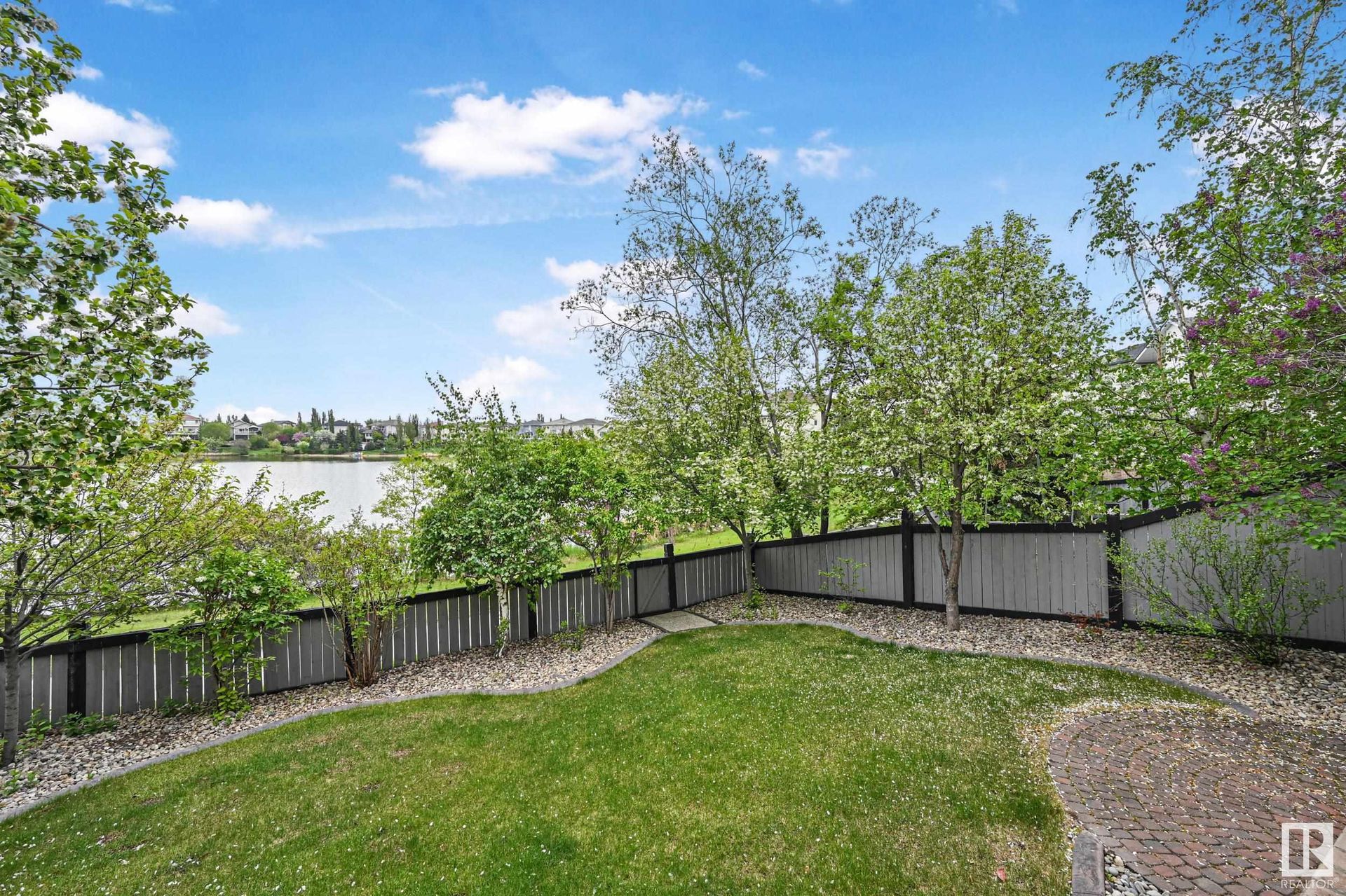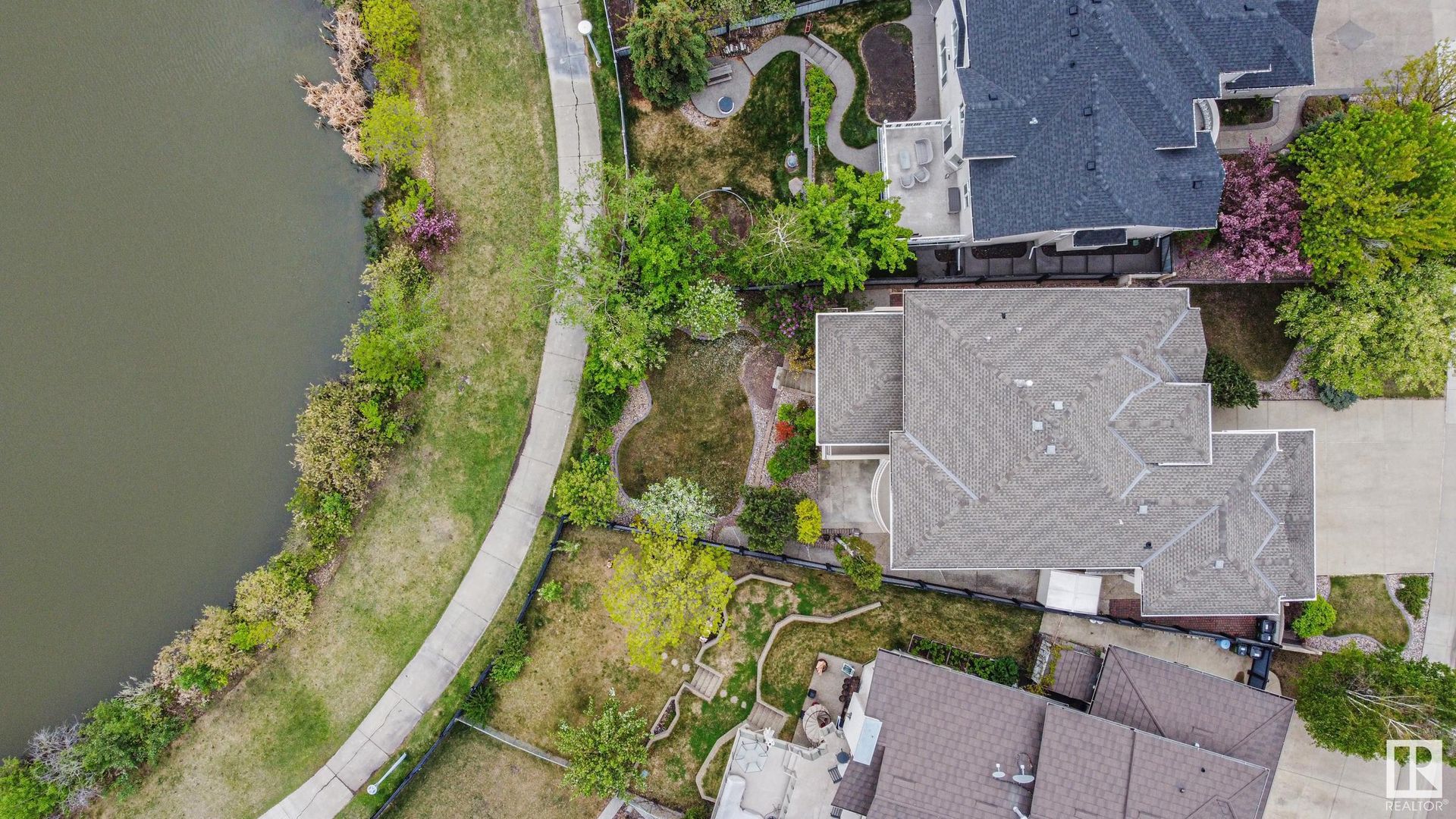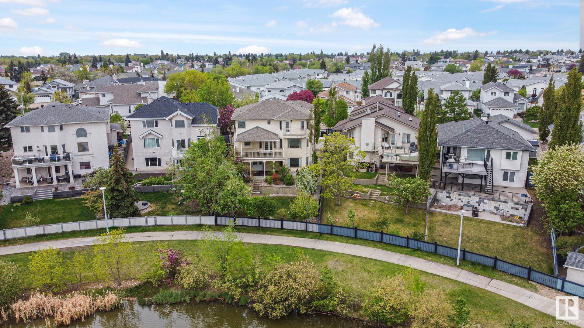 Stunning 2-story, 5bdrms, 4 Full bath Hollick Kenyon home backing onto the lake! Over 2800 sq ft on the upper levels, plus a fully developed walkout basement with 9-ft ceilings, 2 potential additional bedrooms, full bath, a rec area with a wet bar, & a covered patio. The main floor boasts formal living & dining rooms, family room with gas fireplace, & an office/bedroom with an adjacent full bath—ideal for multi-generational living. The kitchen features raised-panel wood cabinets, granite counters, & stainless steel appliances, including a gas stove. Upstairs, find 4 bdrms, including a massive primary suite with a Romeo & Juliet balcony, a large walk-in closet, & a quartz-countered ensuite. Enjoy the flex space/bonus area & another 4-piece bath on the upper level. The oversized, heated garage has a floor drain, man door to back, cabinets & sink. Features include dual furnaces, A/C, permanent Christmas lights, prof landscaping with irrigation & central vacuum. Close to schools, shopping, & lake trails.