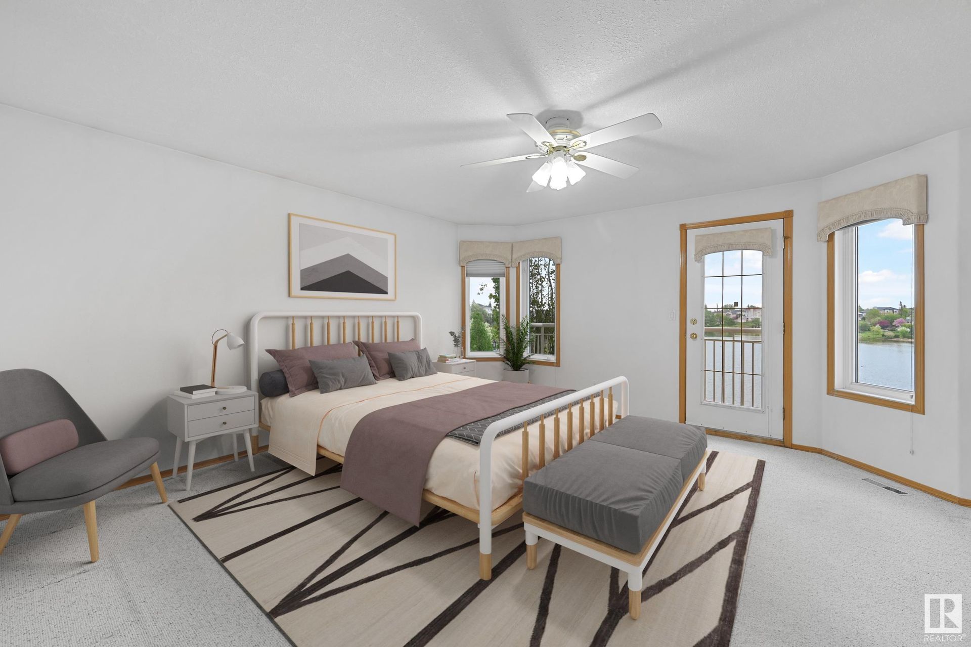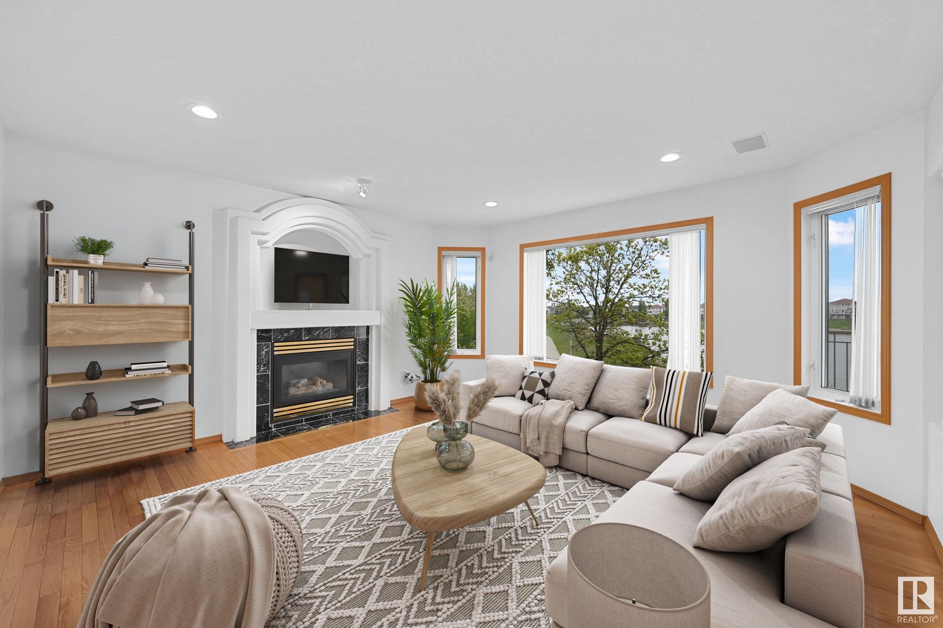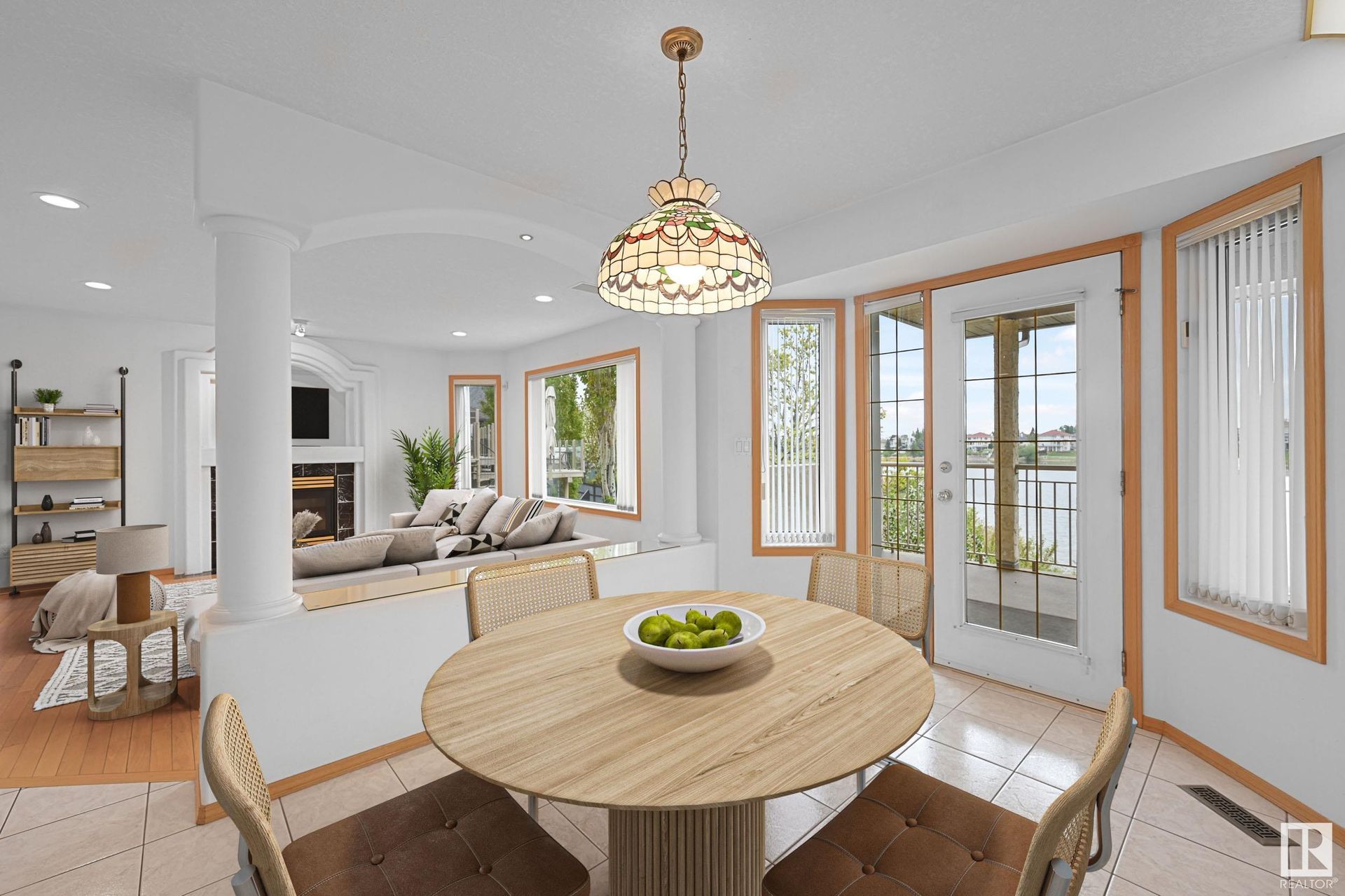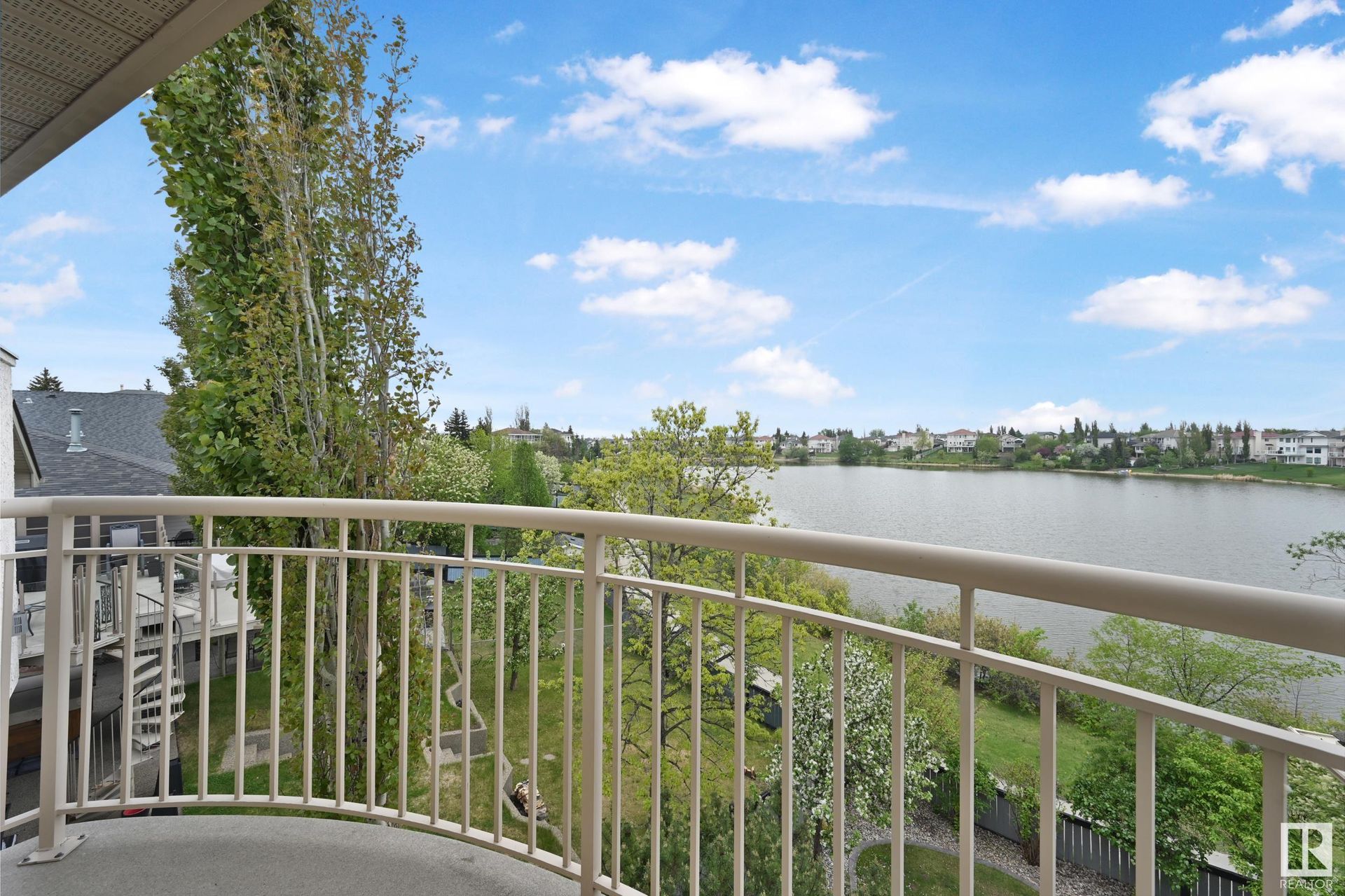 Stunning 2-story, 5bdrms, 4 Full bath Hollick Kenyon home backing onto the lake! Over 2800 sq ft on the upper levels, plus a fully developed walkout basement with 9-ft ceilings, 2 potential additional bedrooms, full bath, a rec area with a wet bar, & a covered patio. The main floor boasts formal living & dining rooms, family room with gas fireplace, & an office/bedroom with an adjacent full bath—ideal for multi-generational living. The kitchen features raised-panel wood cabinets, granite counters, & stainless steel appliances, including a gas stove. Upstairs, find 4 bdrms, including a massive primary suite with a Romeo & Juliet balcony, a large walk-in closet, & a quartz-countered ensuite. Enjoy the flex space/bonus area & another 4-piece bath on the upper level. The oversized, heated garage has a floor drain, man door to back, cabinets & sink. Features include dual furnaces, A/C, permanent Christmas lights, prof landscaping with irrigation & central vacuum. Close to schools, shopping, & lake trails.