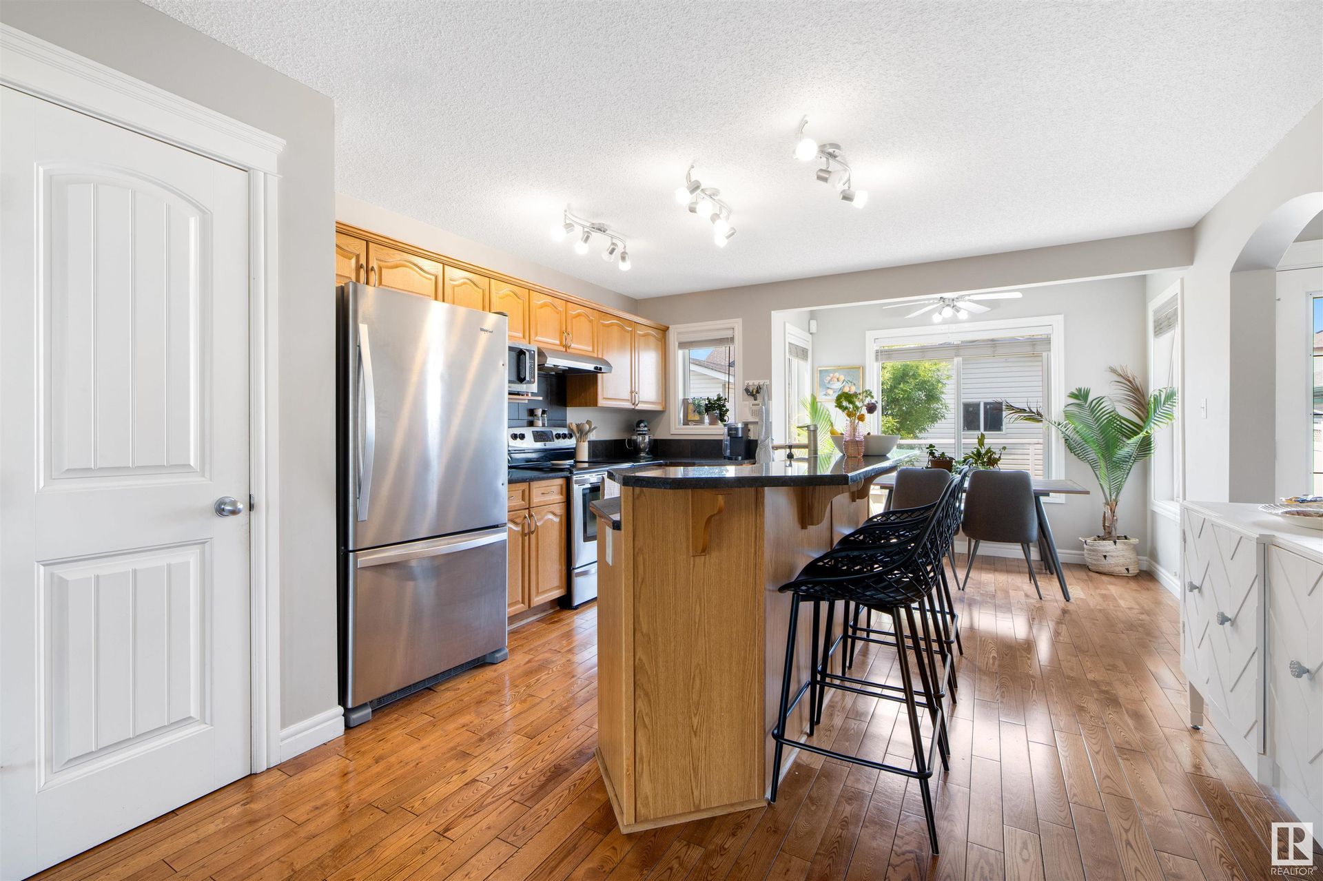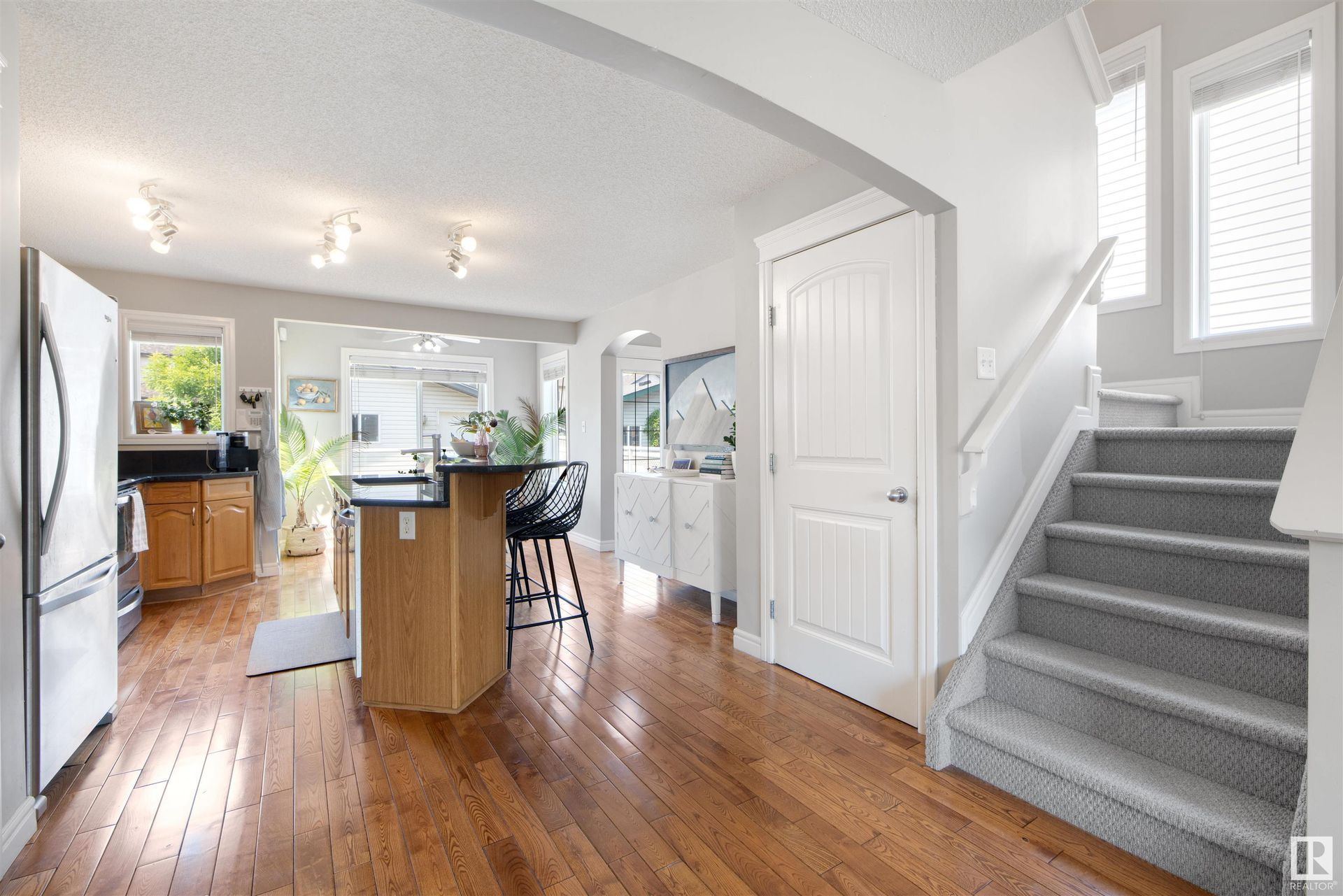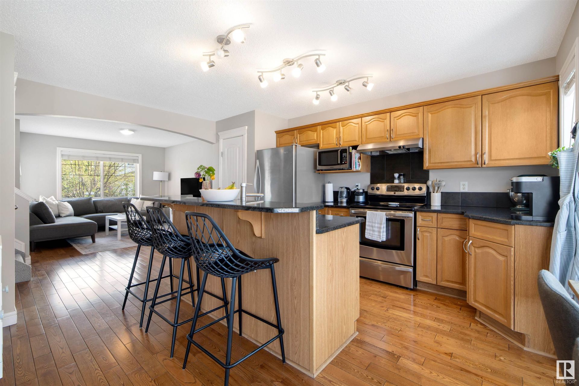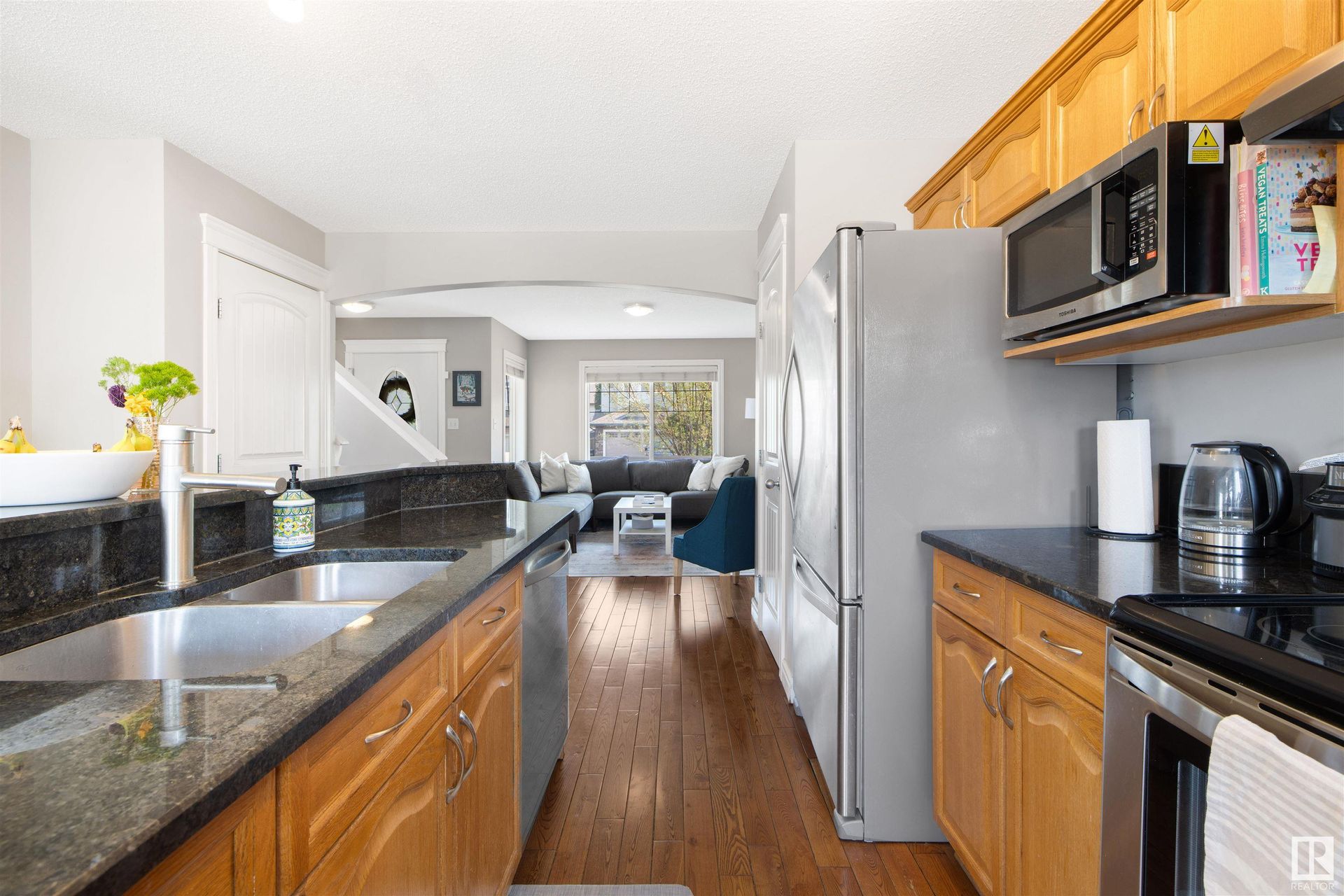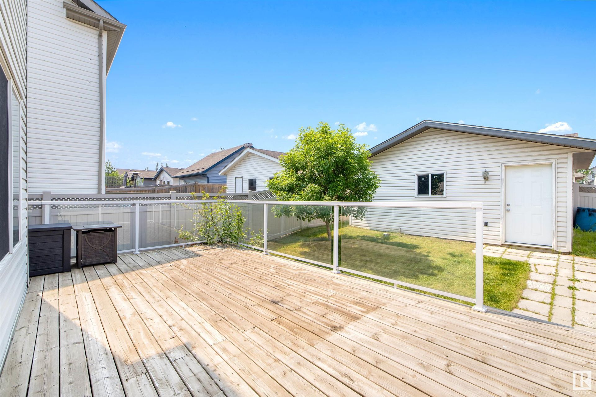 Welcome to Summerwood! This air-conditioned 3-bedroom home with a finished basement and double detached garage is a must-see. The front living room welcomes you with hardwood floors and an abundance of natural light. The open-concept main floor is ideal for entertaining, featuring a stylish kitchen with granite countertops, stainless steel appliances, a spacious pantry, and a bright dining nook surrounded by windows. Upstairs, the primary suite includes a walk-in closet and 4-piece ensuite, plus 2 additional bedrooms and the 4-piece main bath. The finished basement adds a 4th bedroom, rec area, laundry room, and 3-piece bath—perfect for guests or growing families. Enjoy long summer evenings on the oversized rear deck overlooking the private backyard. Practical upgrades include a built-in vacuum system and a newer no-maintenance vinyl fence. Located the shops of Emerald Hills, Summerton Spray Deck & Playground, schools, trails, and transit, this home offers comfort and convenience in a vibrant community.