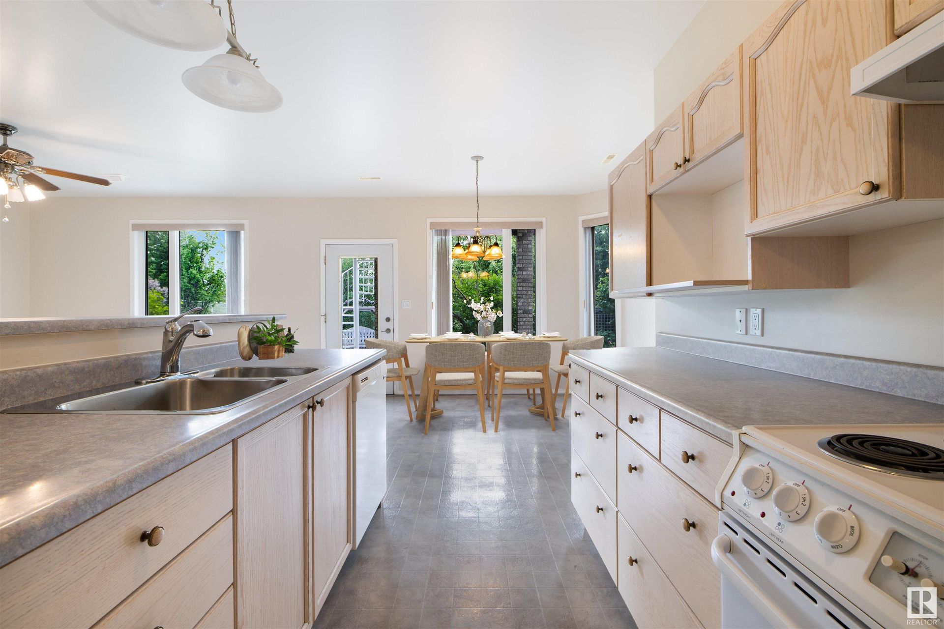 Welcome to this rare 6 bedroom home backing Kennedale Ravine, providing over 4,000 sq ft of living space! With potential for 8 bedrooms, this perfect multi-generational home has a separate entrance, walkout basement, and 2nd kitchen - ideal for your large family! Upgrades include solar panels, newer shingles, central AC, and gorgeous brick masonry throughout. The front living room with a cozy brick fireplace and formal dining room are ideal for time with the family. The expansive bonus room (over 425 sq ft) provides an amazing space for entertaining and has potential to be transformed into a 7th & 8th bedroom. The fully finished walk-out basement is a standout feature, with 9' ceilings, a 2nd kitchen, family room, 3 bedrooms, and a full bath with soaker tub. Outside, enjoy your sunny south-facing rear deck with gas BBQ line and spiral staircase. Overlooking the ravine, the private and landscaped backyard includes a fire pit and direct access to walking trails. This is a true retreat and must see!