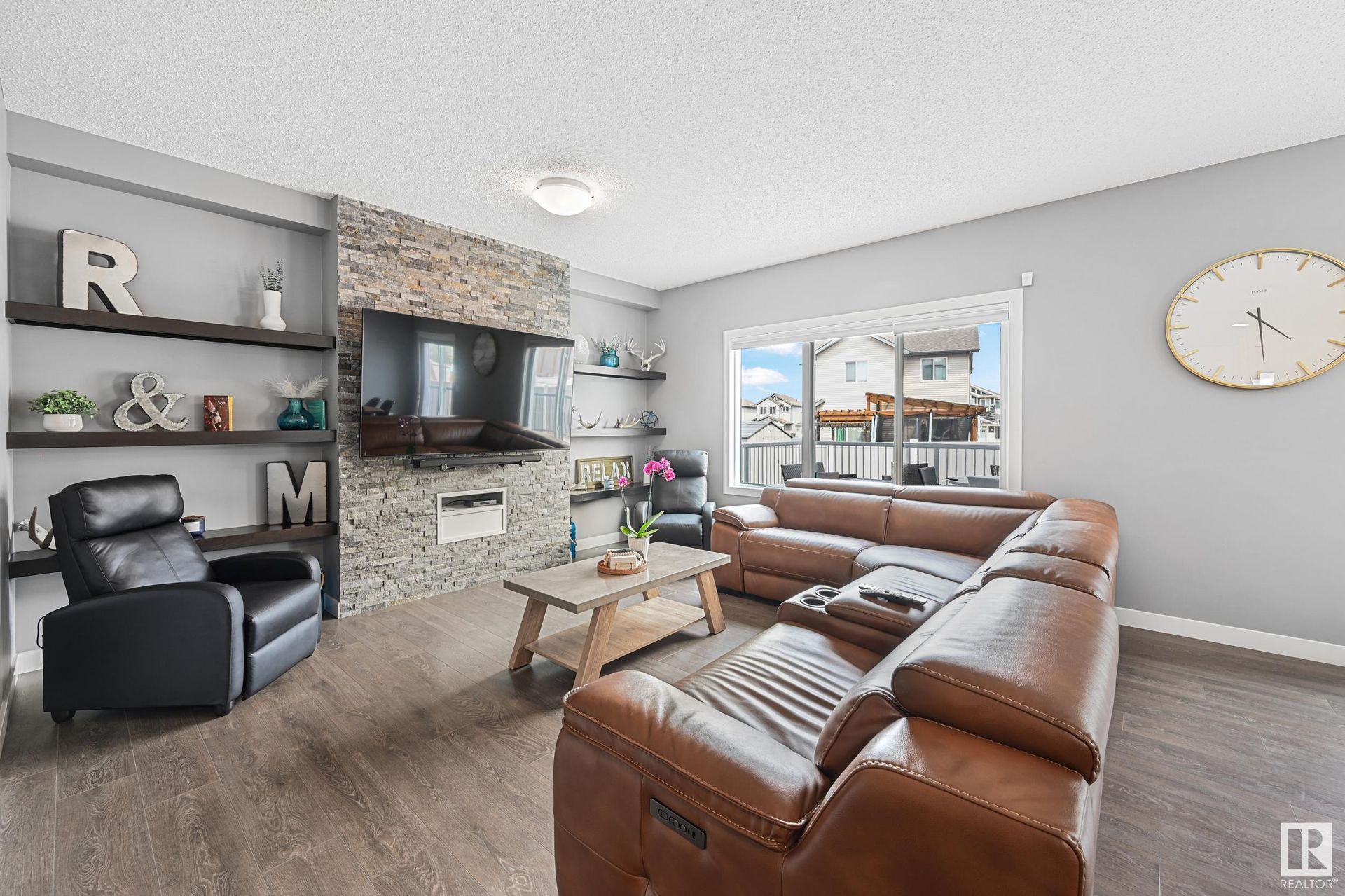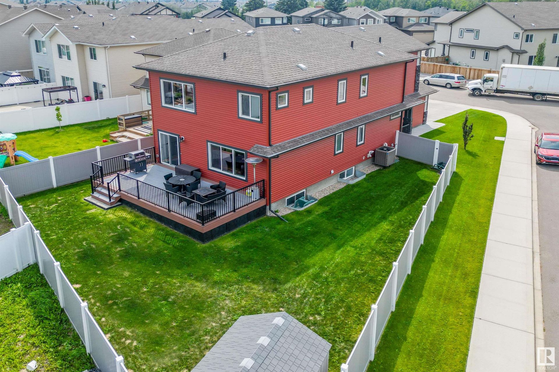 This 2500 sqft family home in truly has it all: 4 Bedrooms Upstairs + Bonus Room, a 25’ Deep Garage and a Corner Pie Lot! Take advantage of your rare 25’ deep garage with 9’ door and floor drain, plus your Large Corner Pie Lot that’s nearly 50% larger than normal! Your bright open-concept living space welcomes you with Central Air Conditioning, Gas Fireplace, tall 9' Ceilings, Home Office, Stone Countertops, Walk Through Pantry, Stainless Steel Appliances and a huge Back Entrance. The 2nd floor has a rare 4 bedroom + Bonus Room layout incl a Master Bedroom with Two giant walk-in closets and fantastic ensuite - all of this plus three more bedrooms, another full bathroom, bonus room and convenient Upstairs Laundry. Downstairs, your basement with 9’ ceilings is partly finished with a full bathroom, and room for future 5th and 6th bedrooms and Rec Room. The fully fenced Backyard is perfect for kids and pets - with maintenance free fencing, a maintenance free deck, and rare corner access for future RV Parking!