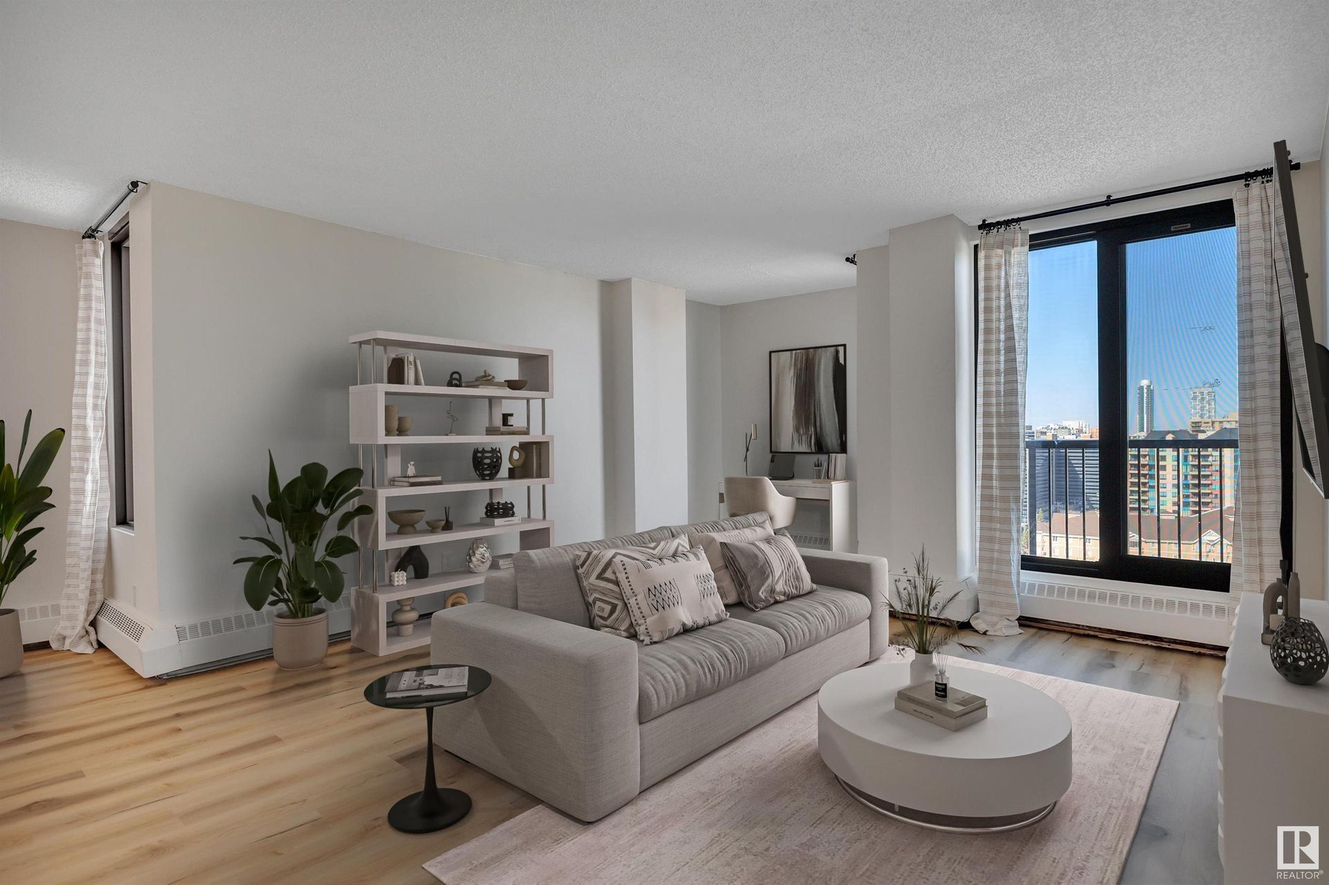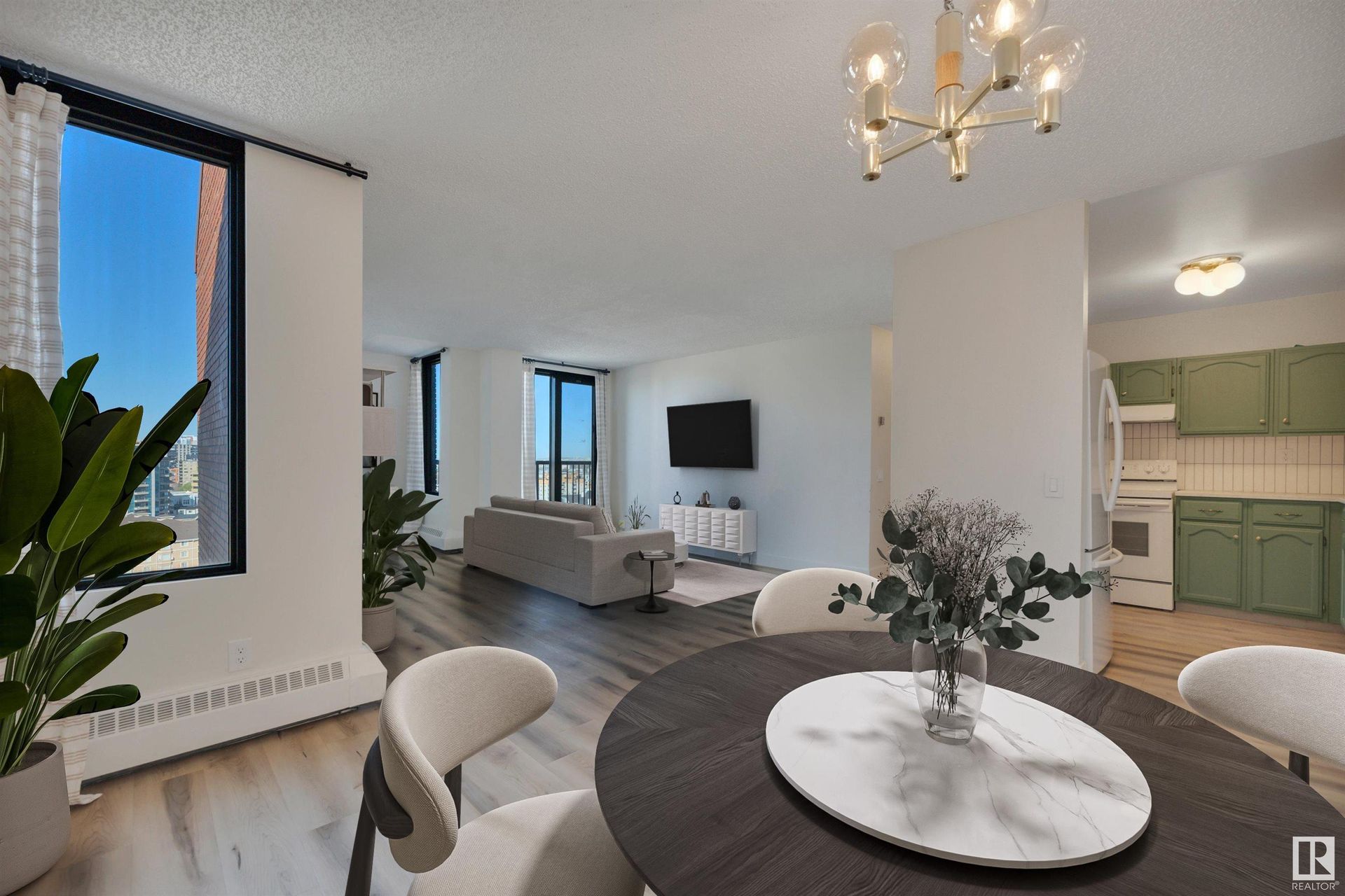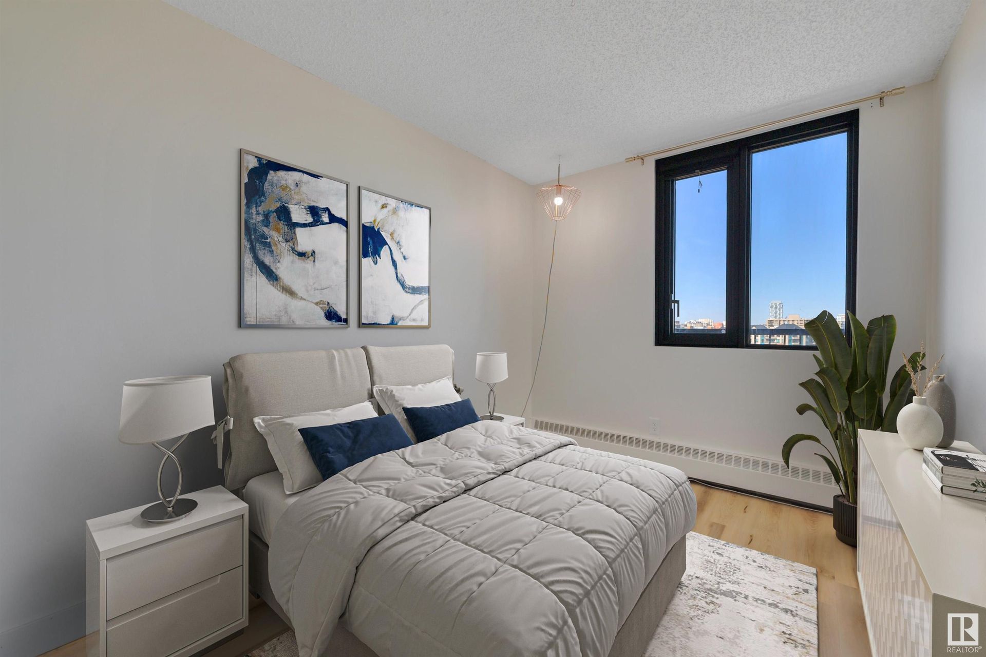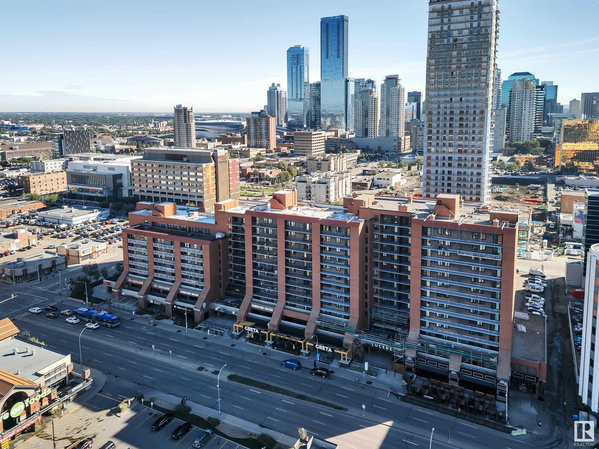 This TOP FLOOR 3 bed / 2 bath condo is ideally located just steps from the Ice District, MacEwan University, the LRT, and all the dining, shopping, and entertainment Downtown has to offer. The spacious entryway welcomes you into the updated condo, with stylish bathrooms, ample storage, and newer appliances, windows & doors, and vinyl flooring throughout. Beyond the kitchen, dining area, and open living room lies your extended balcony with storage room and unbeatable west-facing city views. The space is completed with 2 additional bedrooms and large storage room. Convenience is key with in-suite laundry, 2 titled underground parking stalls, and on-site fitness centre, security, and daycare. A must see!