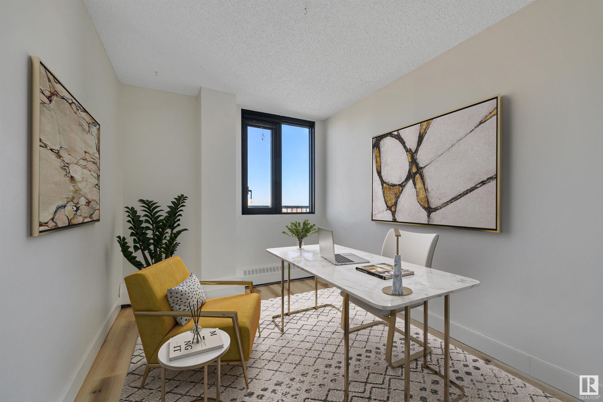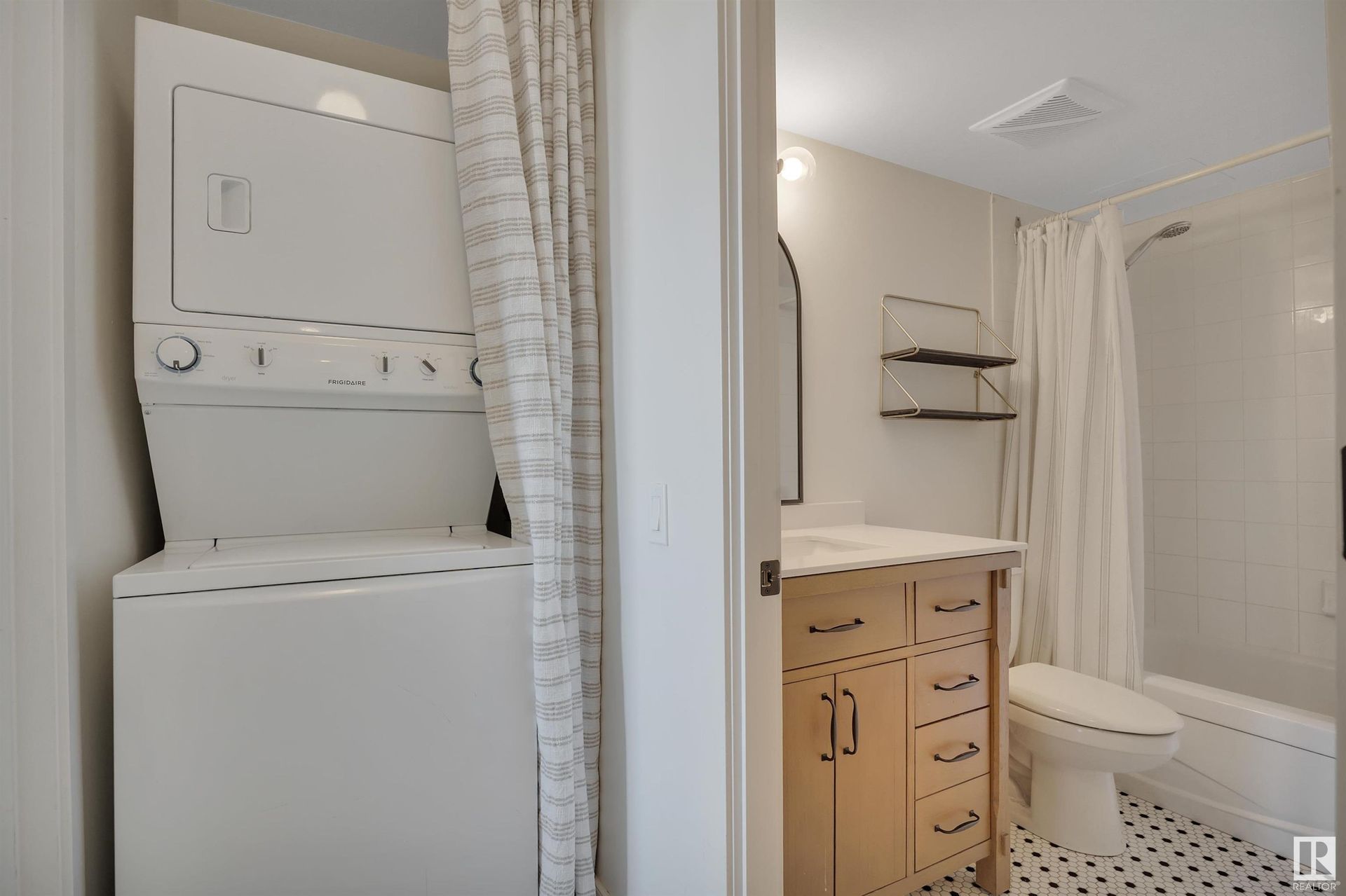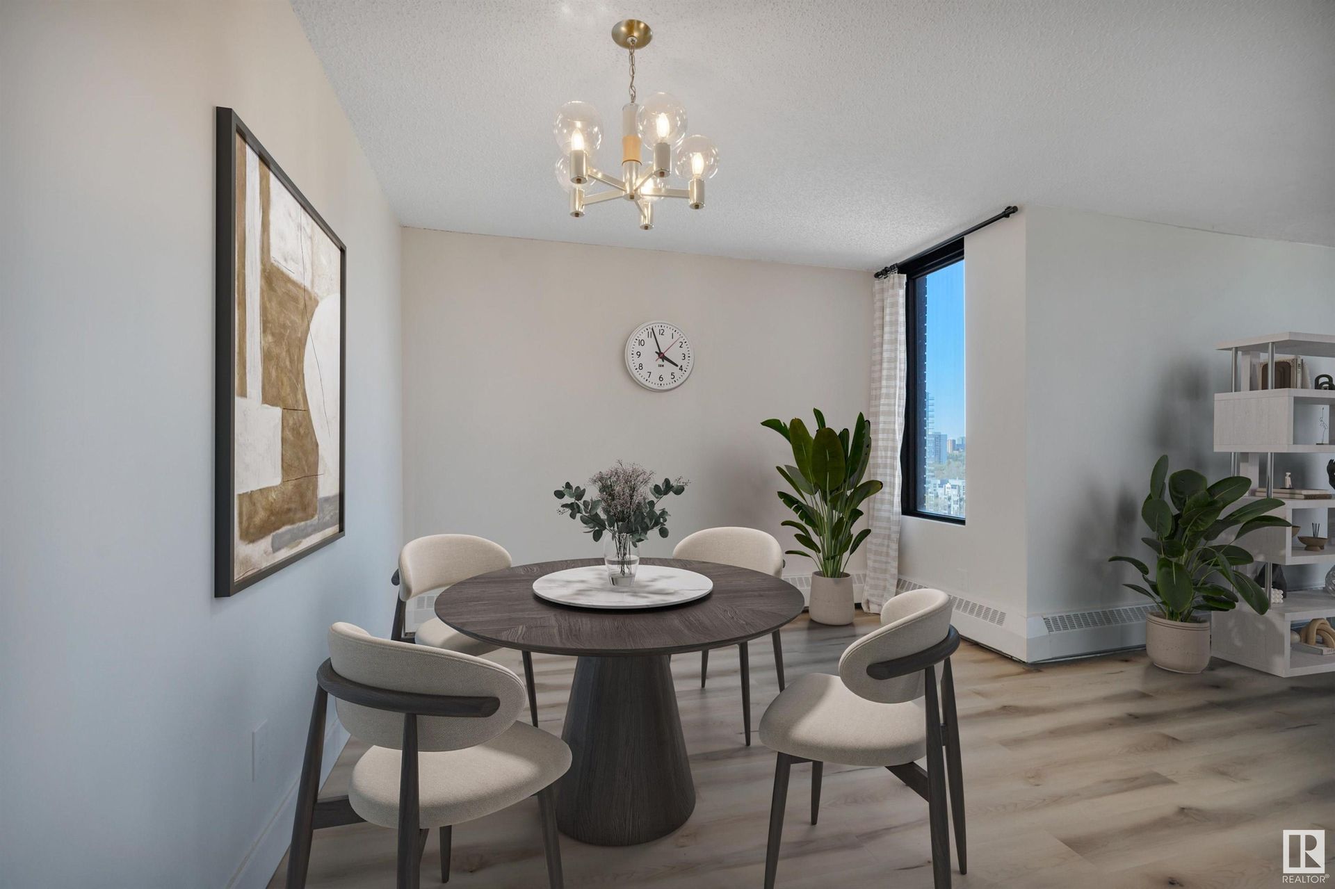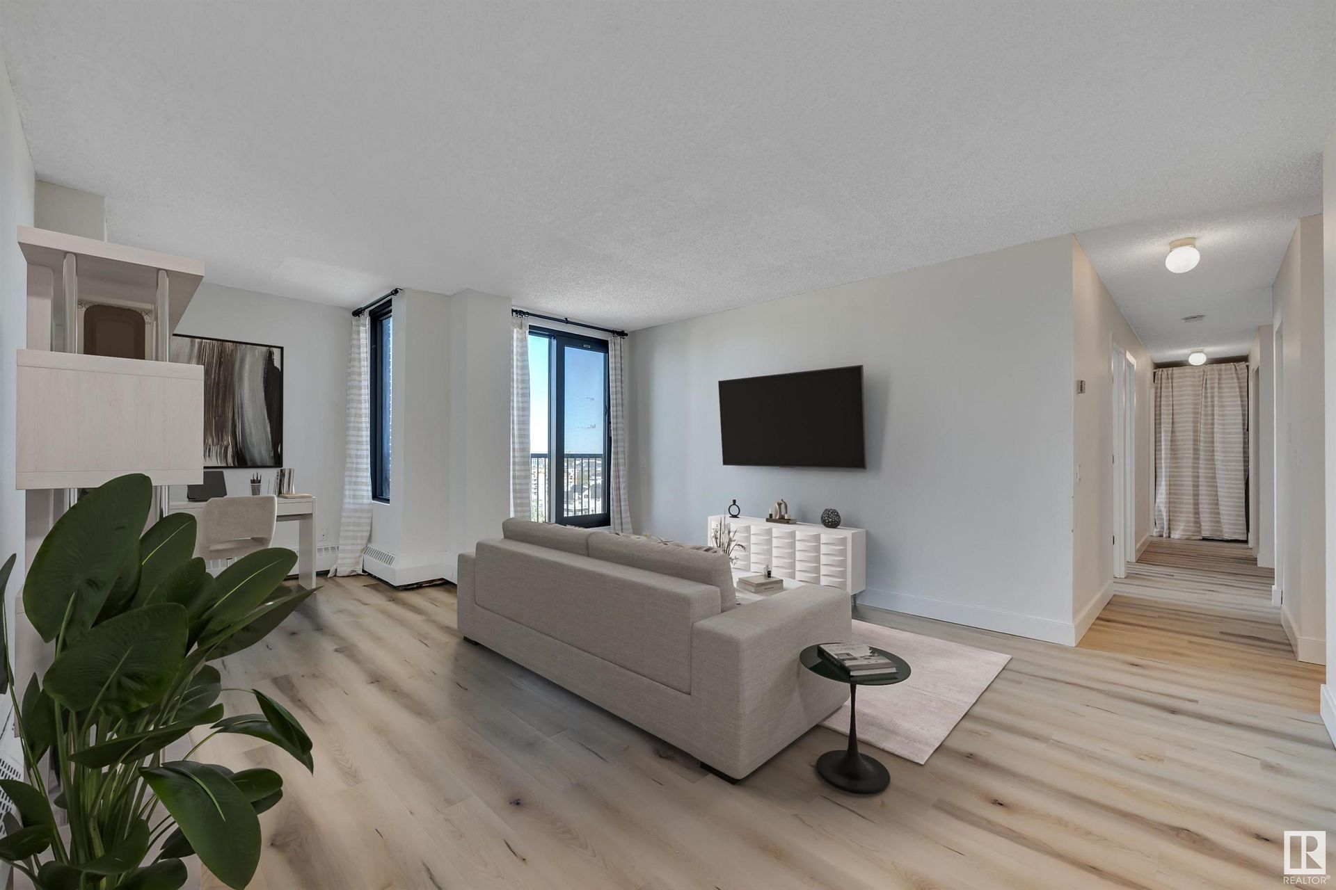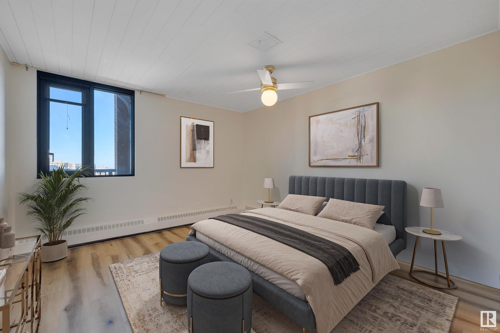 This TOP FLOOR 3 bed / 2 bath condo is ideally located just steps from the Ice District, MacEwan University, the LRT, and all the dining, shopping, and entertainment Downtown has to offer. The spacious entryway welcomes you into the updated condo, with stylish bathrooms, ample storage, and newer appliances, windows & doors, and vinyl flooring throughout. Beyond the kitchen, dining area, and open living room lies your extended balcony with storage room and unbeatable west-facing city views. The space is completed with 2 additional bedrooms and large storage room. Convenience is key with in-suite laundry, 2 titled underground parking stalls, and on-site fitness centre, security, and daycare. A must see!