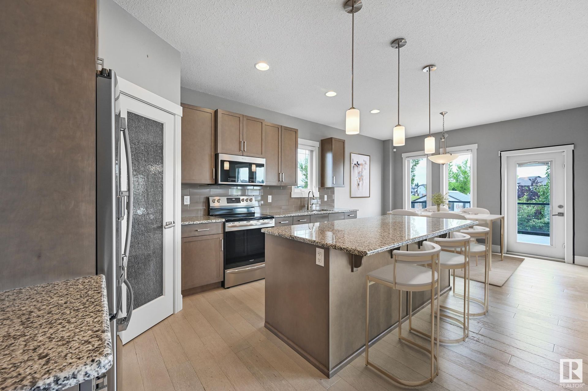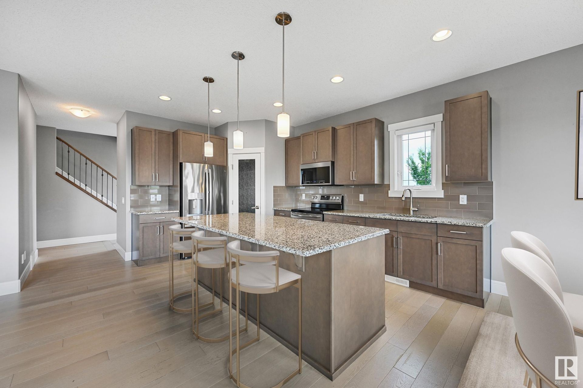 Life on The Lake! Welcome to this rare opportunity to live on Newcastle Lake in beautiful Rapperswill. With over 3000 sqft of finished living space, this move-in-ready family home truly has it all with 4 bedrooms, bonus room, two living rooms, home office and an XL 23' Garage! Your open concept main floor has upgrades like Central Air Conditioning, Large Windows with Lake Views, granite countertops, newly updated stainless steel appliances, gorgeous wide plank hardwood, gas fireplace and more. Upstairs, find a huge bonus room with vaulted ceilings, a master bedroom with amazing lake views, and two other kids bedrooms - perfect for your growing family. Downstairs, you'll find the 4th bedroom, full living room with fireplace, full bathroom, and home office space. The fully fenced backyard has a perfect deck and concrete patio with a gate to the lake. Welcome to one of North Edmonton's Top Communities - seconds to Shopping, Transit, The Henday, Playground and Multiple Lakes! Immediate possession available!