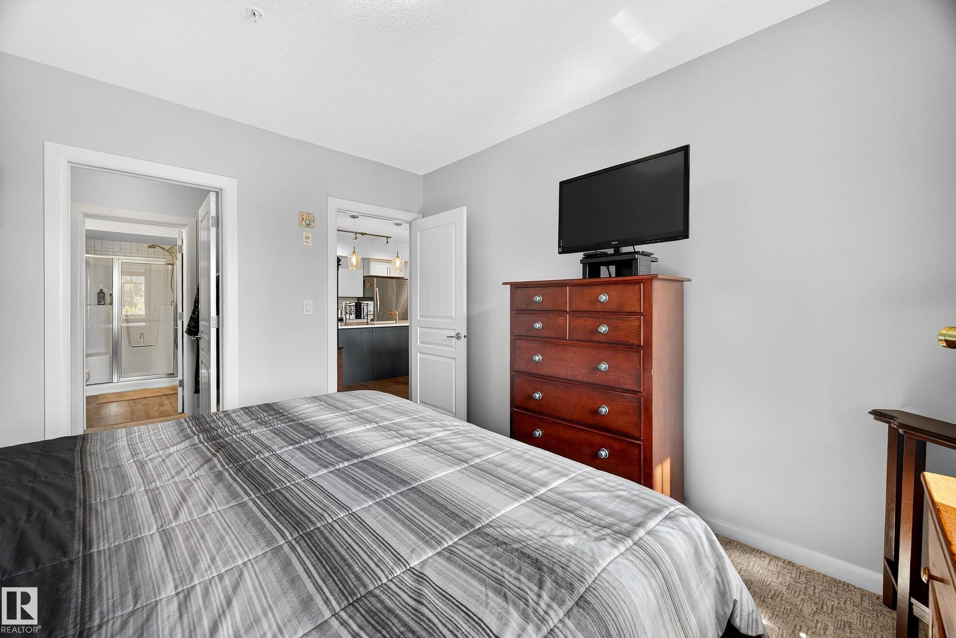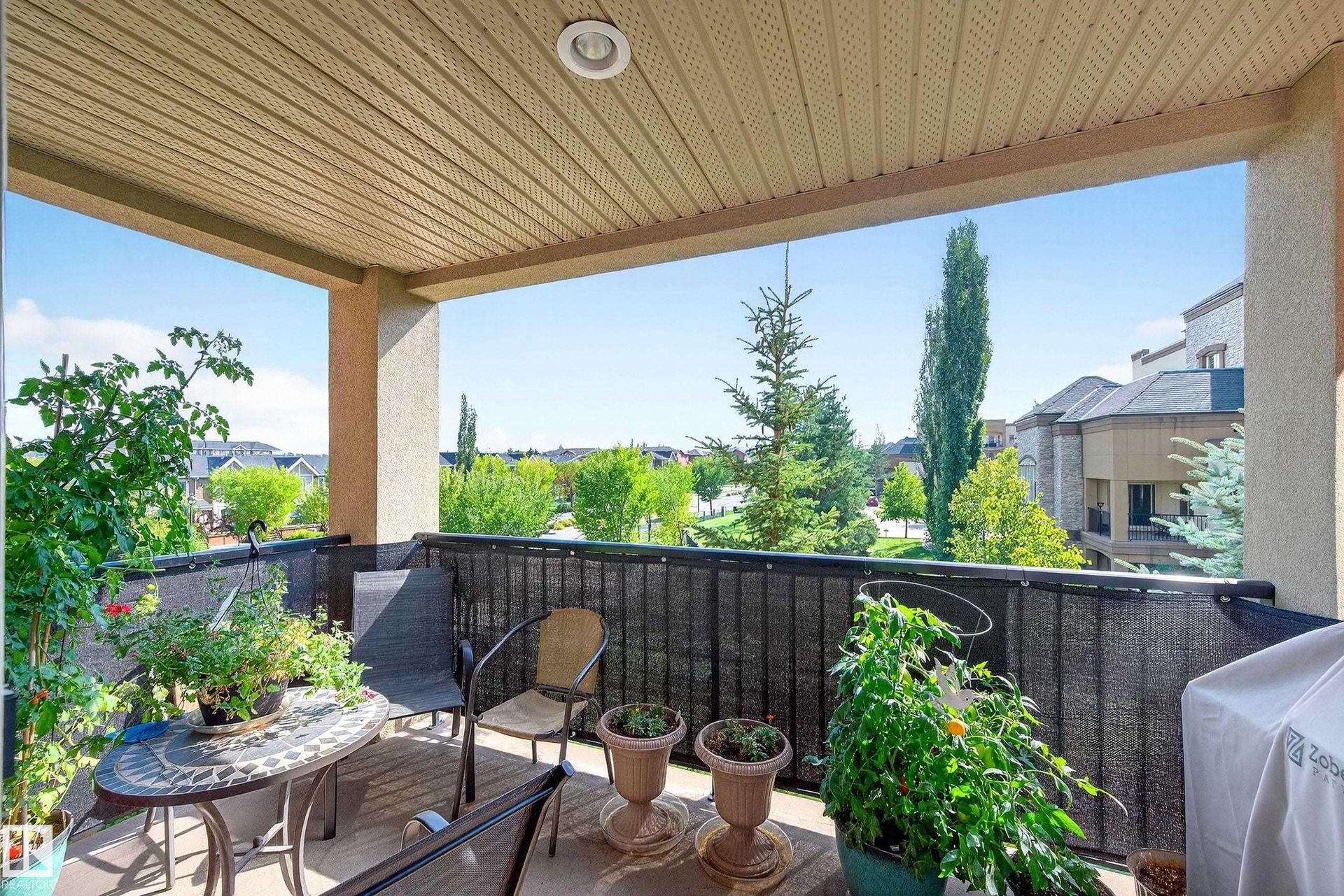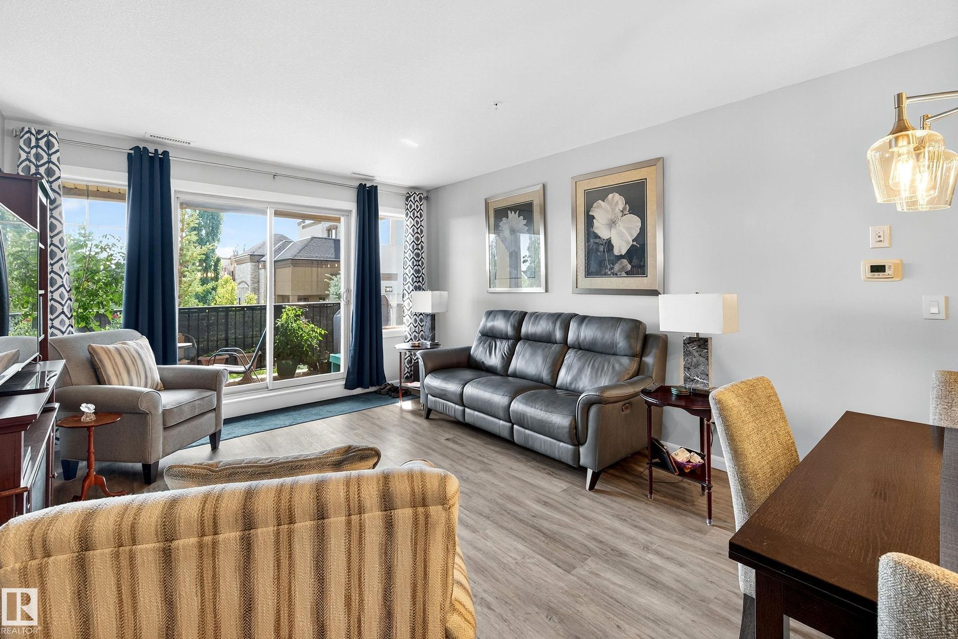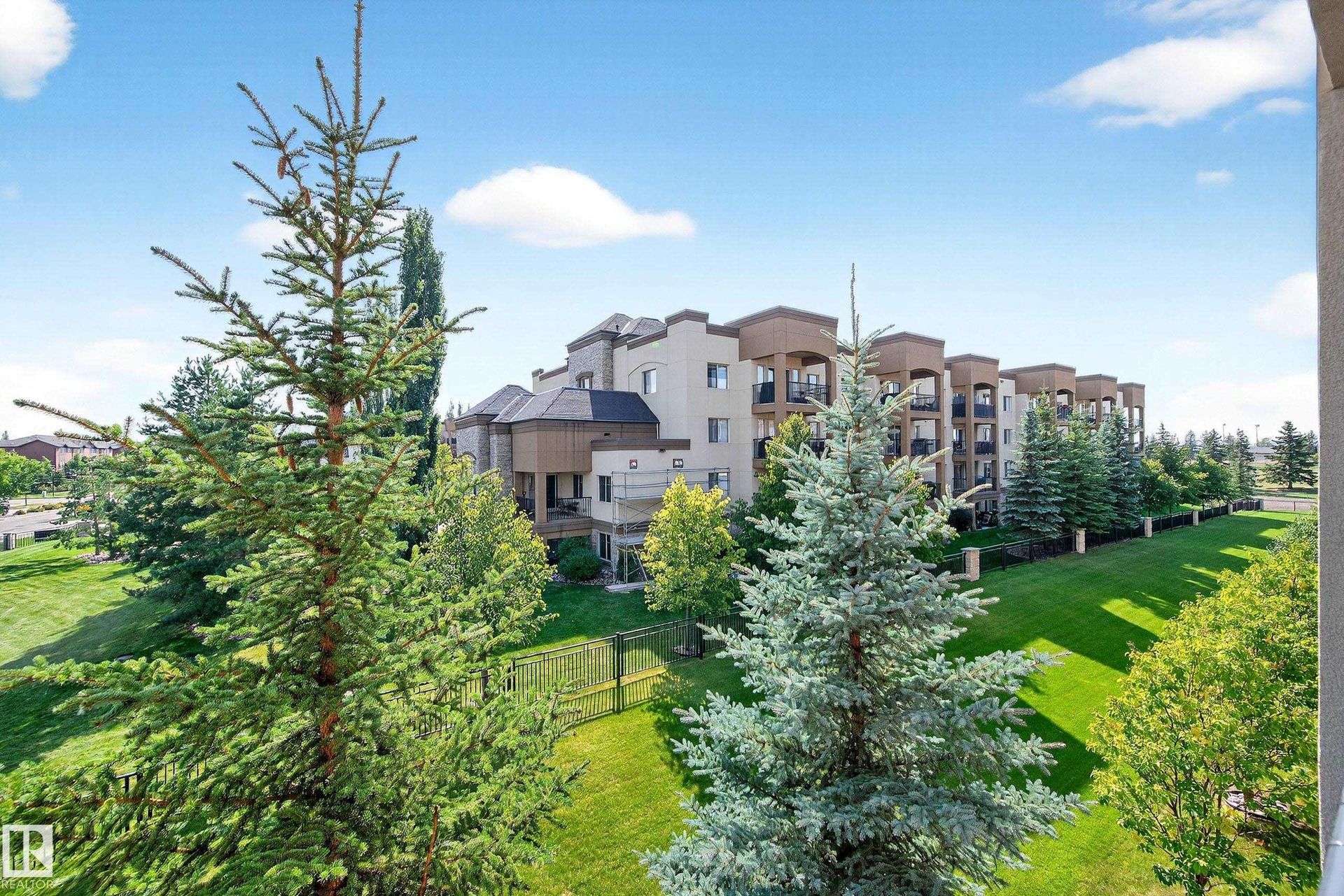 Discover this stunning 2 bed + den, 2 bath suite in the adults-only Palisades On The Ravine. Renovated and air-conditioned, this condo comes with 2 titled parking stalls, storage cage, and a rare 96 sq ft titled storage room steps from your door. Built with concrete construction, this condo features fresh paint, updated fixtures, luxury vinyl flooring, and a prime Sherwood Park location. The modern kitchen shines with stainless steel appliances, induction stove, new quartz countertops, and a spacious pantry. Step outside to your south-facing balcony with a gas line for the BBQ and park-like views. The primary suite includes a walk-through closet and 3-piece ensuite, while the second bedroom and 4-piece main bath are perfect for guests. Added conveniences include in-suite laundry, underground parking, a covered surface stall next to the entrance, plus access to a fitness facility and party room. All this with easy access to public transit, walking trails, the Anthony Henday, and the shops of Emerald Hills.