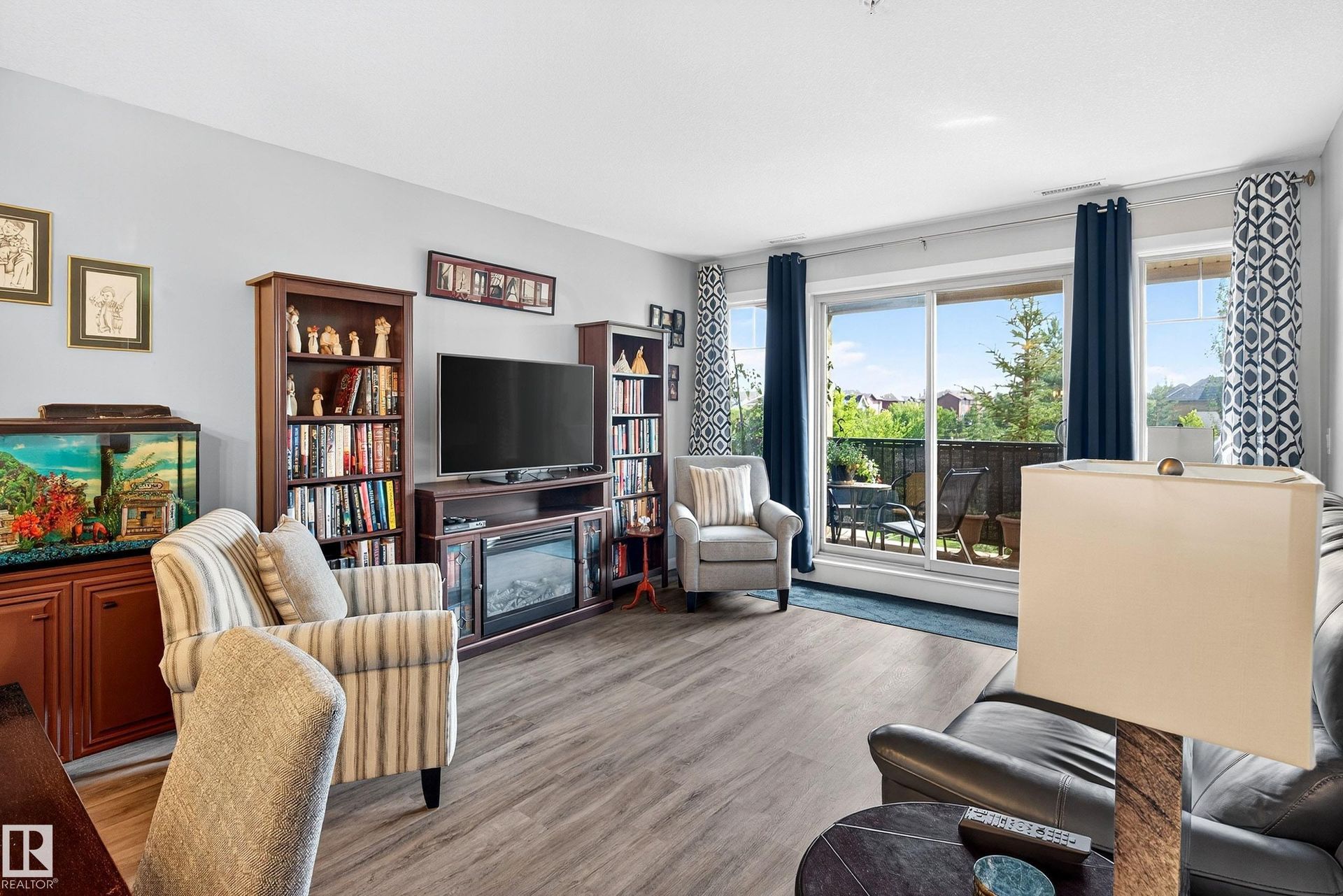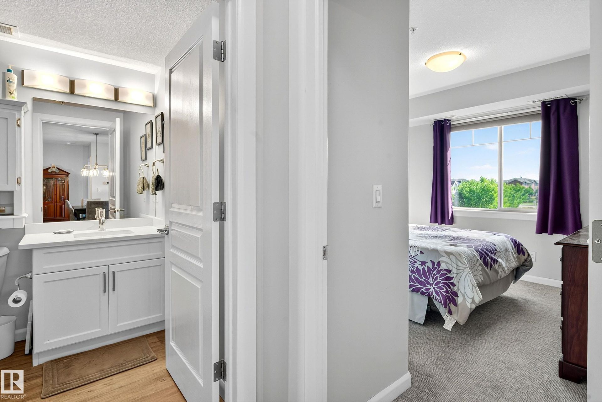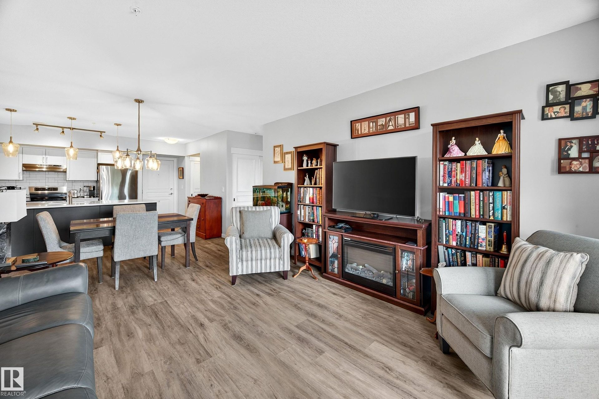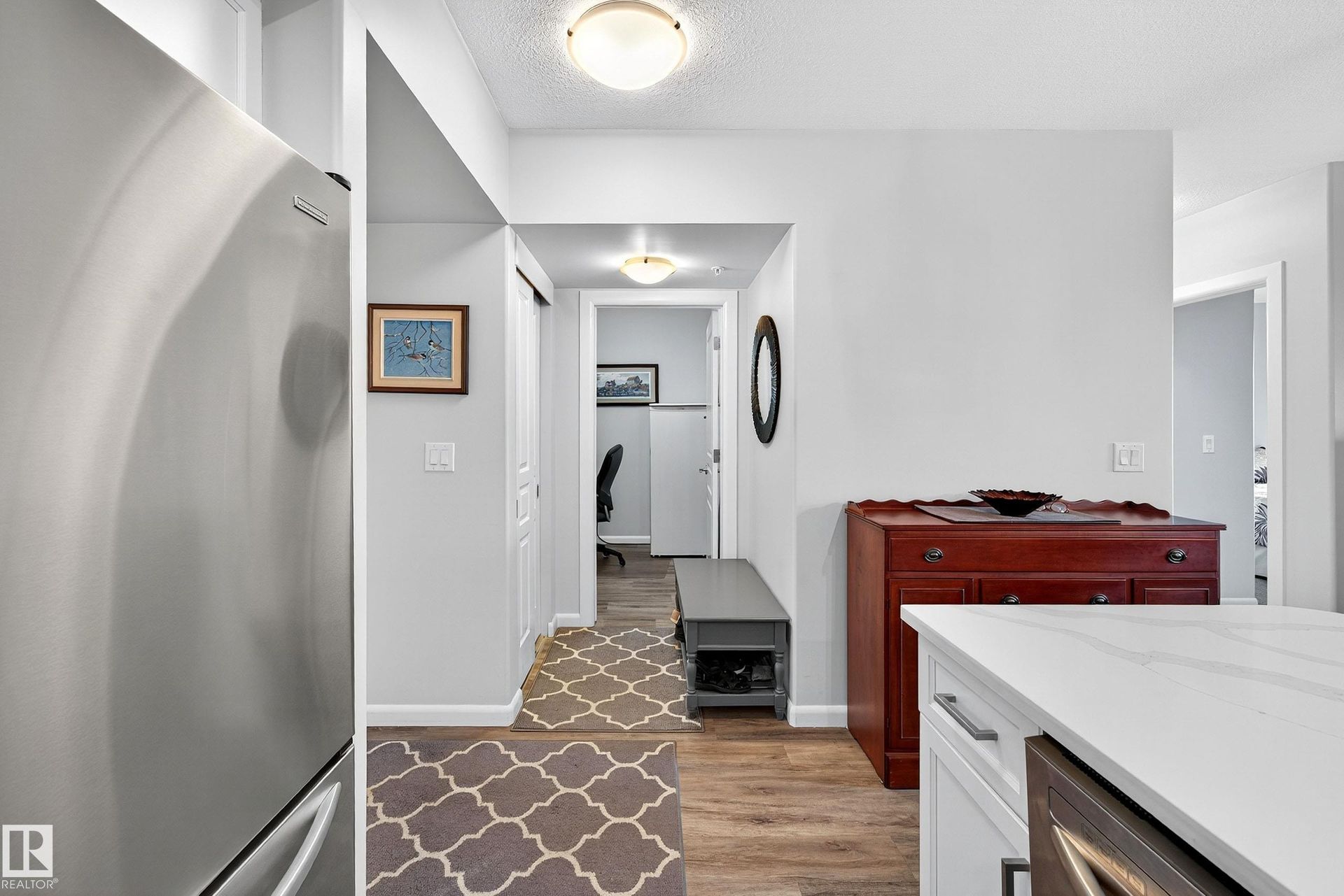 Discover this stunning 2 bed + den, 2 bath suite in the adults-only Palisades On The Ravine. Renovated and air-conditioned, this condo comes with 2 titled parking stalls, storage cage, and a rare 96 sq ft titled storage room steps from your door. Built with concrete construction, this condo features fresh paint, updated fixtures, luxury vinyl flooring, and a prime Sherwood Park location. The modern kitchen shines with stainless steel appliances, induction stove, new quartz countertops, and a spacious pantry. Step outside to your south-facing balcony with a gas line for the BBQ and park-like views. The primary suite includes a walk-through closet and 3-piece ensuite, while the second bedroom and 4-piece main bath are perfect for guests. Added conveniences include in-suite laundry, underground parking, a covered surface stall next to the entrance, plus access to a fitness facility and party room. All this with easy access to public transit, walking trails, the Anthony Henday, and the shops of Emerald Hills.