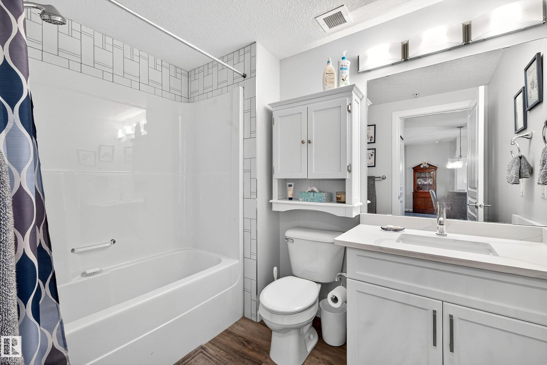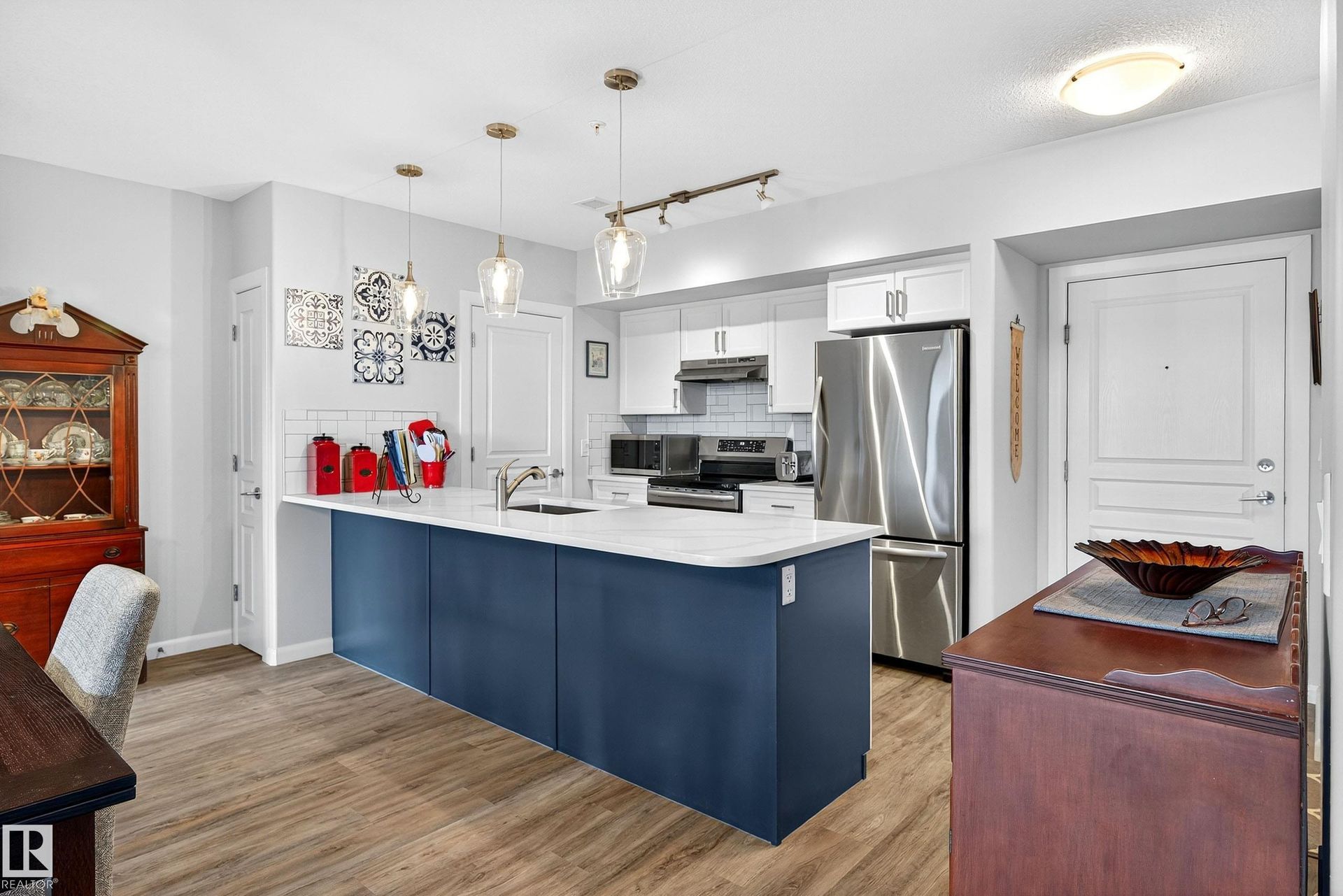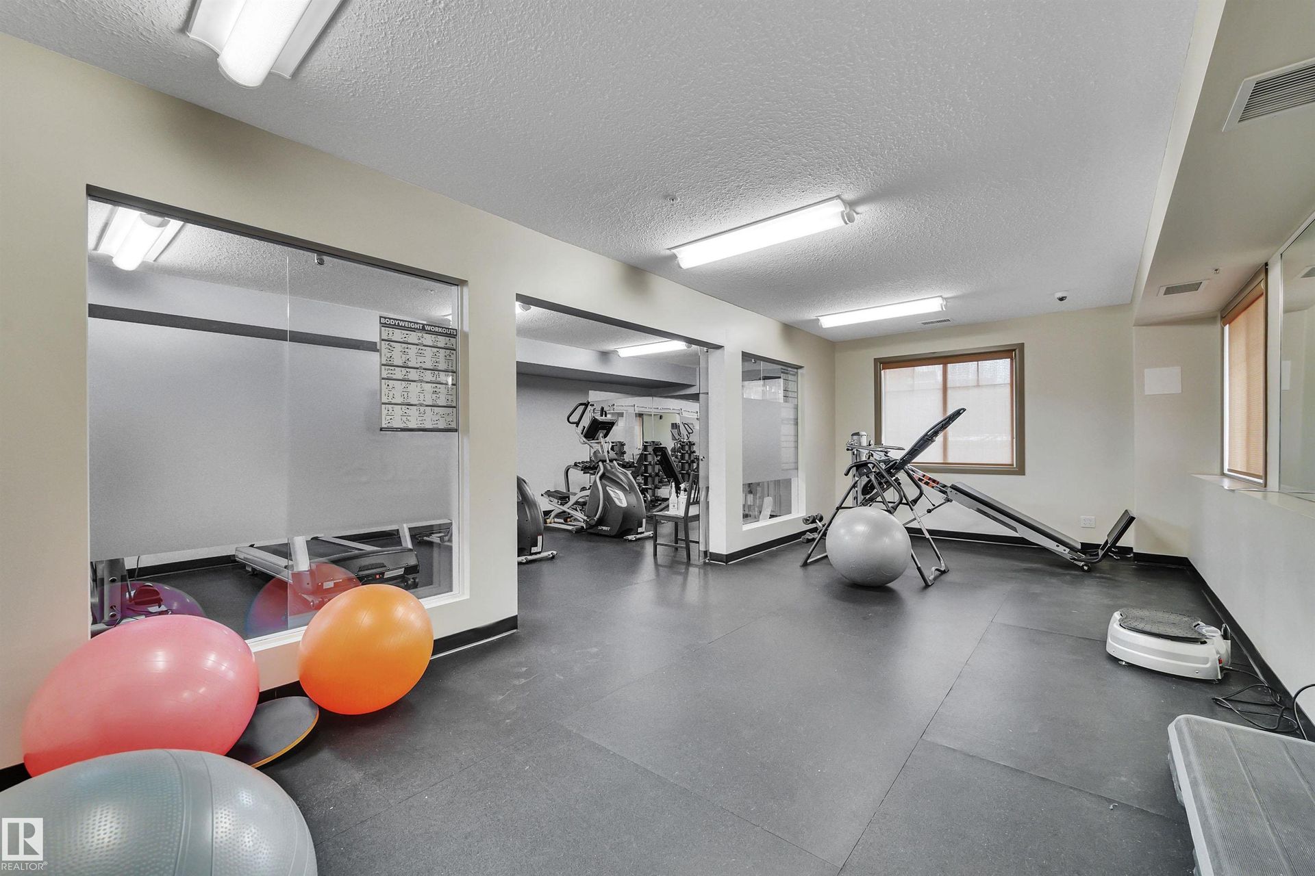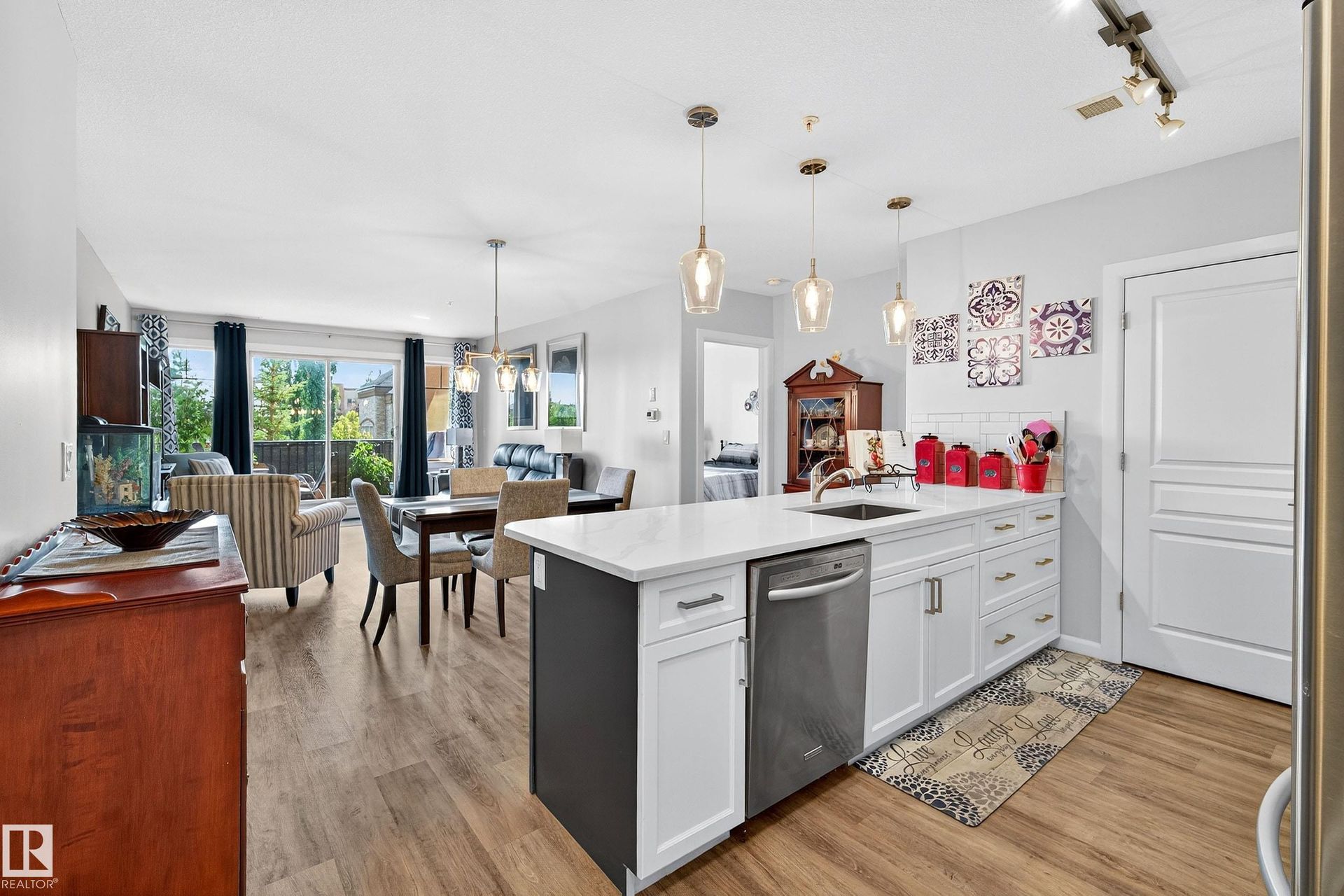 Discover this stunning 2 bed + den, 2 bath suite in the adults-only Palisades On The Ravine. Renovated and air-conditioned, this condo comes with 2 titled parking stalls, storage cage, and a rare 96 sq ft titled storage room steps from your door. Built with concrete construction, this condo features fresh paint, updated fixtures, luxury vinyl flooring, and a prime Sherwood Park location. The modern kitchen shines with stainless steel appliances, induction stove, new quartz countertops, and a spacious pantry. Step outside to your south-facing balcony with a gas line for the BBQ and park-like views. The primary suite includes a walk-through closet and 3-piece ensuite, while the second bedroom and 4-piece main bath are perfect for guests. Added conveniences include in-suite laundry, underground parking, a covered surface stall next to the entrance, plus access to a fitness facility and party room. All this with easy access to public transit, walking trails, the Anthony Henday, and the shops of Emerald Hills.