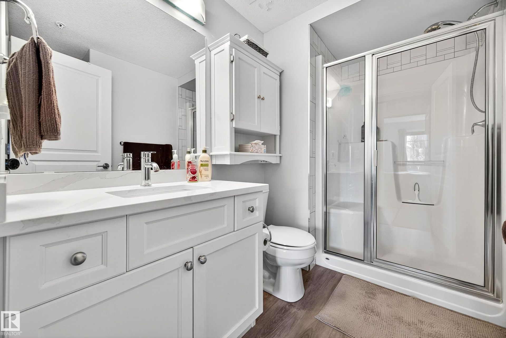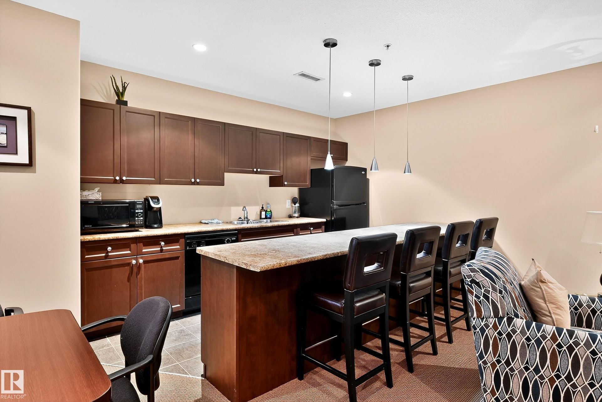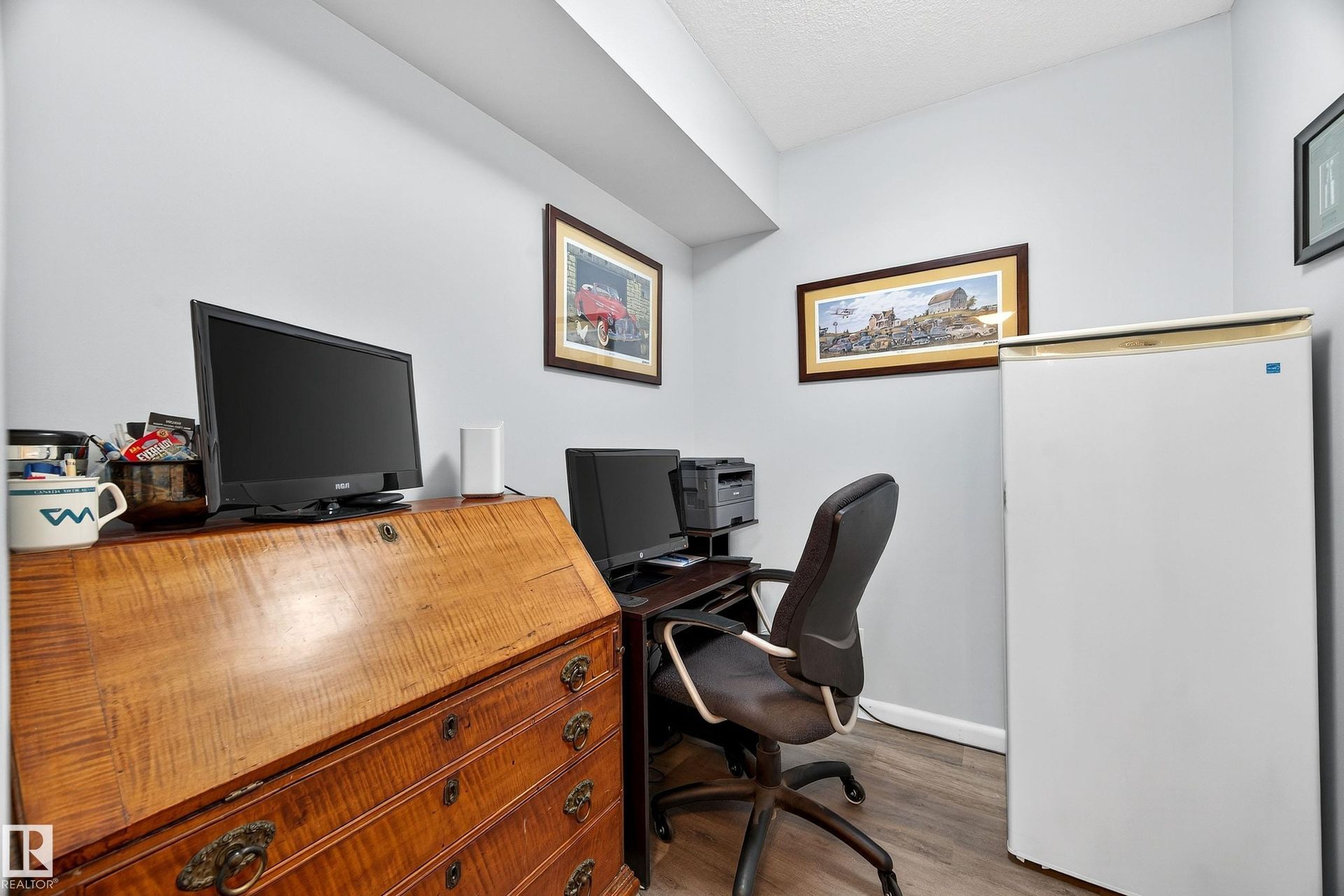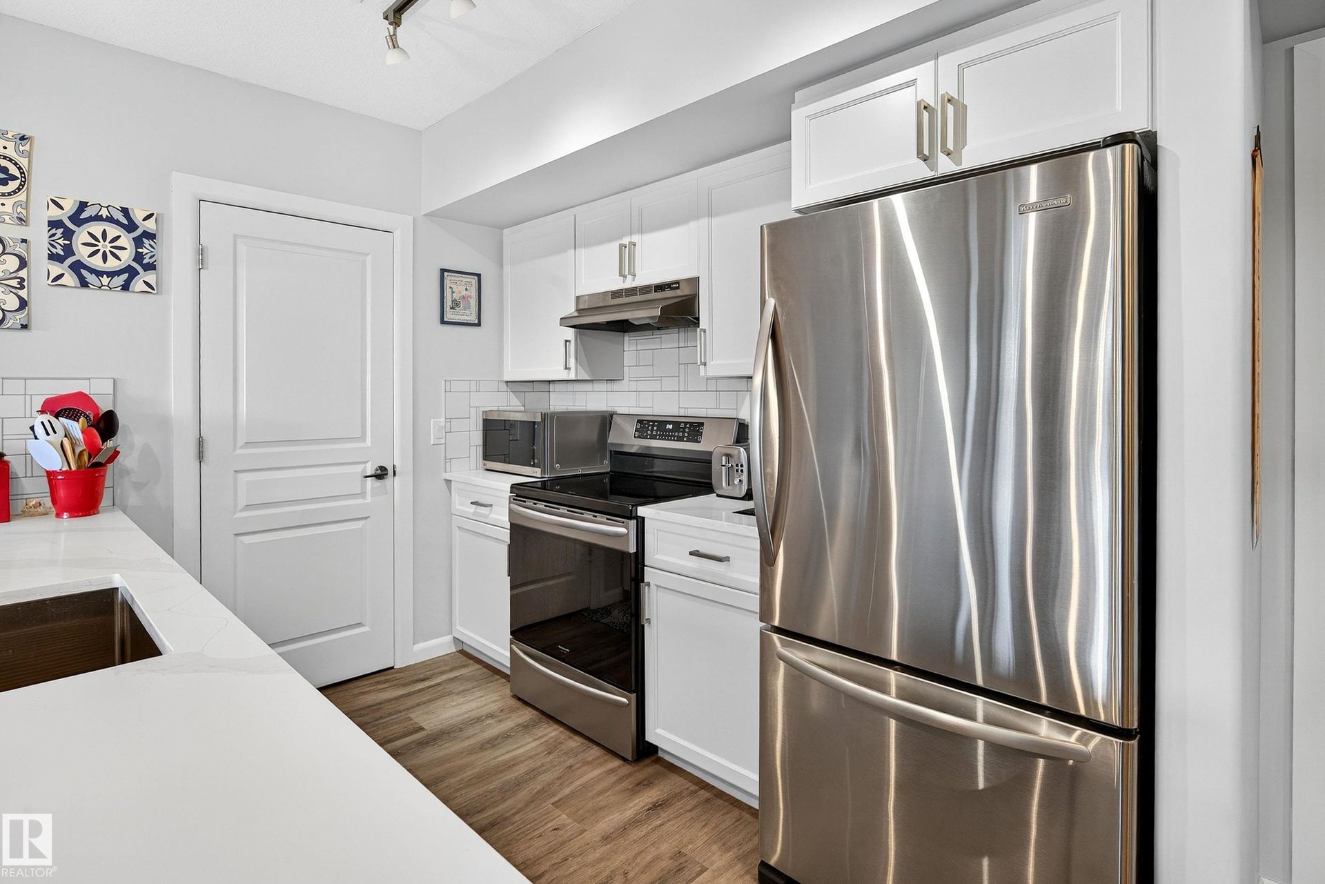 Discover this stunning 2 bed + den, 2 bath suite in the adults-only Palisades On The Ravine. Renovated and air-conditioned, this condo comes with 2 titled parking stalls, storage cage, and a rare 96 sq ft titled storage room steps from your door. Built with concrete construction, this condo features fresh paint, updated fixtures, luxury vinyl flooring, and a prime Sherwood Park location. The modern kitchen shines with stainless steel appliances, induction stove, new quartz countertops, and a spacious pantry. Step outside to your south-facing balcony with a gas line for the BBQ and park-like views. The primary suite includes a walk-through closet and 3-piece ensuite, while the second bedroom and 4-piece main bath are perfect for guests. Added conveniences include in-suite laundry, underground parking, a covered surface stall next to the entrance, plus access to a fitness facility and party room. All this with easy access to public transit, walking trails, the Anthony Henday, and the shops of Emerald Hills.