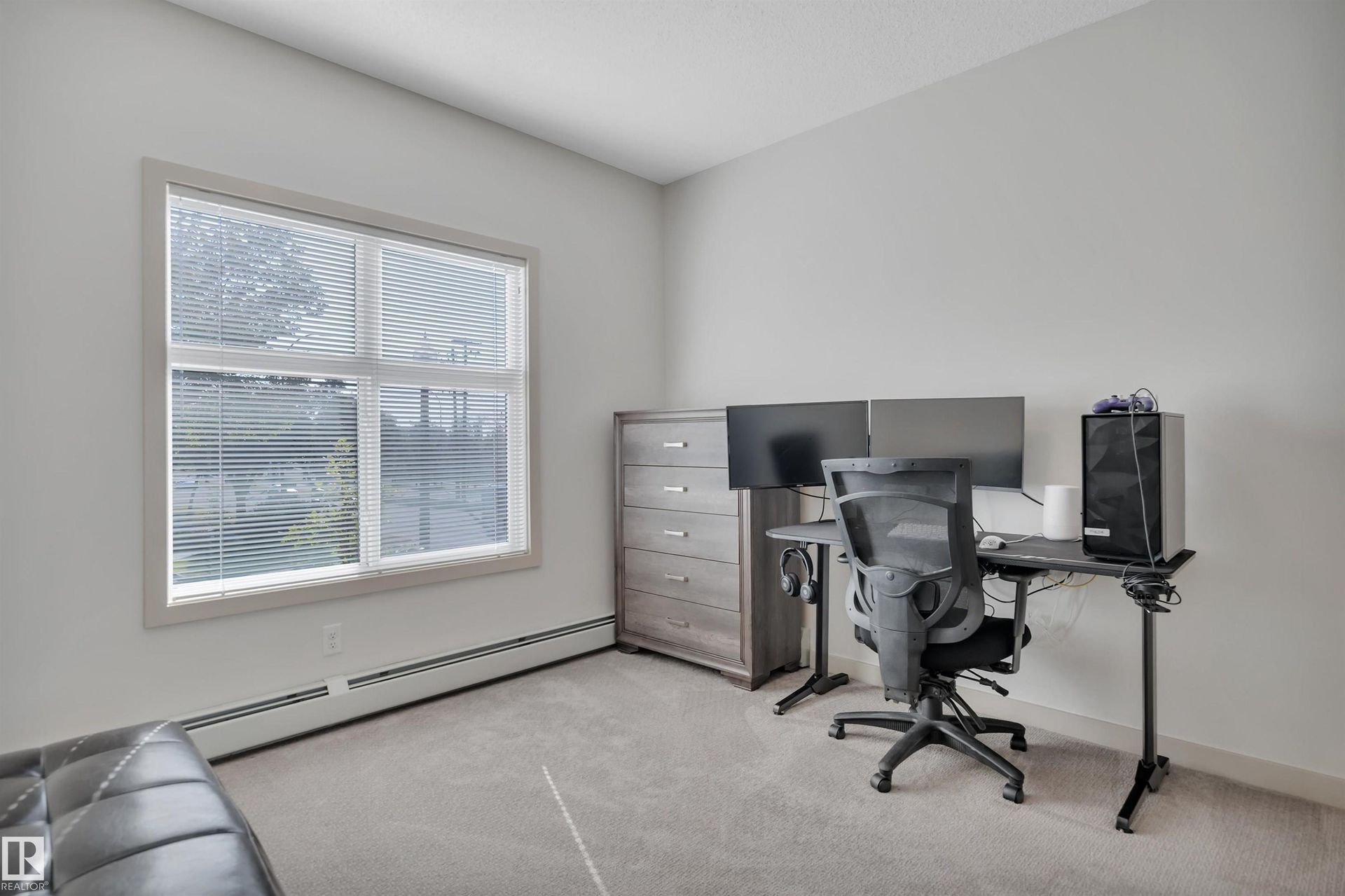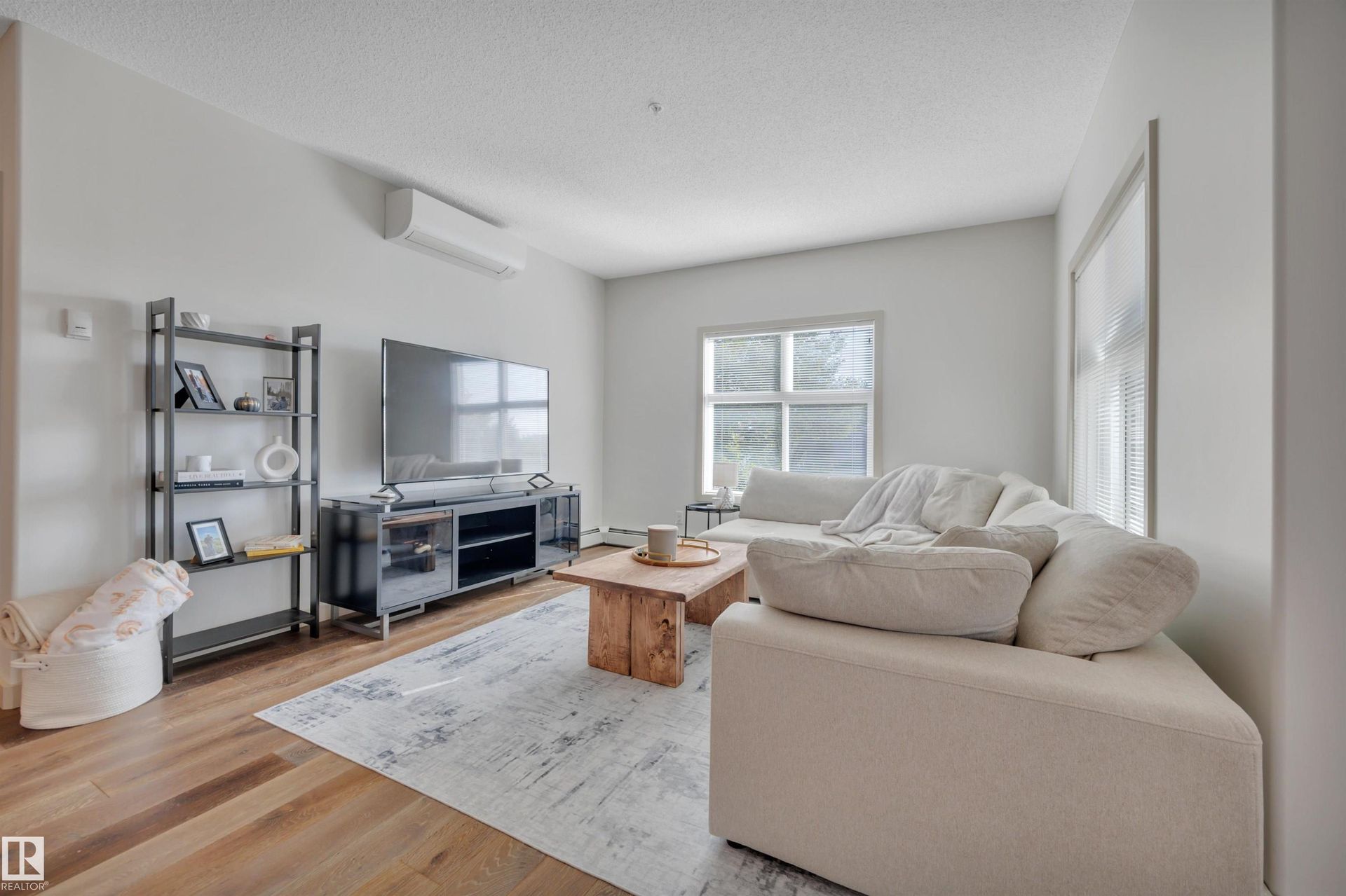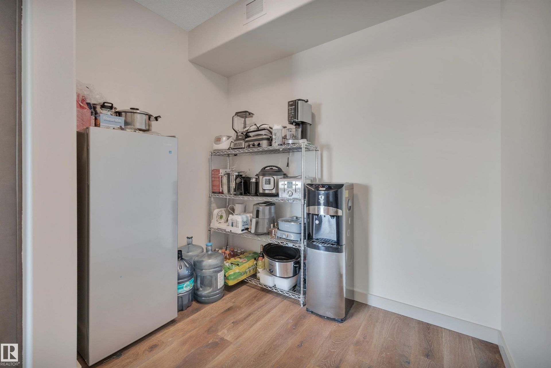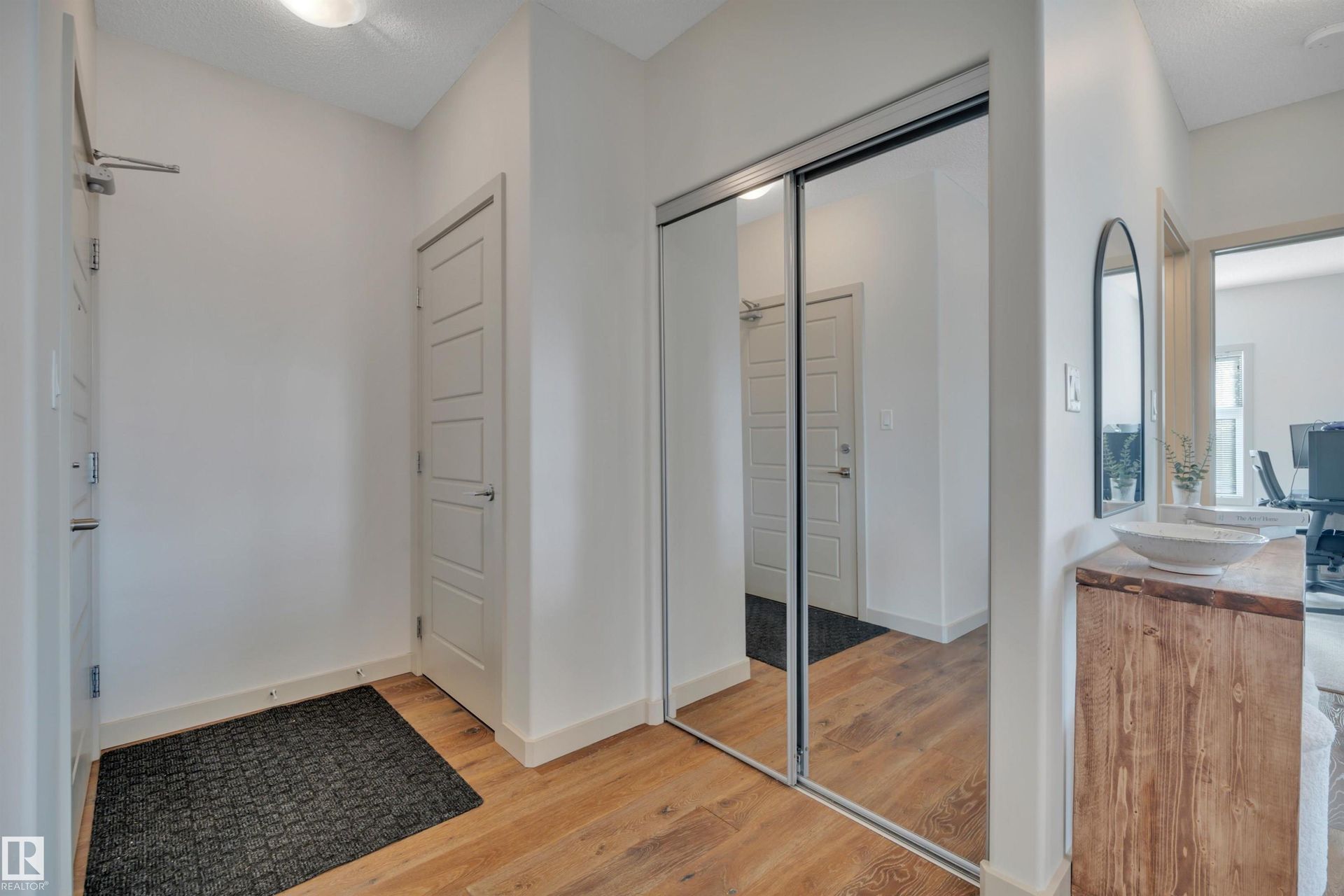 Welcome to Griesbach! Discover this stunning 2 bed / 2 bath + den corner suite in Valour II. This air-conditioned and meticulously maintained condo comes with 2 titled underground parking stalls and a storage cage. The open concept layout, 9' ceilings, large windows, and luxury vinyl flooring welcomes you into the bright main living space. The modern kitchen shines with stainless steel appliances, quartz countertops, and large pantry cupboard. Beyond the spacious living room lies your your SE-facing corner balcony. The primary suite includes a walk-through closet and 3-piece ensuite, while the second bedroom and 4-piece main bath are perfect for guests or a home office. Added conveniences include in-suite laundry and access to the fitness facility and party room. All this just steps away from public transit, walking trails, and the many new shops and restaurants of Griesbach. A must see!