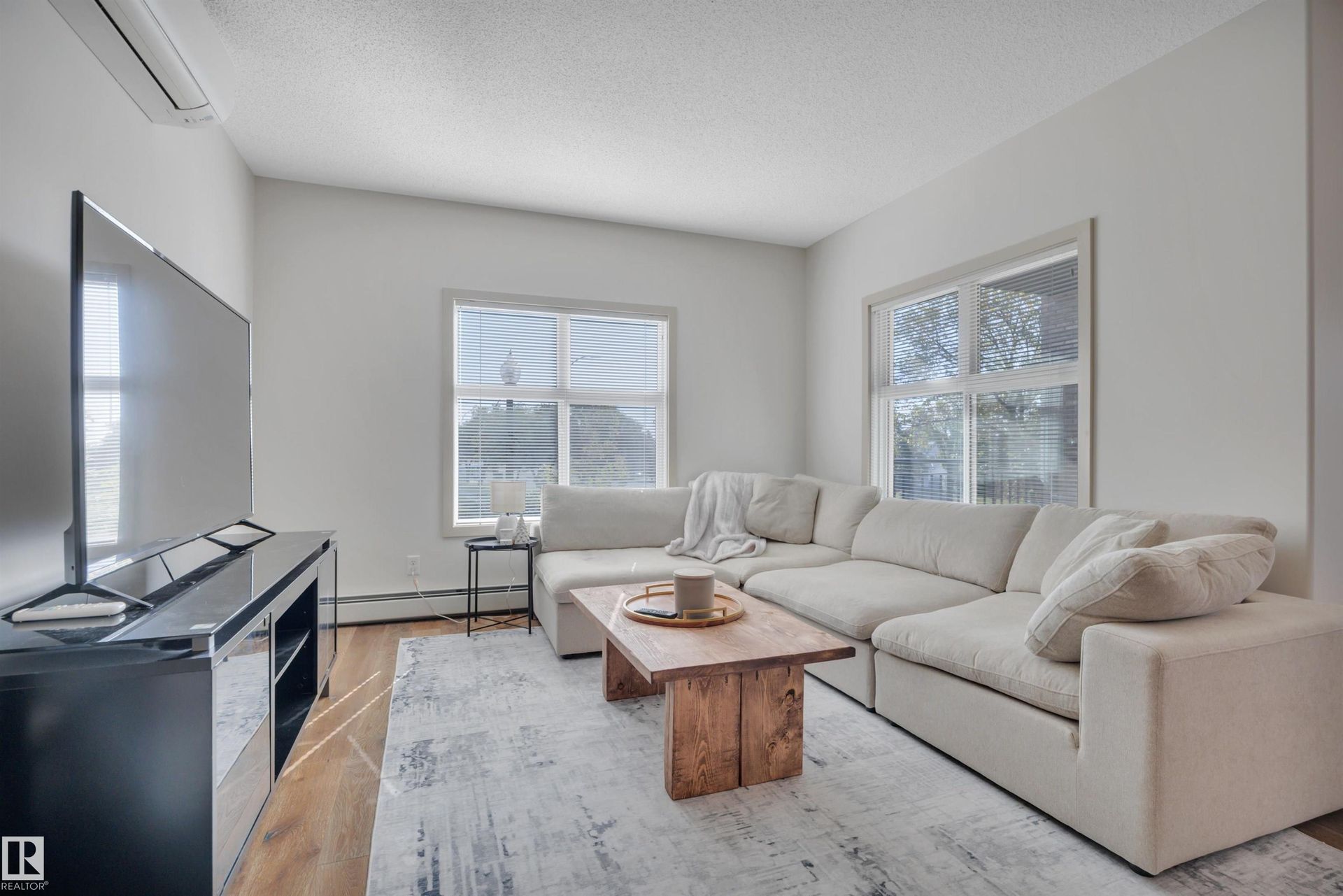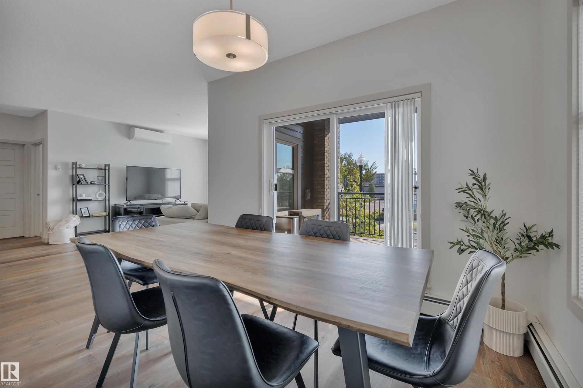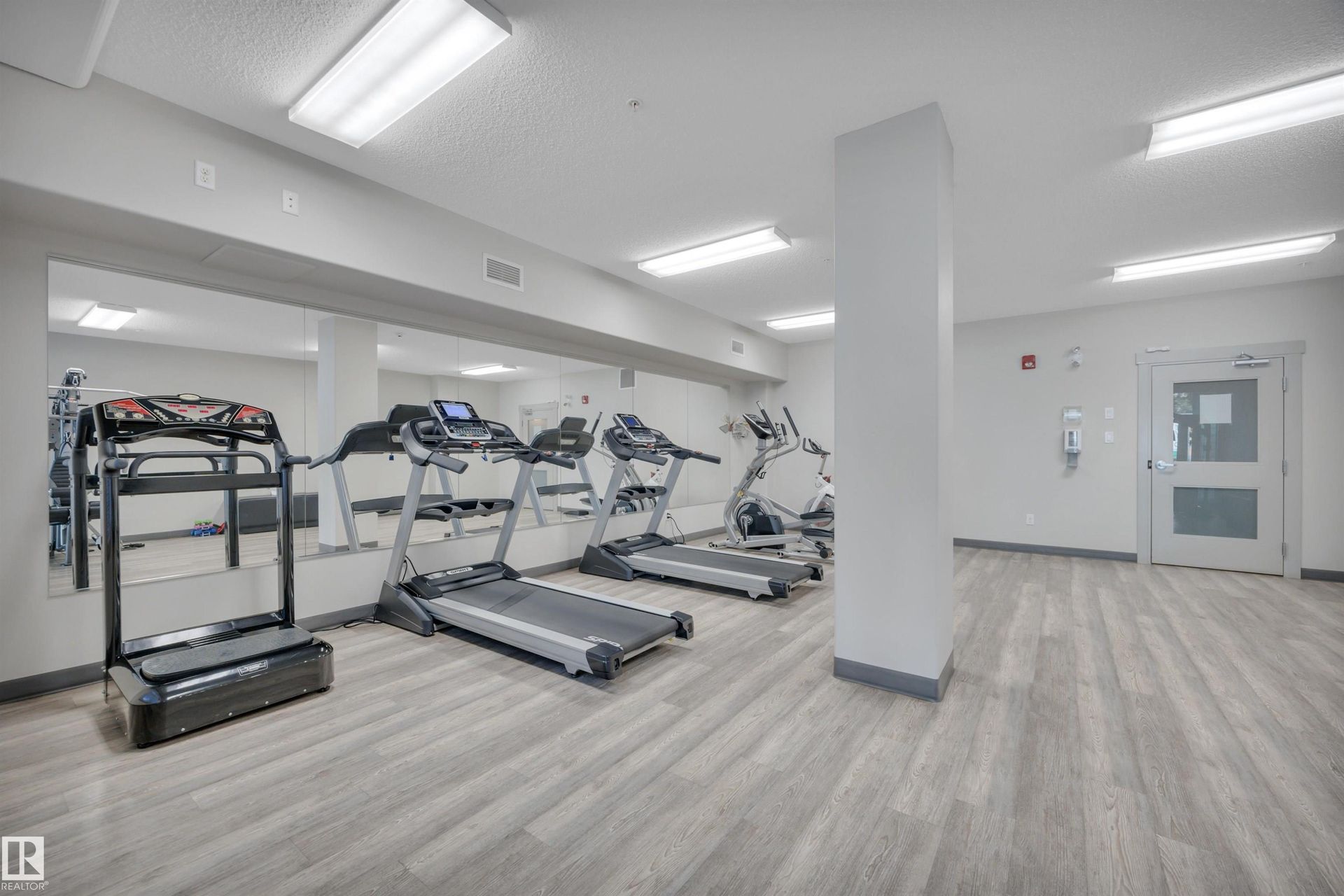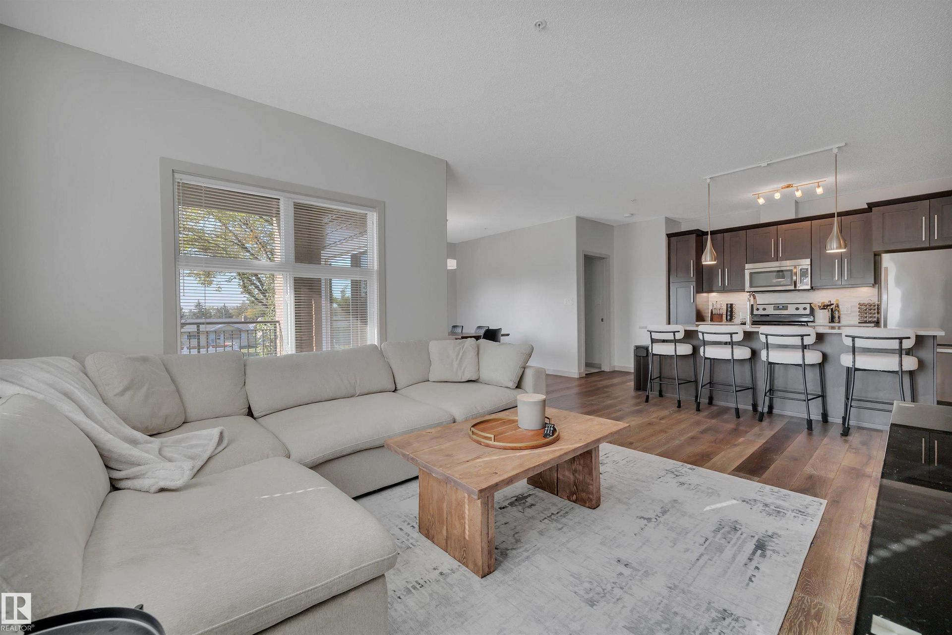 Welcome to Griesbach! Discover this stunning 2 bed / 2 bath + den corner suite in Valour II. This air-conditioned and meticulously maintained condo comes with 2 titled underground parking stalls and a storage cage. The open concept layout, 9' ceilings, large windows, and luxury vinyl flooring welcomes you into the bright main living space. The modern kitchen shines with stainless steel appliances, quartz countertops, and large pantry cupboard. Beyond the spacious living room lies your your SE-facing corner balcony. The primary suite includes a walk-through closet and 3-piece ensuite, while the second bedroom and 4-piece main bath are perfect for guests or a home office. Added conveniences include in-suite laundry and access to the fitness facility and party room. All this just steps away from public transit, walking trails, and the many new shops and restaurants of Griesbach. A must see!