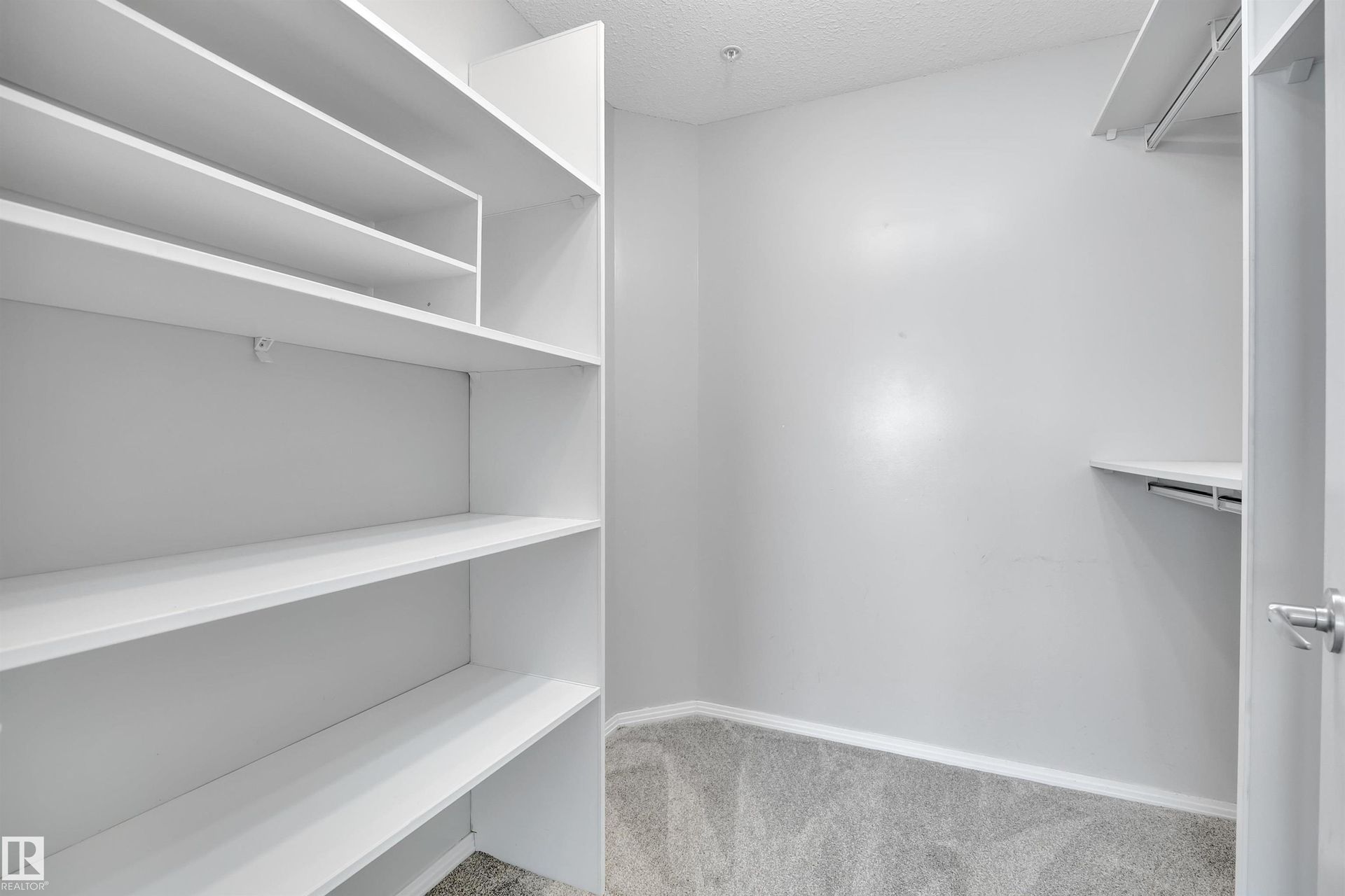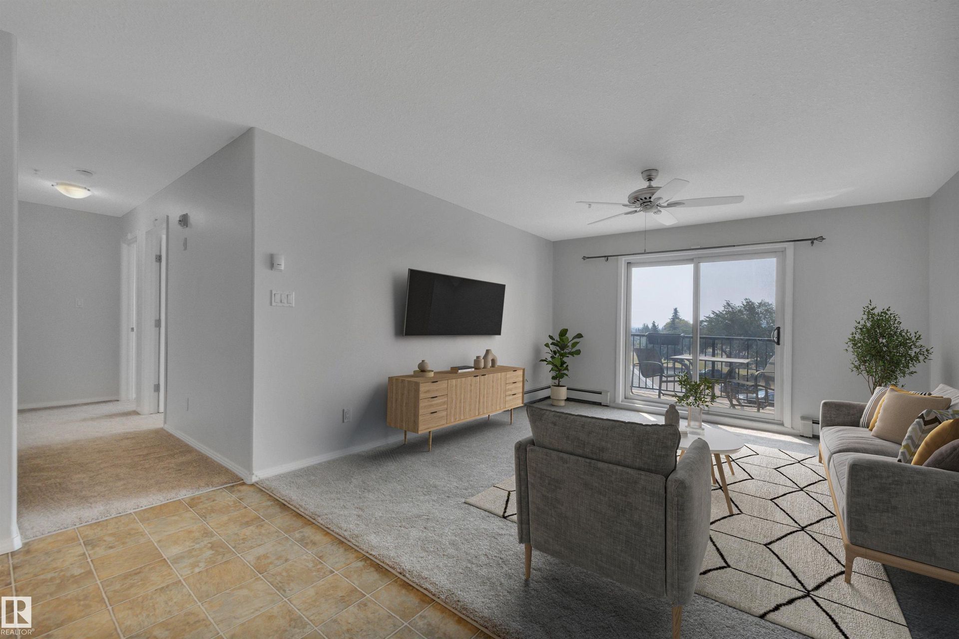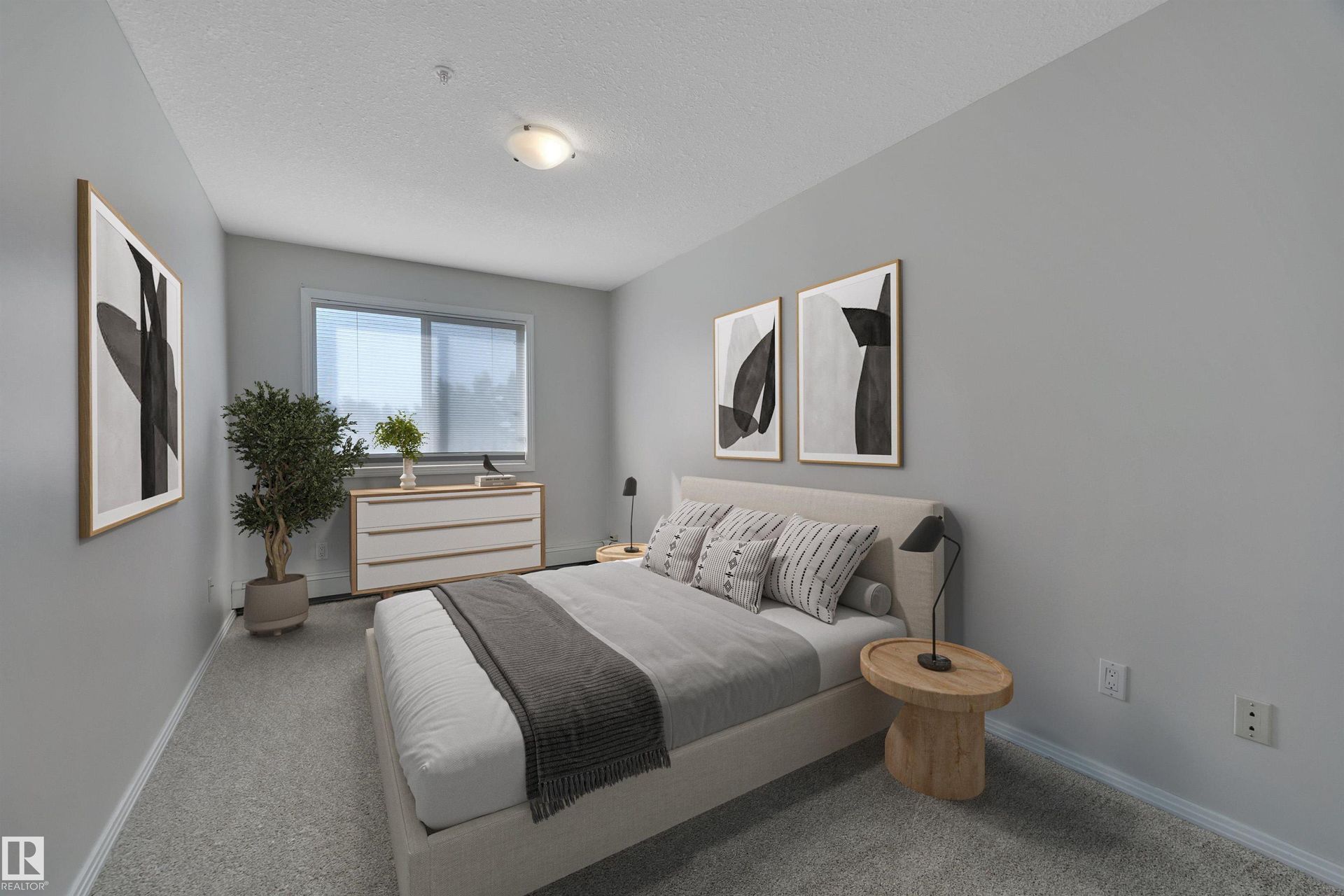 Welcome to the Ravines at Hermitage! This 2 bedroom / 18+ condominium is ideally located along Victoria Trail and close to the walking trails of Hermitage Park. Recent updates include new carpets and fresh paint throughout. The open concept layout welcomes you into the spacious kitchen with ample cabinets and counter space. Enjoy entertaining in your bright living room and on your south-facing balcony. The primary suite offers an oversized walk-in closet and an adjacent 4 piece main bath. An additional bedroom and the in-suite laundry / storage room completes the main living area. Convenience is key with a titled and covered surface stall, and access to the building's social room with pool table and kitchen. A must see!