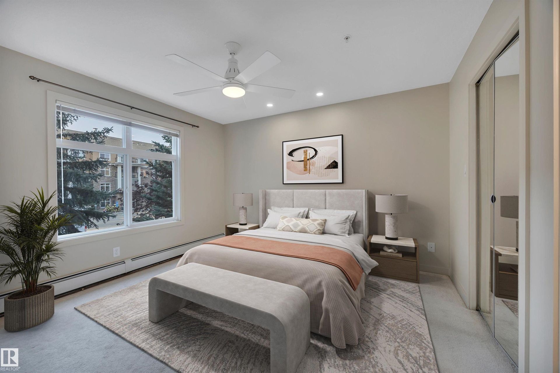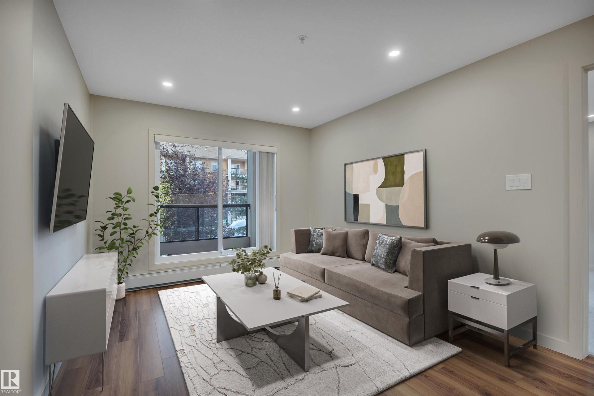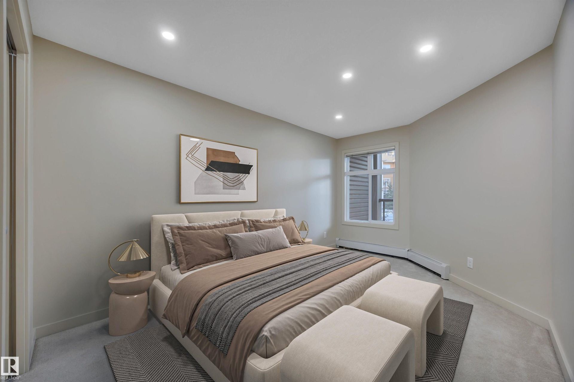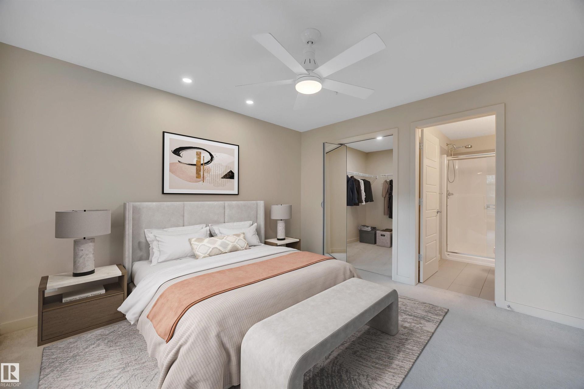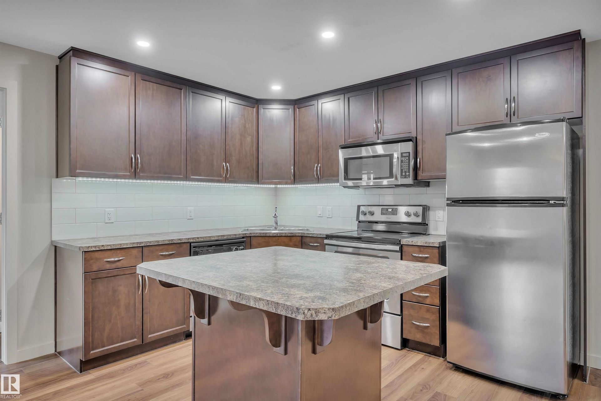 Welcome to Rutherford Gate! This updated and impeccably maintained 2 bedroom condo with underground parking is available for immediate possession. The spacious entryway welcomes you into the freshly painted open concept living space. Enjoy cooking in your stylish kitchen with newer stainless steel appliances and powered island. Relax with family and friends in the large living room and on the adjacent south-facing covered balcony... on the quiet side of the building. Your primary bedroom offers a 3-piece ensuite, while both bedrooms feature oversized walk-in closets. With over 20 pot lights added, the space truly shines. Convenience is key with the large storage room with in-suite laundry, gas line to BBQ, and storage cage. Take advantage of the building's fitness centre, social room, guest suite, and secure underground parking. You'll be in the middle of all the action with prime access to public transit, Anthony Henday, Windermere, and South Edmonton Common. Move-in ready. A must see!