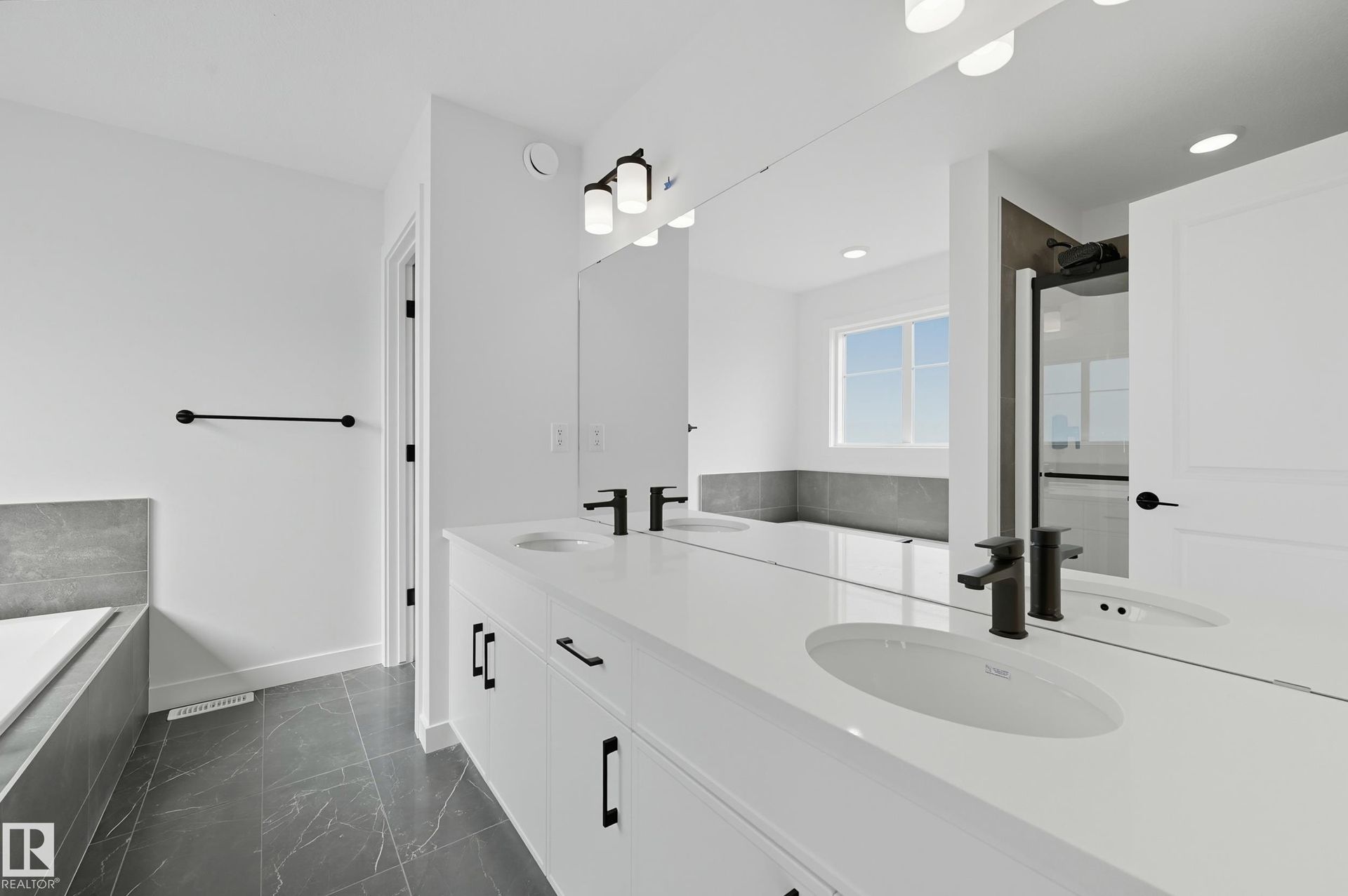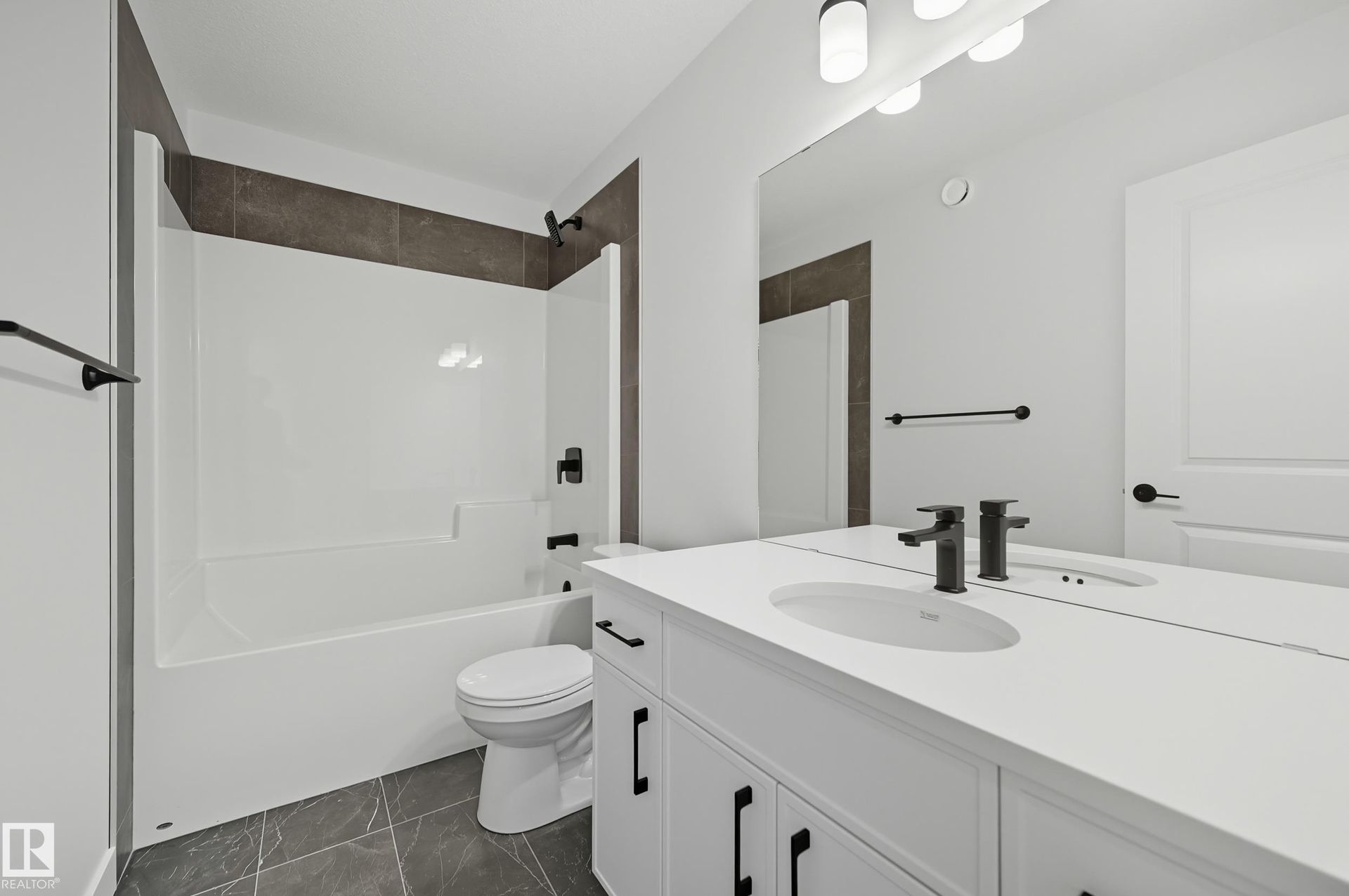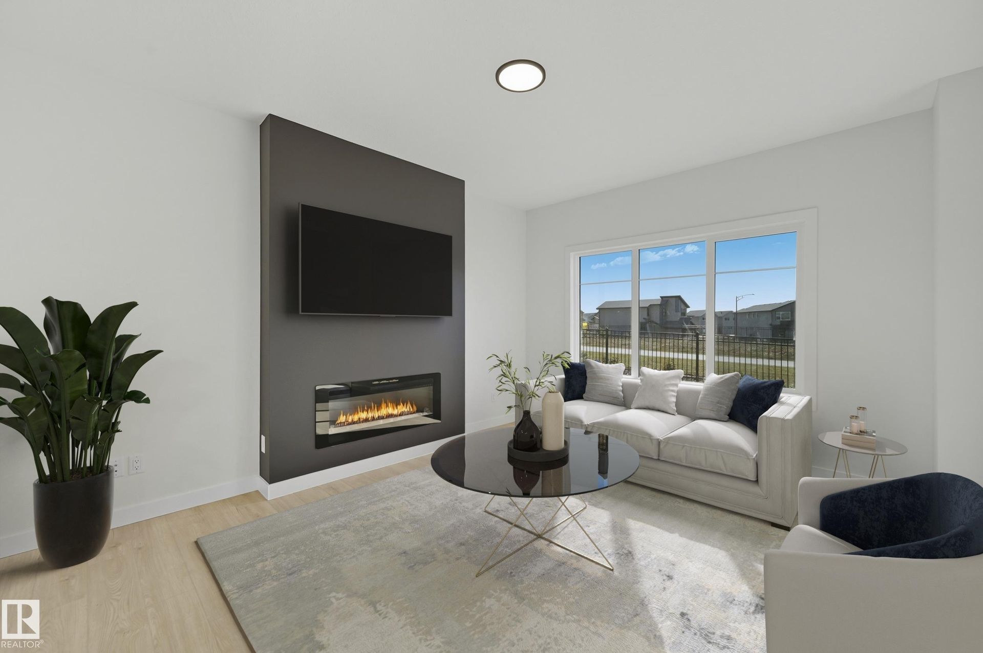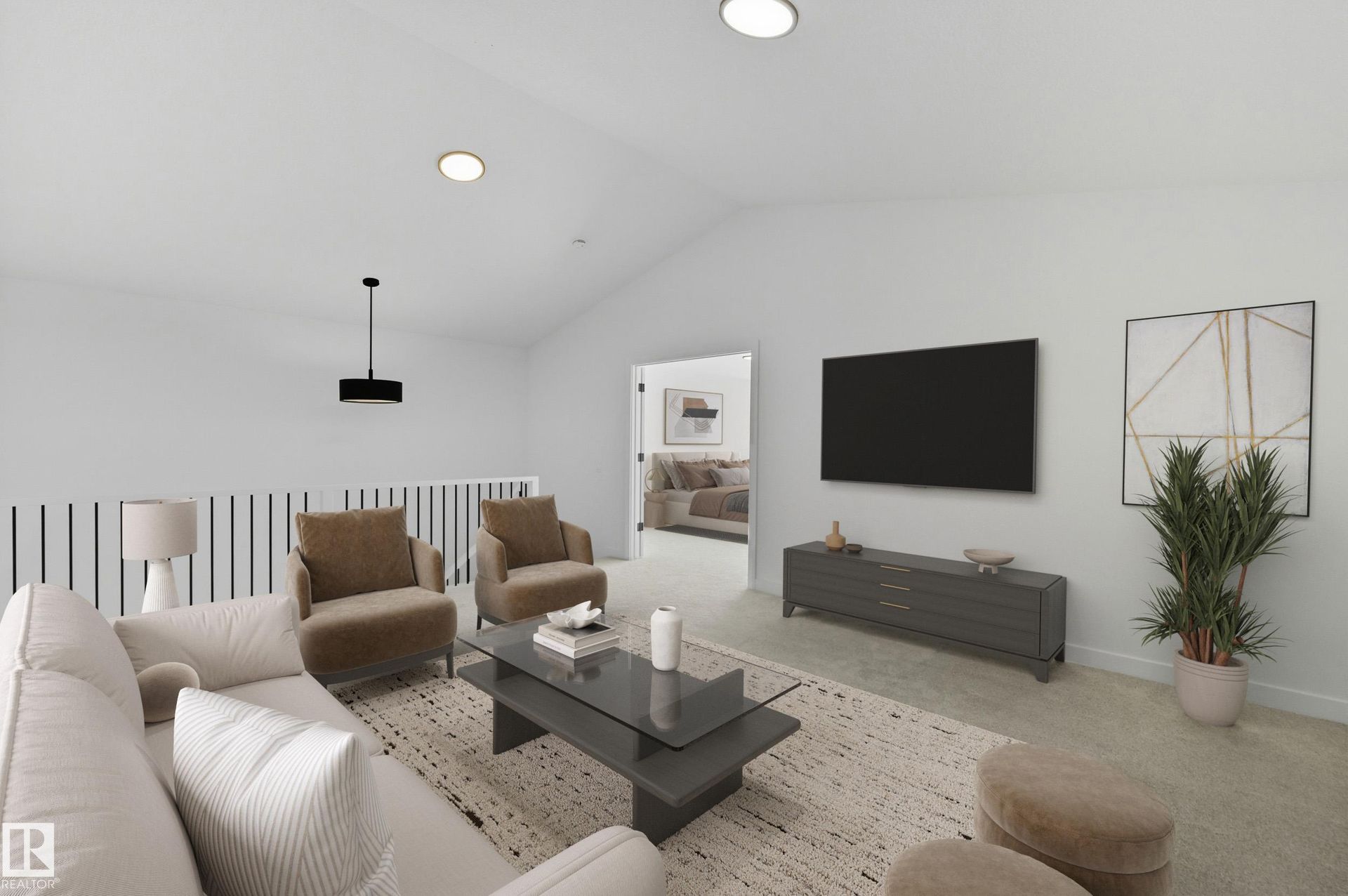 Welcome to the modified Evan, boasting 2,270 sq. ft. of thoughtfully designed living space & ideal backing SW on Greenspace. Versatile layout adapts seamlessly to your lifestyle, whether accommodating guests, office, or multi-generational living. Main floor bdrm with full bathroom, & a convenient side entrance that enhances potential for basement suite. Open-concept main floor where the kitchen shines with a large island, quartz countertops, & a walk-through pantry adjacent to the mudroom. This culinary space overlooks the dining nook & spacious great room, making it ideal for entertaining. Upper level opens to vaulted bonus room perfect for relaxing/play area. Primary suite is designed for rejuvenation, featuring a walk-in closet, spa-inspired ensuite with dual sinks, drop-in tub, & separate shower. Two more bdrms, each with walk-in closets, full bath, upstairs laundry. With 9' main & basement get that airy open feeling. Convenient access to amenities, schools, parks, & the nearby Lewis Farms Rec Centre!