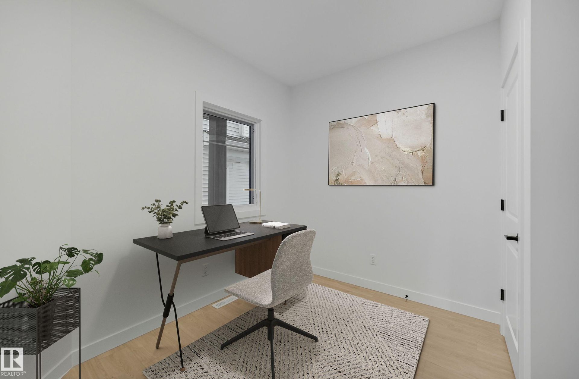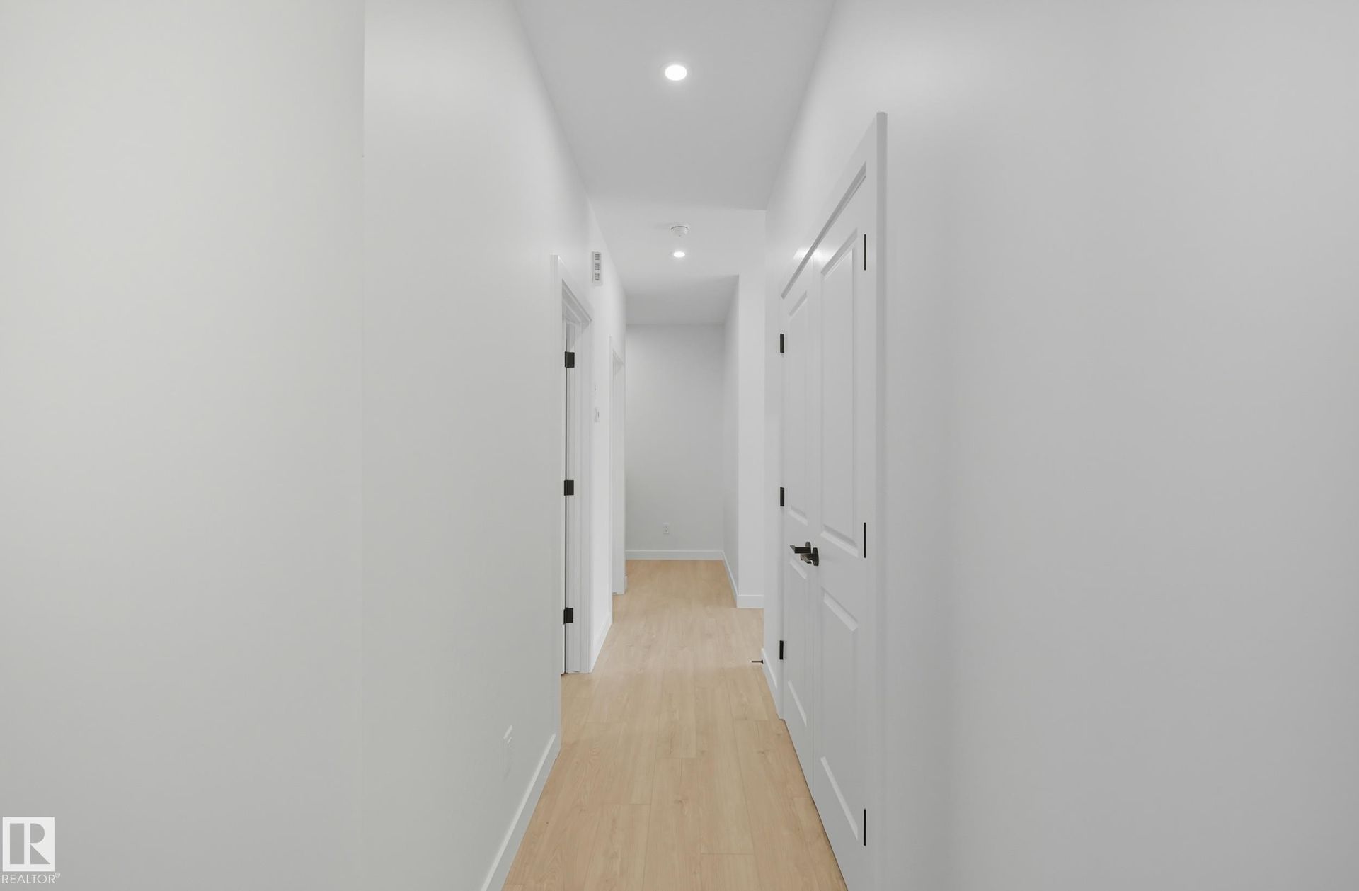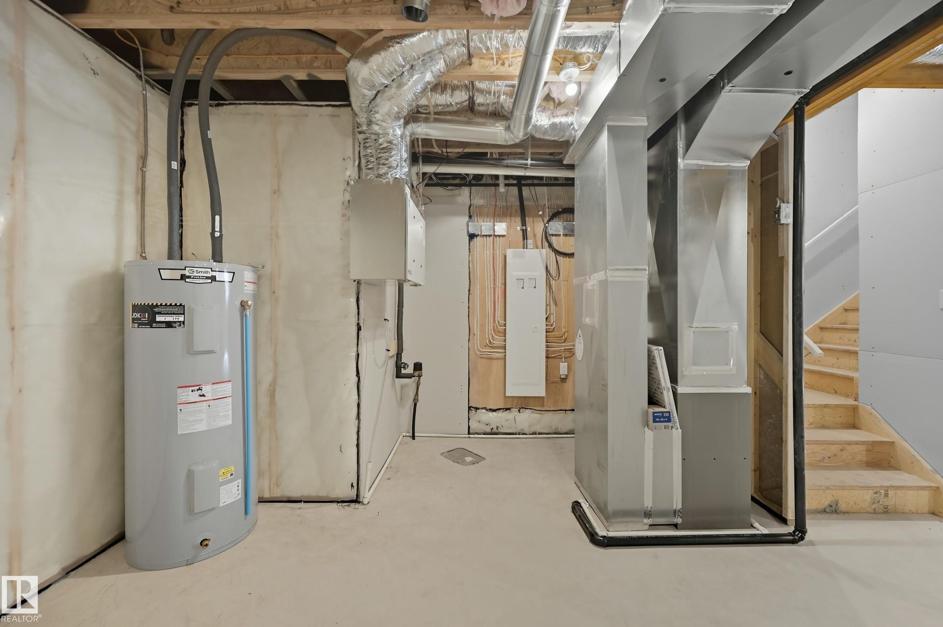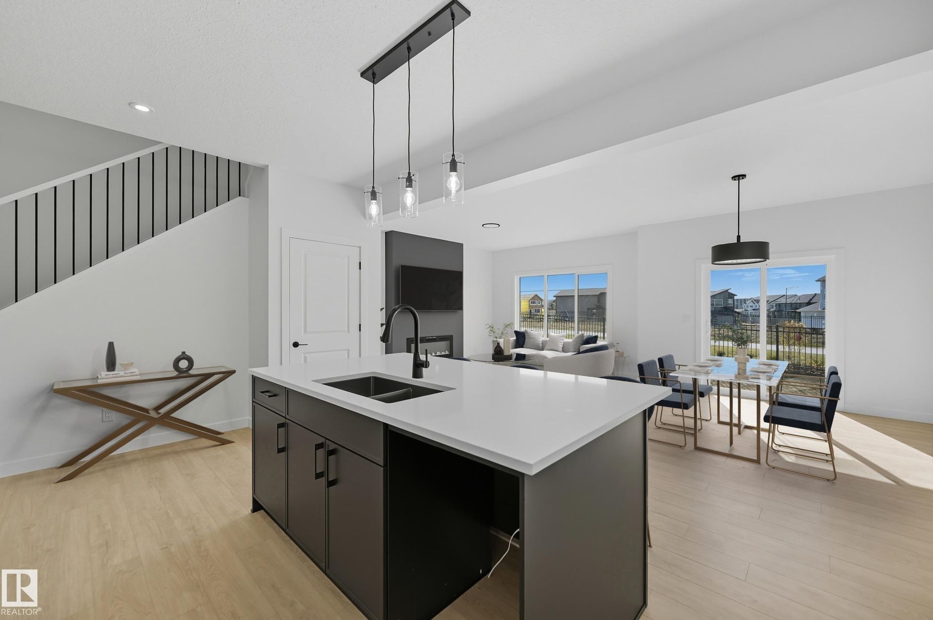 Welcome to the modified Evan, boasting 2,270 sq. ft. of thoughtfully designed living space & ideal backing SW on Greenspace. Versatile layout adapts seamlessly to your lifestyle, whether accommodating guests, office, or multi-generational living. Main floor bdrm with full bathroom, & a convenient side entrance that enhances potential for basement suite. Open-concept main floor where the kitchen shines with a large island, quartz countertops, & a walk-through pantry adjacent to the mudroom. This culinary space overlooks the dining nook & spacious great room, making it ideal for entertaining. Upper level opens to vaulted bonus room perfect for relaxing/play area. Primary suite is designed for rejuvenation, featuring a walk-in closet, spa-inspired ensuite with dual sinks, drop-in tub, & separate shower. Two more bdrms, each with walk-in closets, full bath, upstairs laundry. With 9' main & basement get that airy open feeling. Convenient access to amenities, schools, parks, & the nearby Lewis Farms Rec Centre!