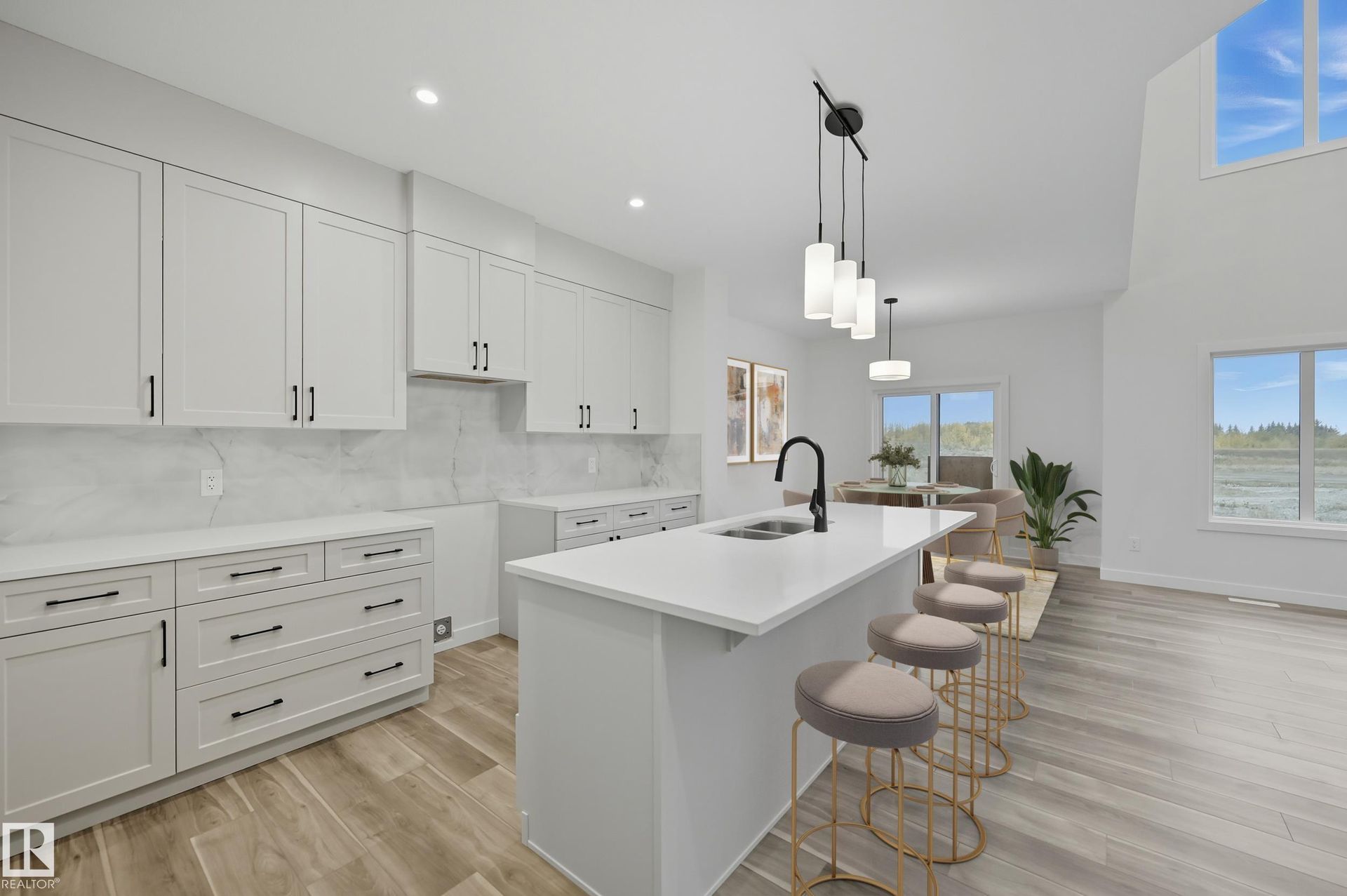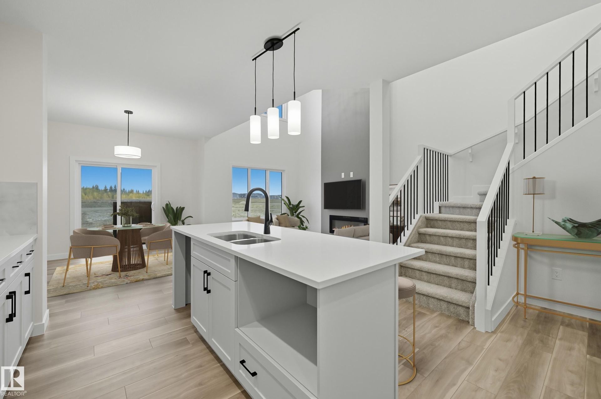 This Victor offers 1990sf is built to support modern families with comfort, flexibility, & future potential. With a main floor bdrm/full bathroom, side entry, & stunning open-to-above great room, this home is move-in ready. Mainfloor with 9' ceilings delivers a spacious, connected layout where the kitchen, dining nook, & great room flow effortlessly together. Kitchen is beautifully finished with a flush eating ledge island, walk-in pantry, & quartz countertops throughout. Cozy fireplace adds warmth to the greatroom, while main floor bdrm/full bath offer ideal flexibility for guests, aging parents, or home office use. Side entrance creates a clear opportunity for future basement suite development or private access. Upstairs, central bonus room acts as the perfect hub for movie nights or playtime. Primary suite features walk-in closet/spa-style ensuite with dual sinks, drop-in tub, & separate shower. Two additional bedrooms each come with their own walk-in closet, built-in study nook & laundry room nearby.