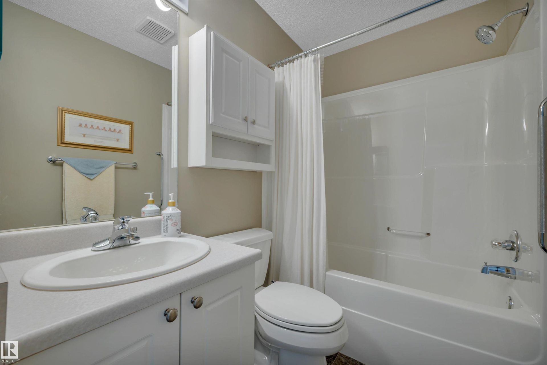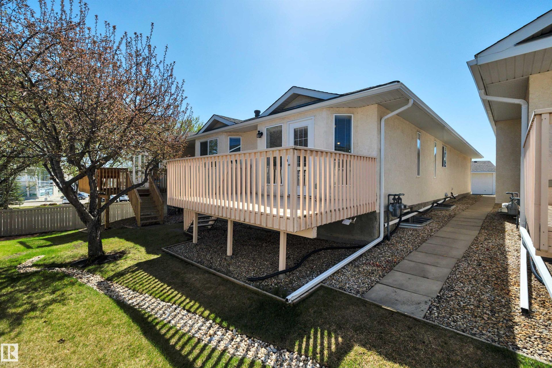 This bright and beautifully maintained half-duplex bungalow with attached double garage is situated in the sought after 55+ adults-only community, Miller Garden Estates. The open concept main floor features all that you need, including a large kitchen with pantry and ample counter space, a dining area, spacious living room, main floor laundry, along with 2 bedrooms and 2 full baths. The rear deck with built-in BBQ line makes entertaining a breeze. Relax in your primary bedroom with bay window, ensuite, and large walk-in closet. The unfinished basement offers a brand new hot water tank and large flex space for storage or large family gatherings. Easy access to the Anthony Henday, public transit, Clareview Recreation Centre, walking paths, and many shops and restaurants. You'll be close to all the action! Pet policy: up to 2 animals under 15" at the shoulder. Current condo fees only $395/mo.