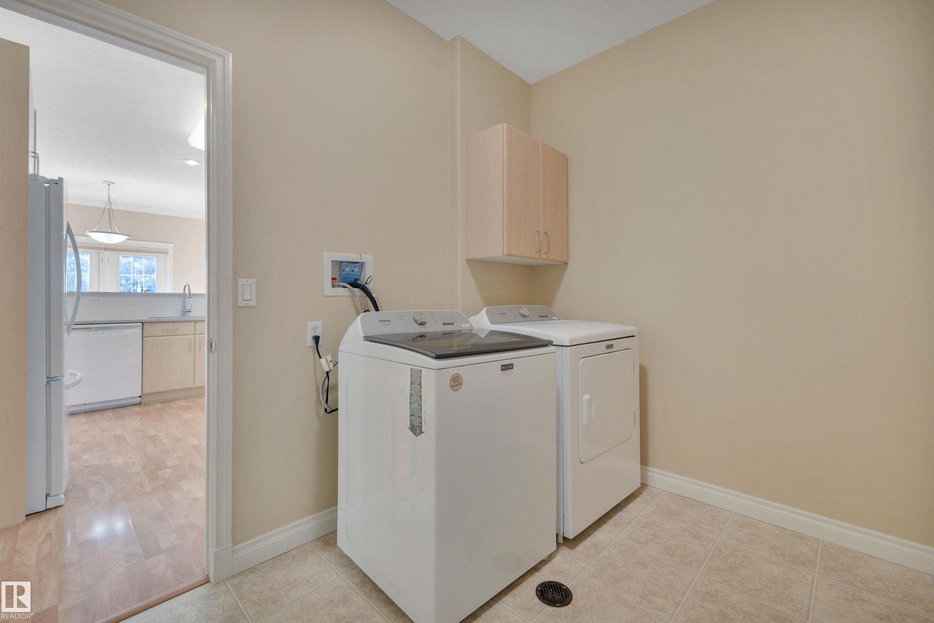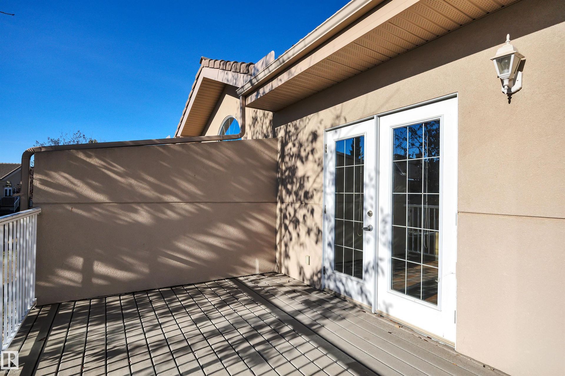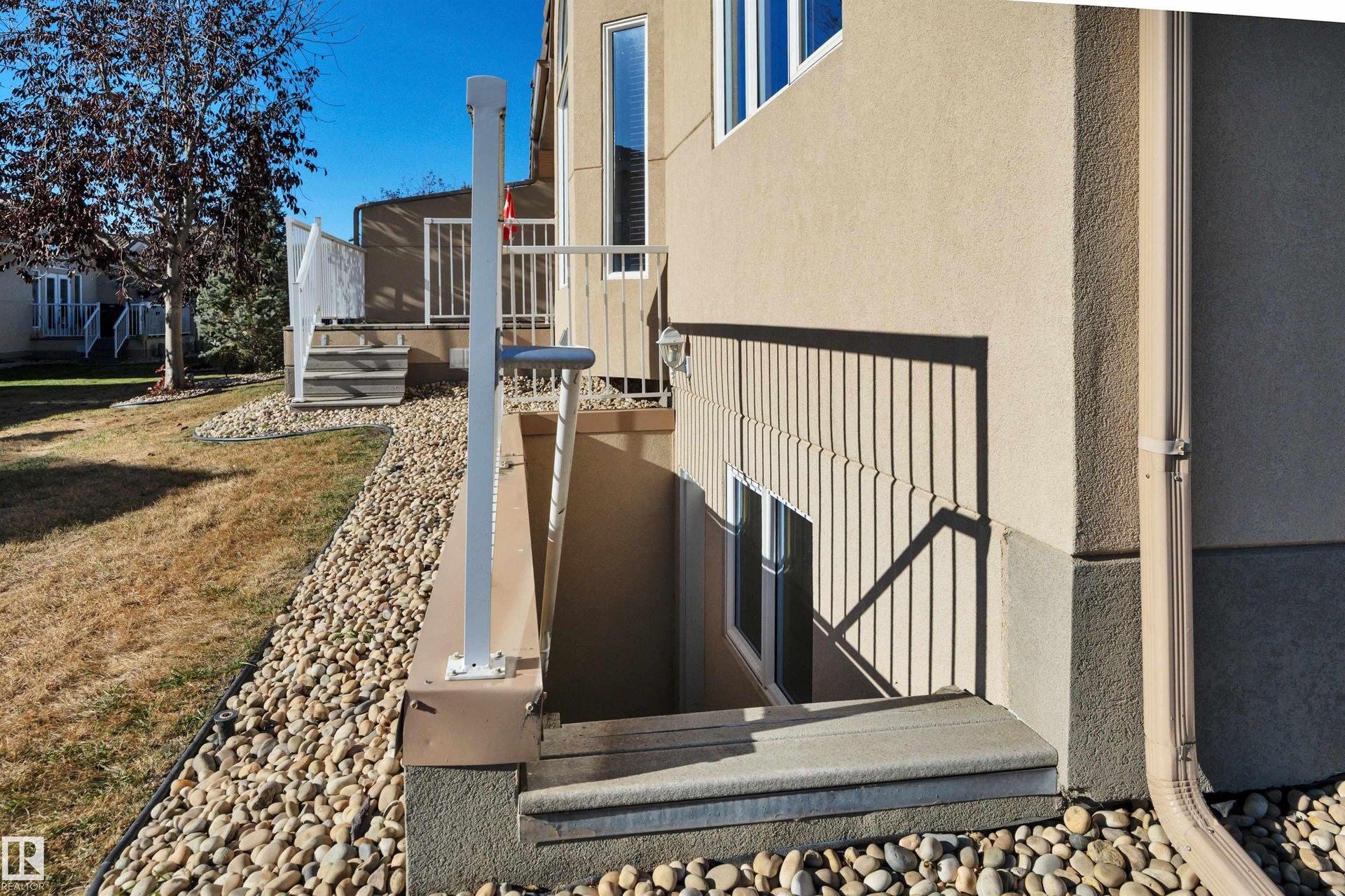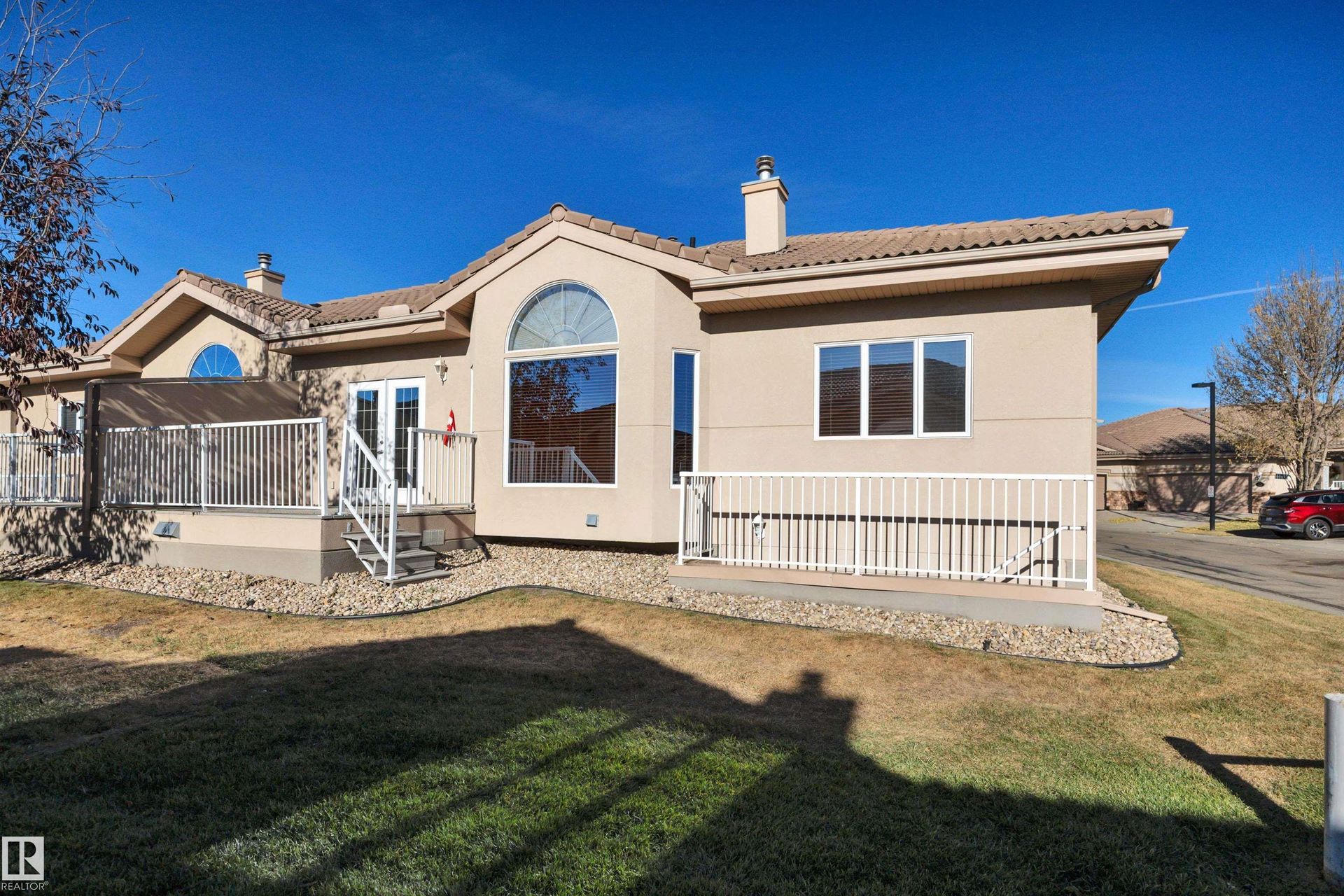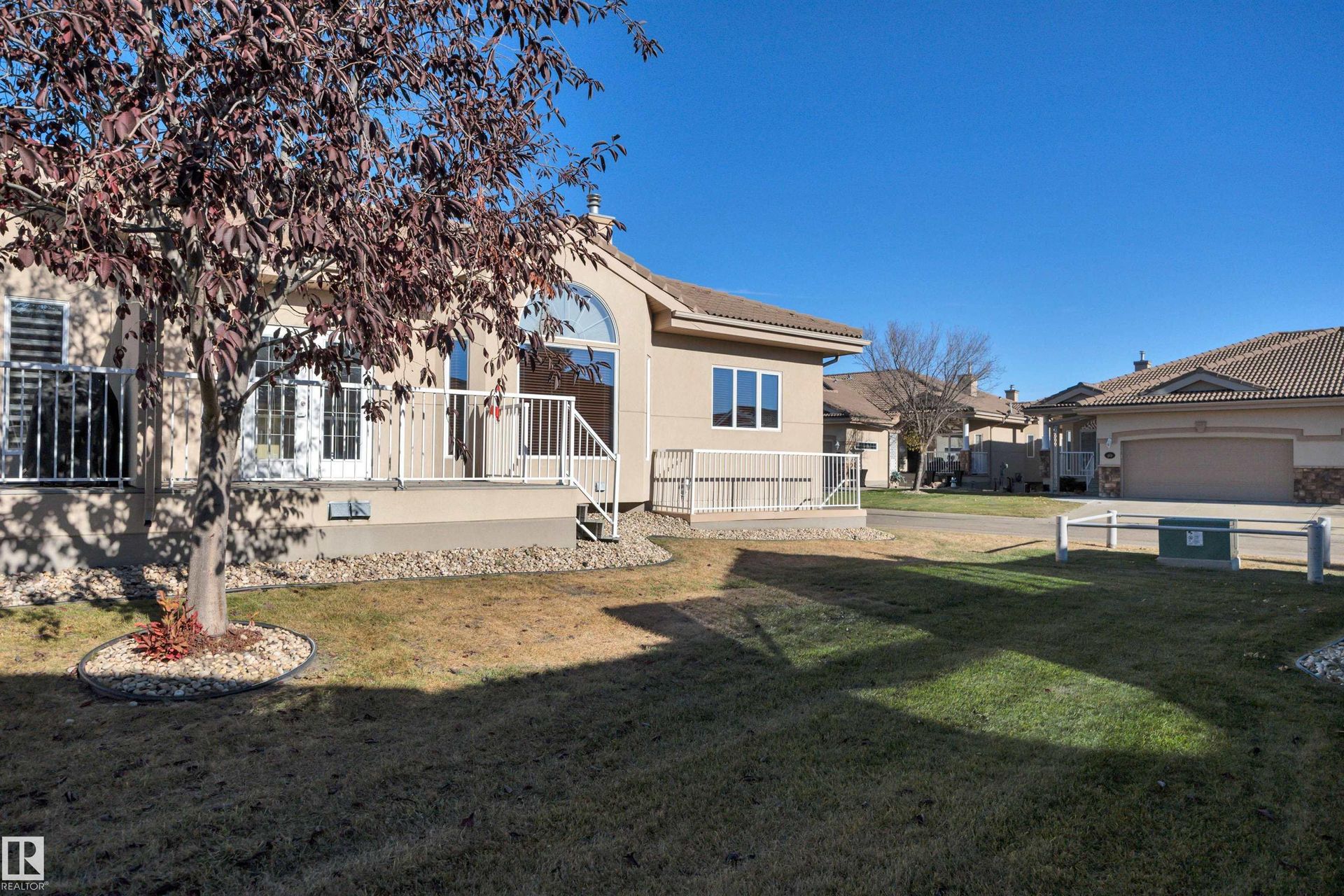 DOWNSIZING? EMPTY-NESTER? Carlton Villas on the Lake, one of Edmonton’s best 18+ adult BUNGALOW DUPLEX with acrylic stucco, irrigation, clay tile roofing. Close to shopping, public transport, walking trails, & Henday. Larger End Unit Condo is 1330sf of living space, with kitchen, living rm & dining rm all sharing one large space. Kitchen is a great functioning work space with lots of GRANITE counterspace & ample storage. Also able to look out onto the SOUTH BACKING green space off the deck while in the kitchen. Living rm is generous with gas fireplace with mantel & patio doors to the deck. Primary bedroom has massive walk in closet & spacious ensuite. Nice sized 2nd bd/den, spacious 4pc bath along with MAIN FLOOR LAUNDRY to round off the main floor. Basement is COMPLETELY DEVELOPMENT (+/-$100k 2016) with 3rd Bd, 4pc bathroom, & large rec room with the walkout to the backyard. PERFECT FOR GUESTS! Double garage is insulated WITH EXTRA LARGE DRIVEWAY. Complex is Pet friendly with low condo fees!