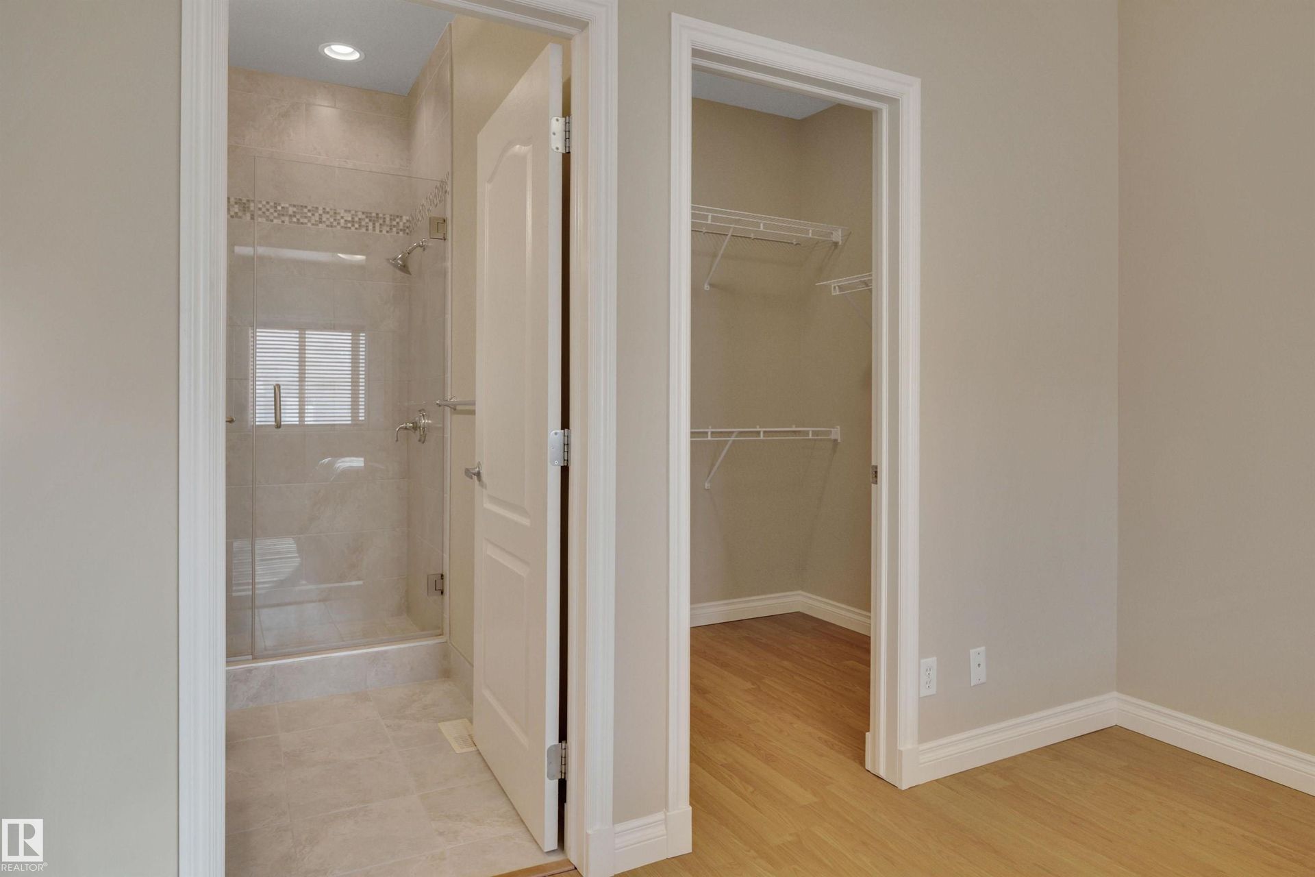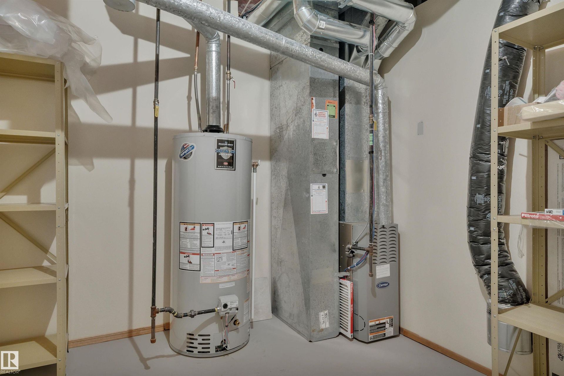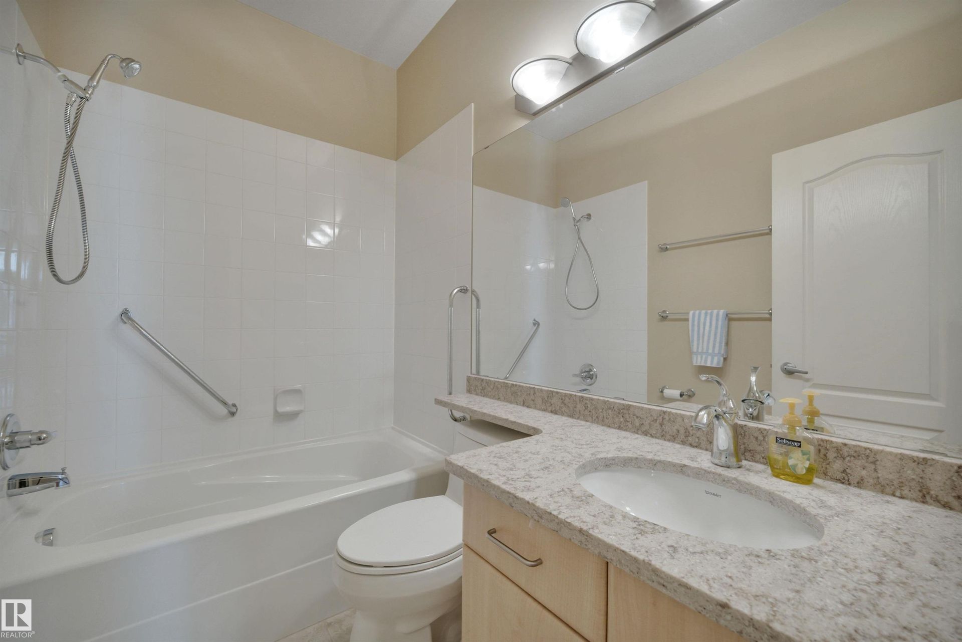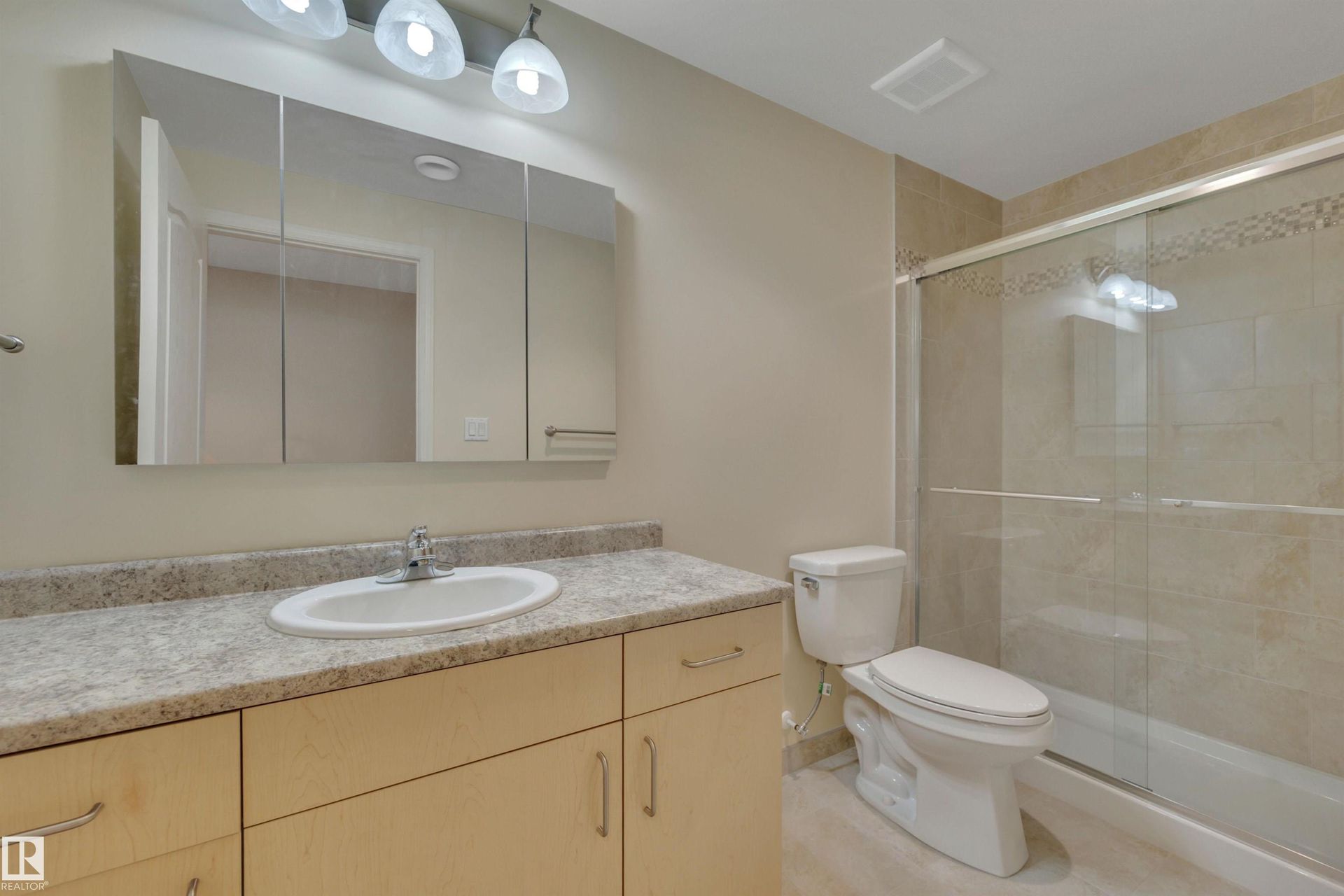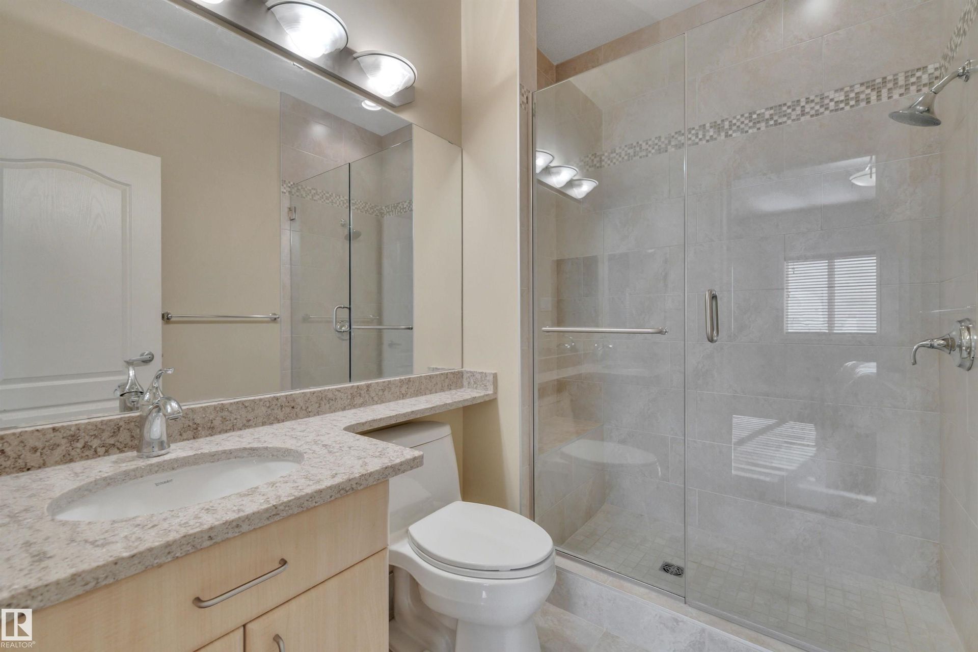 DOWNSIZING? EMPTY-NESTER? Carlton Villas on the Lake, one of Edmonton’s best 18+ adult BUNGALOW DUPLEX with acrylic stucco, irrigation, clay tile roofing. Close to shopping, public transport, walking trails, & Henday. Larger End Unit Condo is 1330sf of living space, with kitchen, living rm & dining rm all sharing one large space. Kitchen is a great functioning work space with lots of GRANITE counterspace & ample storage. Also able to look out onto the SOUTH BACKING green space off the deck while in the kitchen. Living rm is generous with gas fireplace with mantel & patio doors to the deck. Primary bedroom has massive walk in closet & spacious ensuite. Nice sized 2nd bd/den, spacious 4pc bath along with MAIN FLOOR LAUNDRY to round off the main floor. Basement is COMPLETELY DEVELOPMENT (+/-$100k 2016) with 3rd Bd, 4pc bathroom, & large rec room with the walkout to the backyard. PERFECT FOR GUESTS! Double garage is insulated WITH EXTRA LARGE DRIVEWAY. Complex is Pet friendly with low condo fees!