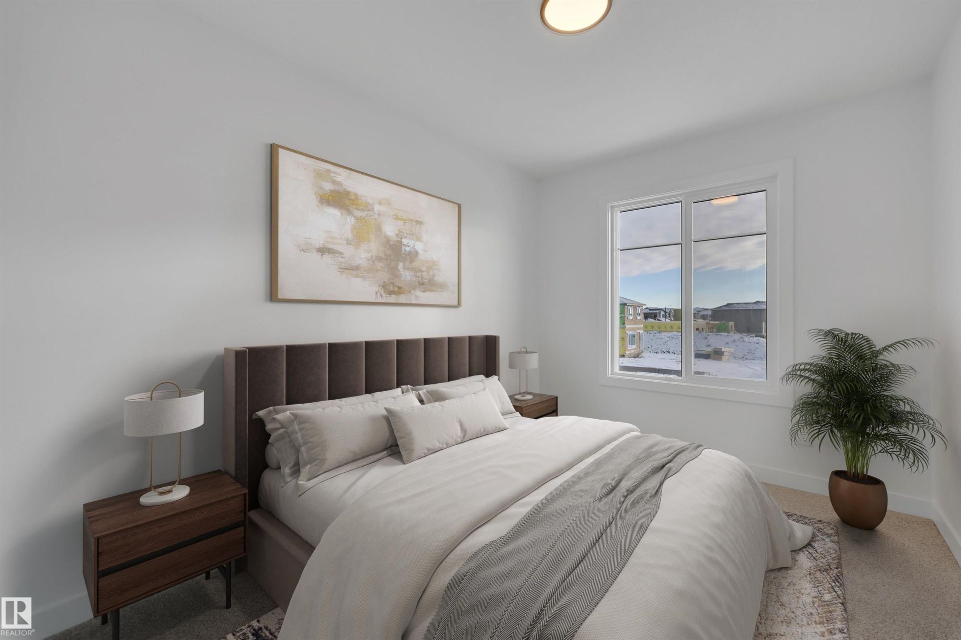 Introducing the Aera model, featuring more than 1933 square feet of thoughtfully designed living space. This lovely home includes 3 spacious bedrooms, 2.5 bathrooms, and a flexible bonus room that accommodates various needs. Upper level also has handy walkin laundry room on upper level. With a convenient side entrance, it opens up possibilities for future development and adaptable layouts. The open-concept design of the main floor seamlessly connects the living, dining, and kitchen areas, making it perfect for daily living and hosting gatherings. Kitchen features massive quartz island and well appointed walkin pantry. Nestled in the friendly Woodbend community, residents enjoy access to parks, walking trails, and nearby amenities, ensuring a lifestyle rich in comfort and convenience. Home backs on to Greenspace Walking Trail- no homes directly behind you. Close to Edmonton International Airport and Outlet Malls!