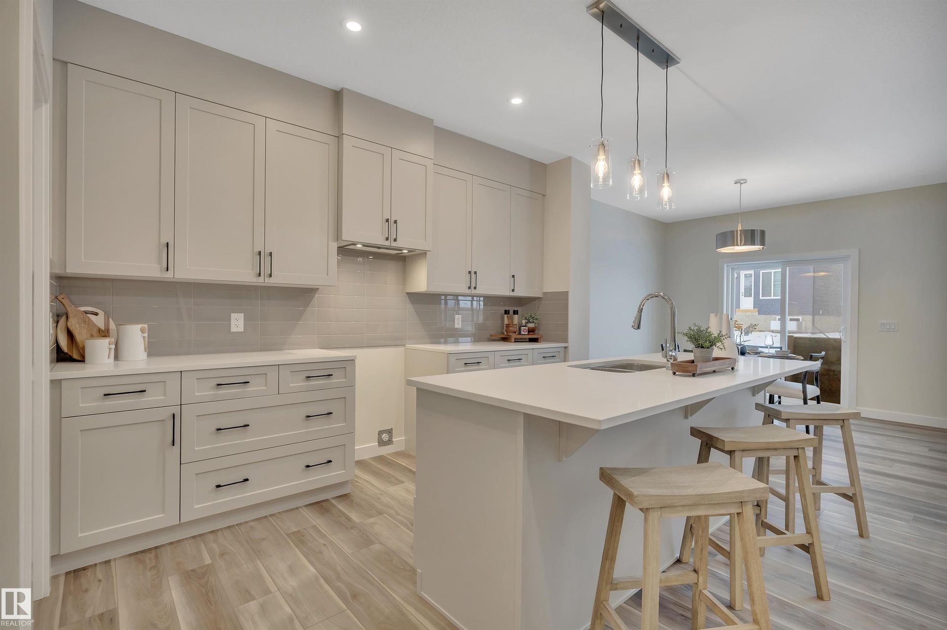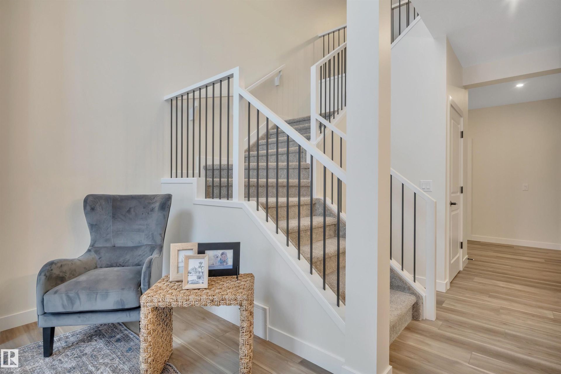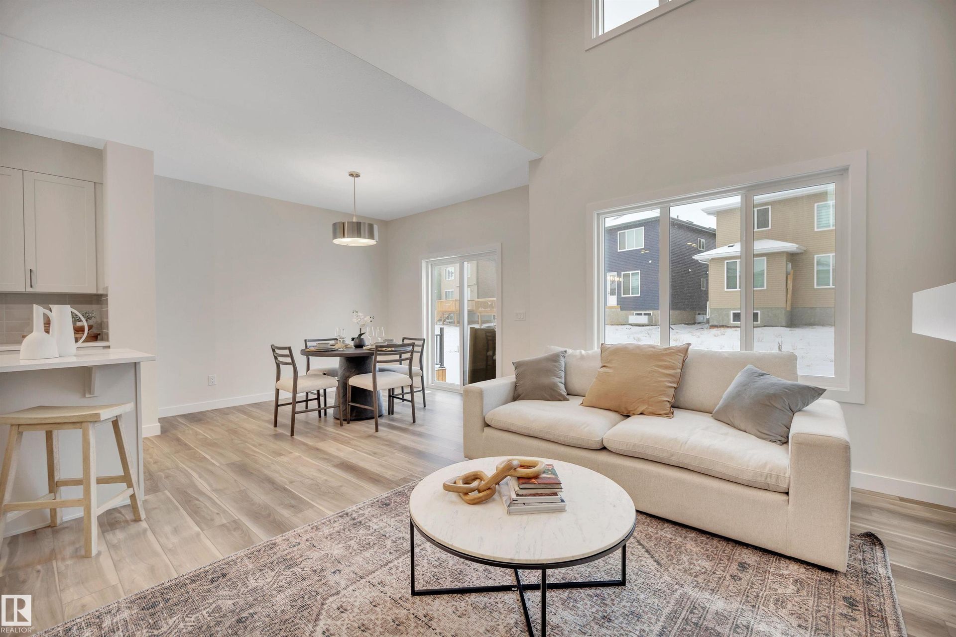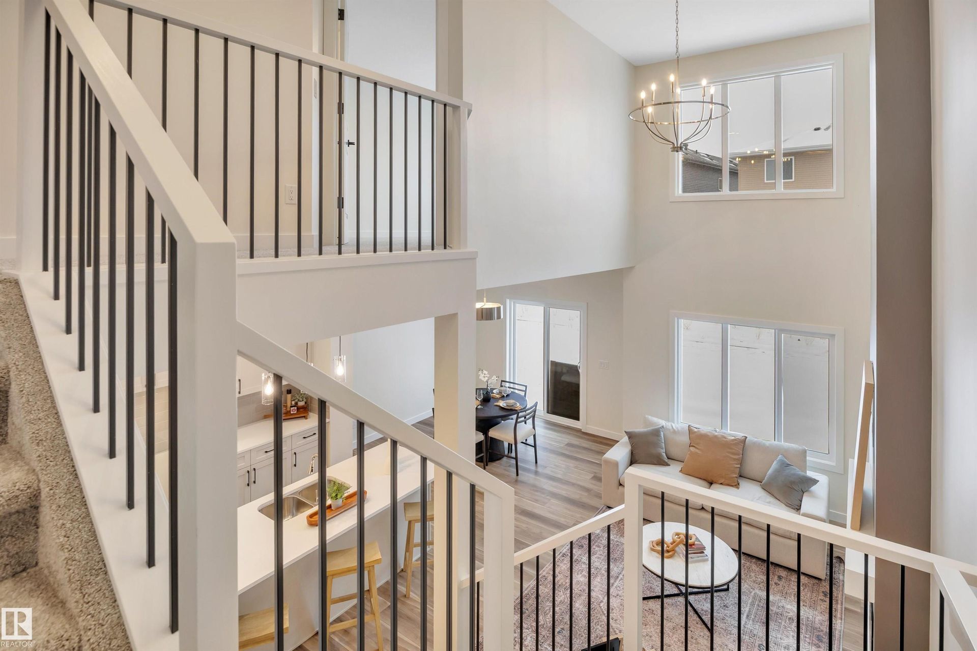 Victor by San Rufo Homes offers an inviting ambiance that welcomes you upon entry. Main floor features open design that flows effortlessly from the kitchen to dining nook & great room. Spacious island with eating ledge serves as the heart of the area, ideal for everything from morning meals to evening conversations. Aptly placed walk-thru pantry next to mudroom keeps kitchen tidy & simplifies grocery runs. Fireplace enhances the great room's charm, while the soaring ceilings bring an airy, bright feeling that connects to upper level. Second floor has versatile bonus room perfect for movie nights, gaming, & is nestled between the primary suite & other bdrms. Primary Bdrm showcases a walk-in closet & big ensuite with dual sinks, soaking tub, & shower. Other bdrms boast it's own walk-in closet & built-in study nook, creating designated areas for creativity. Full bath & laundry rm close to all bedrooms complete the layout. Conveniently located near Edmonton Int Airport, outlet malls, and Nisku.
