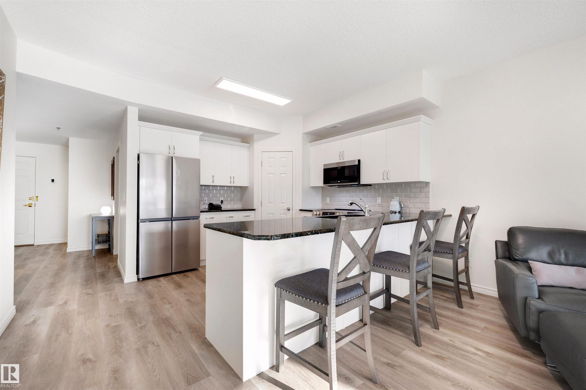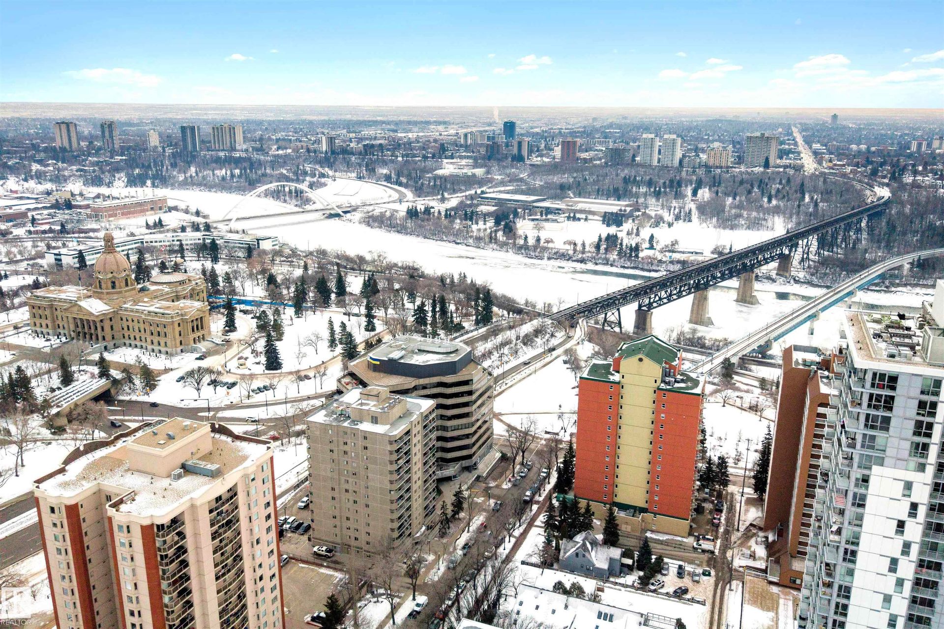 Welcome to Riverview Green and this bright, beautifully updated 2 bedroom (or 1 bedroom + den), 2 bath unit with stunning river valley views. This 100% owner-occupied, pet-friendly building is just steps from Downtown, the Legislature, and the High Level Bridge, providing unmatched convenience and lifestyle. The open-concept layout feels instantly inviting, featuring 9' ceilings, luxury vinyl flooring, air conditioning, a gas fireplace, in-suite laundry and storage, and newer triple-pane energy-efficient windows. Perfect for entertaining, the renovated kitchen is complete with granite countertops, newer stainless steel appliances, and modern LED lighting. The spacious primary suite includes an updated ensuite with double sinks and a separate shower. Enjoy year-round views of Ezio Faraone Park from your private balcony with a gas BBQ hookup. Amenities and features include a gym, social room, guest suite, storage locker, underground parking, plus a resident carwash and workshop. A must see!