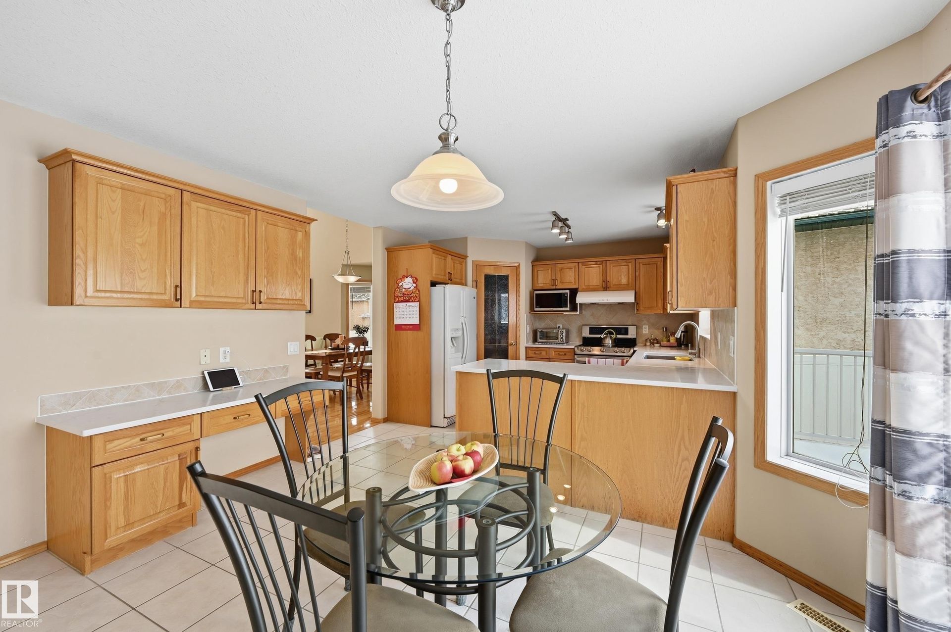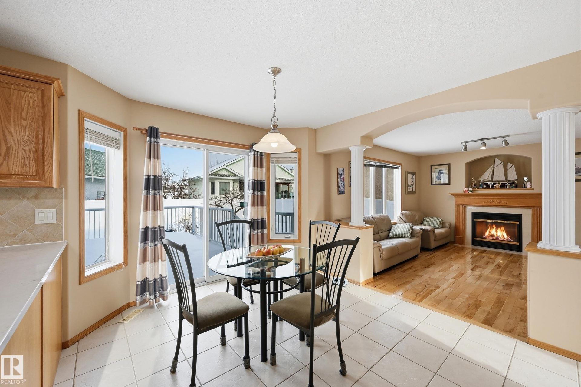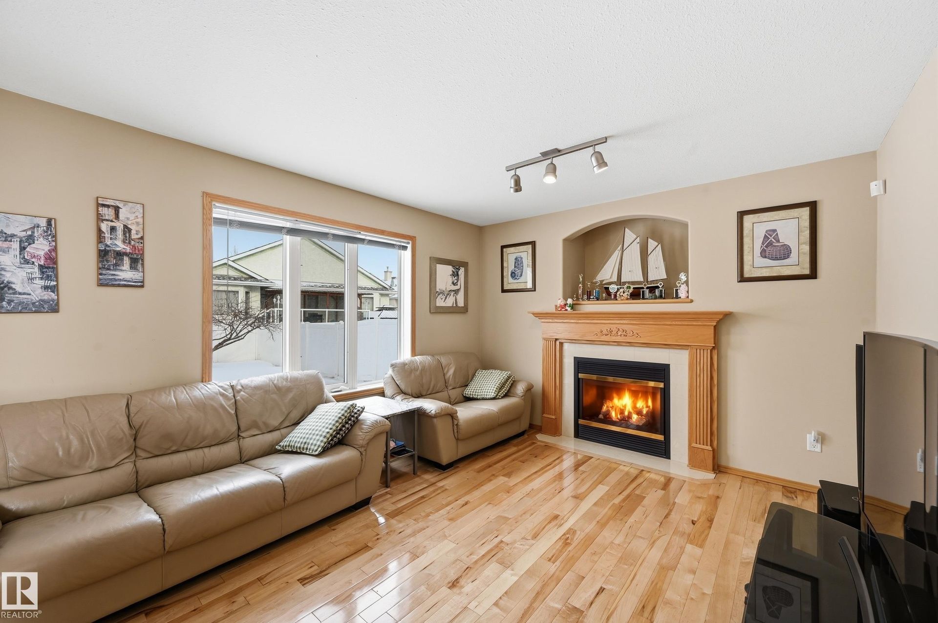 PRISTINE CONDITION by the ORIGINAL OWNERS, this Montorio Homes 2-storey with 2000sf+. Showcasing PRIDE OF OWNERSHIP & quality from a reputable EUROPEAN BUILDER. Main floor offers a bright living & dining rm with high ceilings, HARDWOOD flooring, & ceramic tile finishes, plus functional kitchen with peninsula & eating nook overlooking the MASSIVE backyard & COMPOSITE DECK. A comfortable family room with GAS FIREPLACE & MAINFLOOR BDRM—ideal for an elder parent/home office—plus a 2-piece bath & OVERSIZED GARAGE complete this level. Upstairs, LARGE primary suite features a walk-in closet & 5-piece ensuite, with 2 additional bdrms (one with walk-in closet) providing great space. The basement includes a craft/sewing area, a huge recreation room currently used as a dance studio with mirrored walls, bright laundry room, generous storage, & room to develop 5th bdrm. Ideally located close to St. JB School, walking distance to parks, & offering quick access to shopping at Northtown Mall/Nameo & Henday Ring Road.