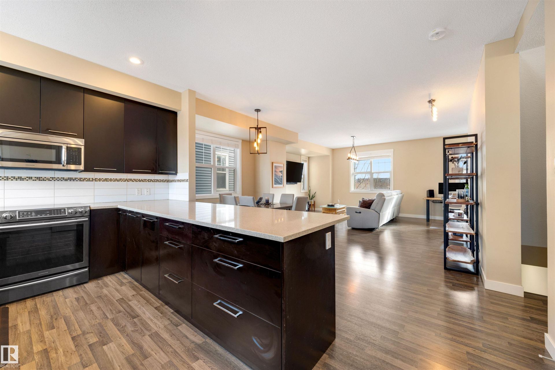 Welcome to the perfect Lakefront End Unit with a rare 3 Bedroom + Home Office layout — the largest floor plan in the complex! With sunny South-facing Lake Views from almost every room, this nearly 1,700 sqft home with a Double Garage could be the opportunity you've been waiting for. This unique XL floor plan even has a hard-to-find main floor Home Office, Gym or Potential 4th Bedroom! Being an end unit, there are loads of windows added to the side, making the home extra bright and airy! Upgrades include Central Air Conditioning, 9' Ceilings, Black Stainless Steel Appliances, Quartz Counters and more! Upstairs you'll find a great 3 bedroom layout, including a large primary suite — with Two Closets, a great ensuite and unobstructed views of Poplar Lake. Plus, enjoy the convenience of rare Upstairs Laundry! This home is located in one of North Edmonton's top family communities, and is the closest community to CFB Edmonton — with plenty of walking trails, parks, and schools within minutes. Welcome home!