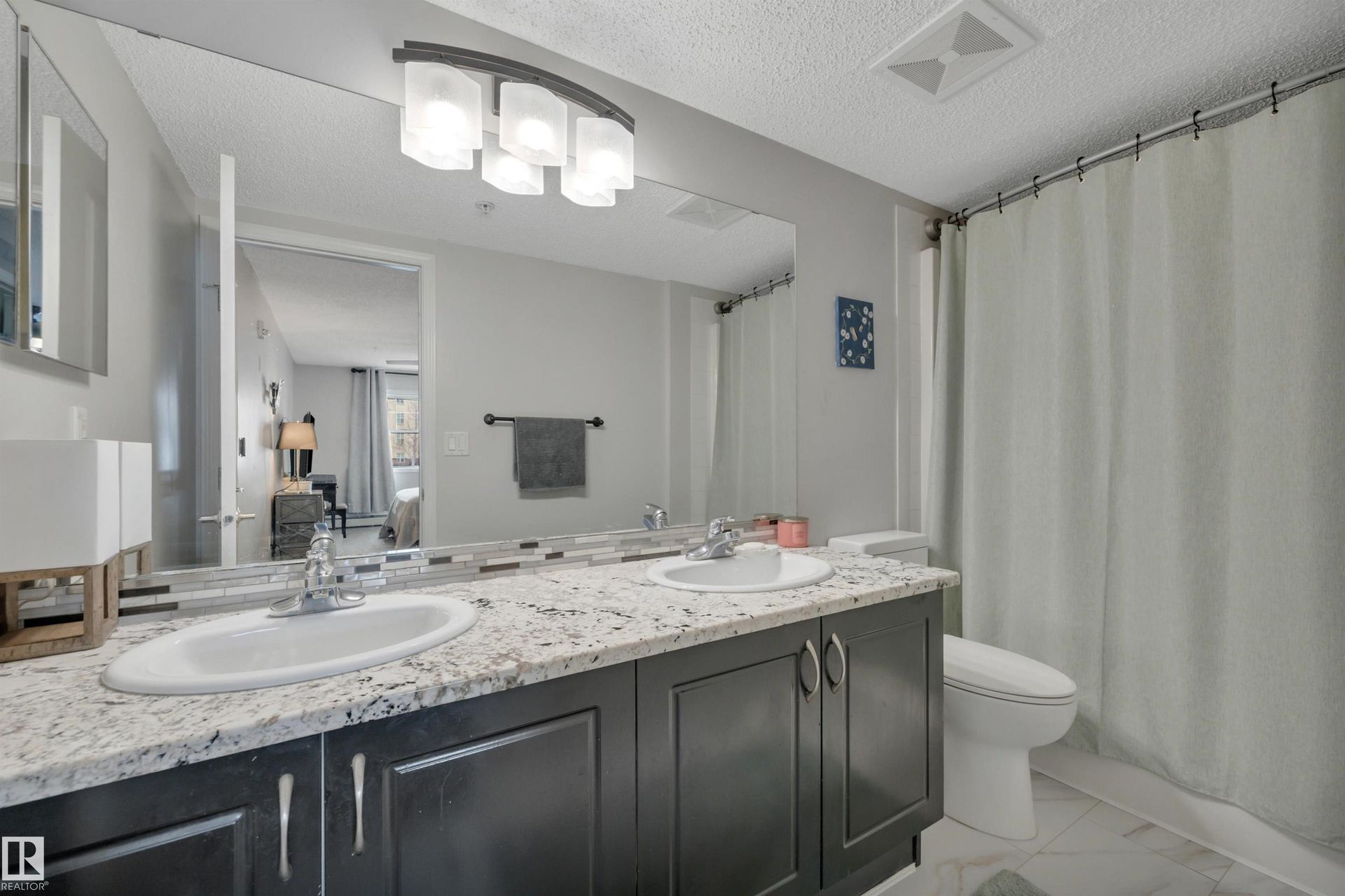 Welcome to Rutherford Village! This updated and rare 3 BEDROOM condo, with underground parking and prime Rutherford location, is available for a quick possession. The new vinyl floors & carpet welcome you into the open concept living space. Enjoy cooking in your stunning kitchen with stainless steel appliances, granite countertops, new cupboard doors, spacious island, and dining area. Relax with family and friends in the large living room and on the ground floor balcony, with a gas line for the BBQ. The oversized primary suite includes a walk-in closet and 5-piece ensuite with double vanity, while the additional 2 bedrooms and 3-piece main bath are perfect for a home office or growing family. Convenience is key with the in-suite laundry and generous storage cage. You'll be in the middle of all the action with prime access to public transit, Anthony Henday, Windermere, and South Edmonton Common. A must see!