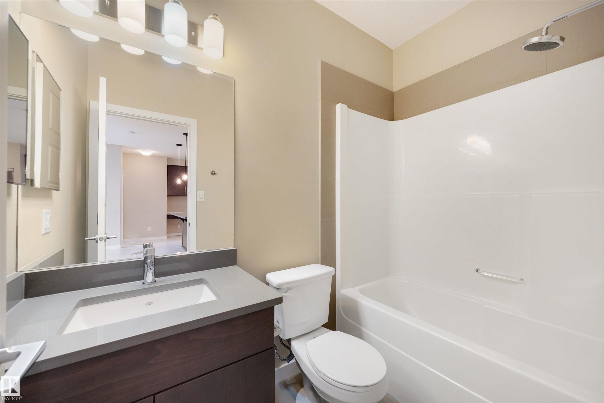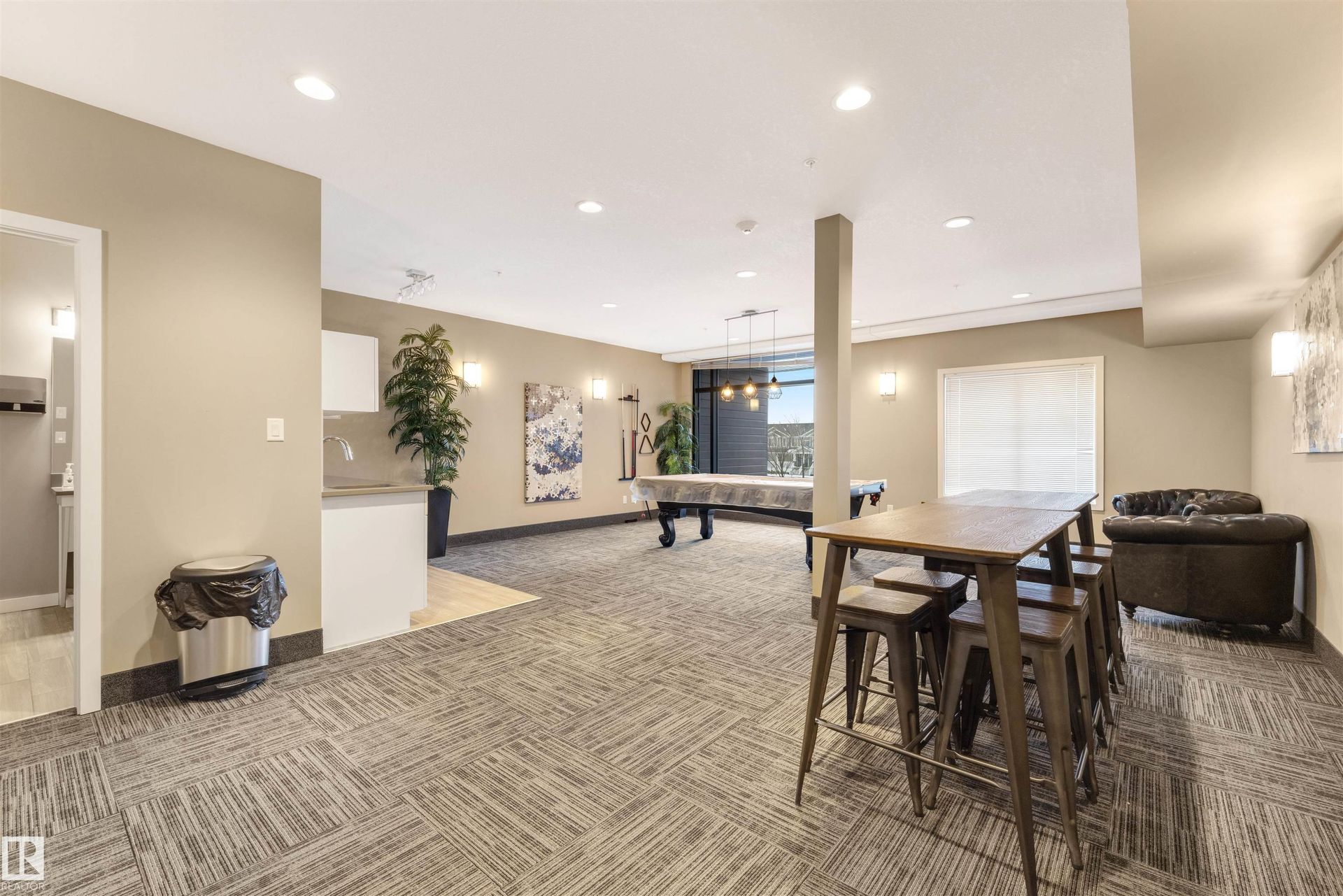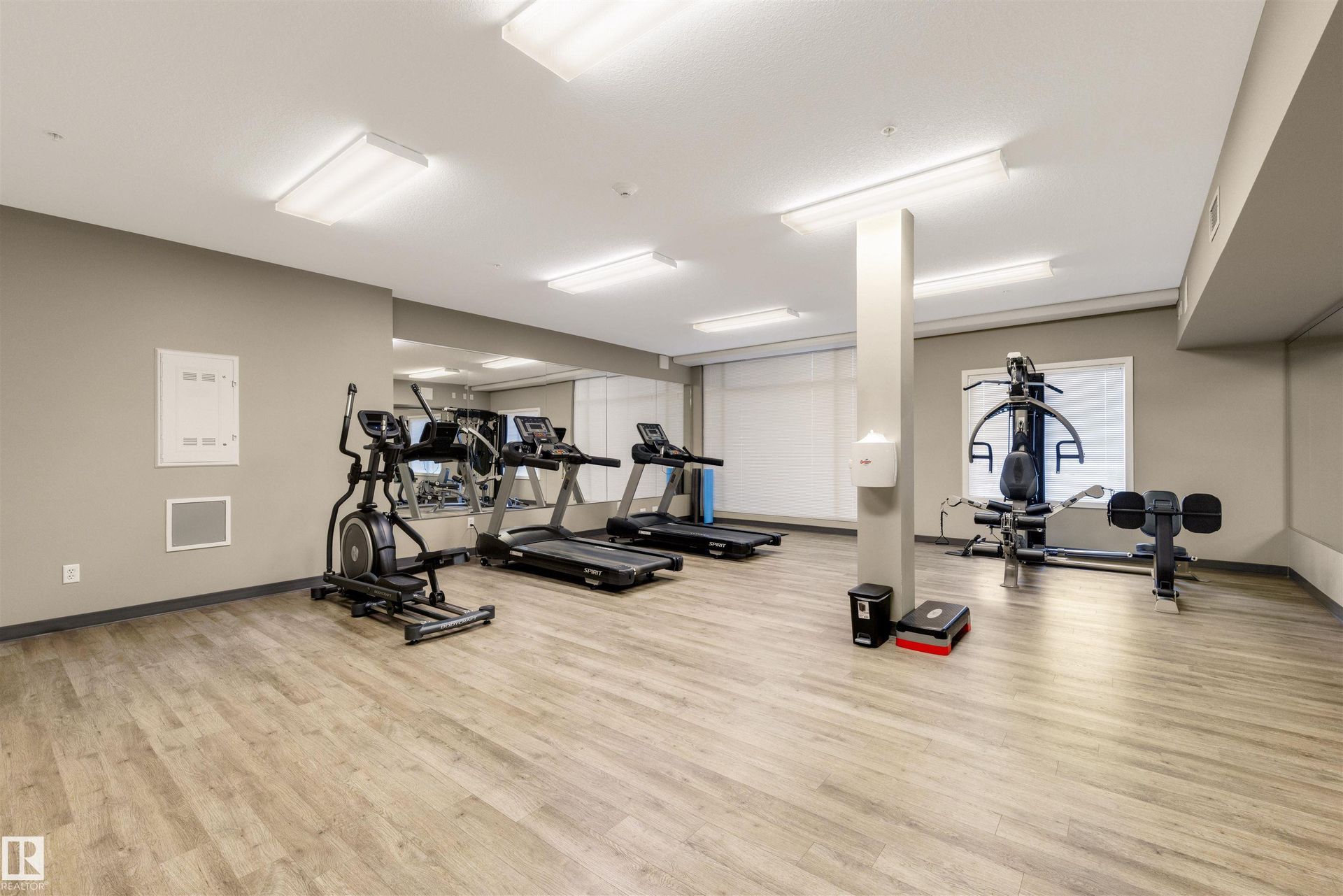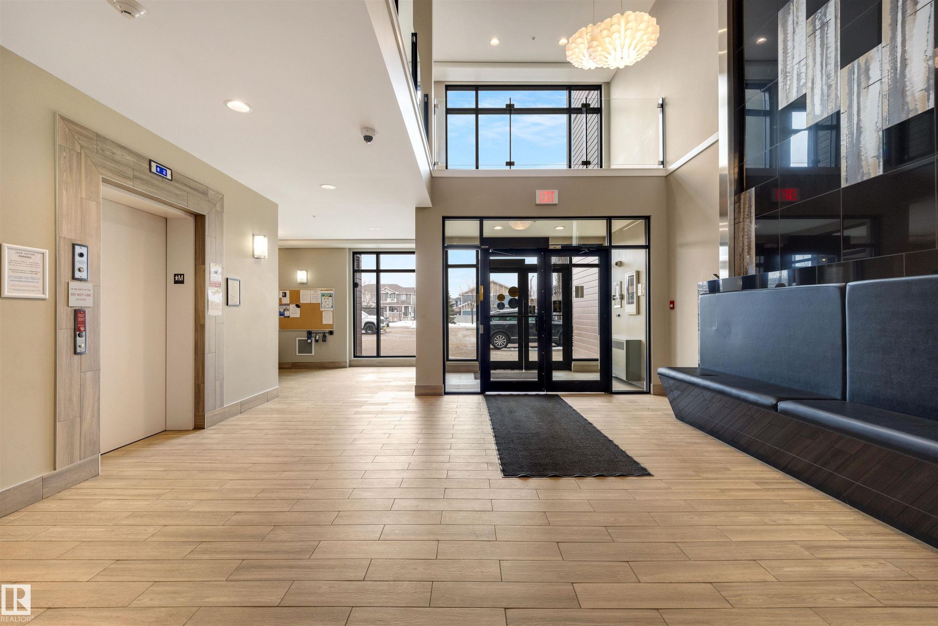 Ideally located, TOP floor, and move-in ready- this 2 bed 2 bath unit checks all the boxes! The unit comes with the convenience of in-suite laundry and TWO titled parking stalls (Underground with Storage + Surface with plug-in). Have peace of mind knowing the unit was immaculately maintained by the original owners and situated with minimal shared walls. Enjoy all day sunshine from your unobstructed SOUTH facing balcony, filling the unit with natural light. The modern kitchen features Quartz countertops, Stainless Steel Appliances, a generous Pantry, and an Island with eat-up bar. The open concept design flows seamlessly into a bright living room and designated workspace, along with 4-piece bath. The spacious primary bedroom includes dual closets and a 3-piece bath. Amenities include a GYM, SOCIAL ROOM, and GUEST SUITE. This desirable building backs parks, ponds, and walking trails- along with quick access to the Anthony Henday, Whitemud, Costco, River Cree, Lewis Estates Golf Course, and so much more!