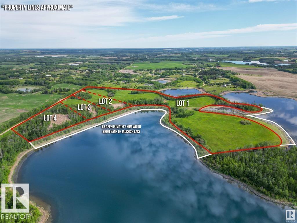 Create your own private lakefront paradise on Lot 3 at Jackfish Lake, just 45 minutes from downtown Edmonton and only 20 minutes from Spruce Grove. Spanning 5.3+/- acres with 355 feet of shoreline, this lot offers direct access to one of the cleanest lakes in Alberta. The quick drop-off in water depth makes it ideal for watersports and a shorter dock. The gentle slope of the land offers incredible lake views from multiple vantage points, with some south-facing exposure providing beautiful natural light throughout the day. With power and gas available to the property, this lot is ready for development and provides endless potential. Enjoy peaceful mornings and spectacular sunsets at this prime lakeside location.