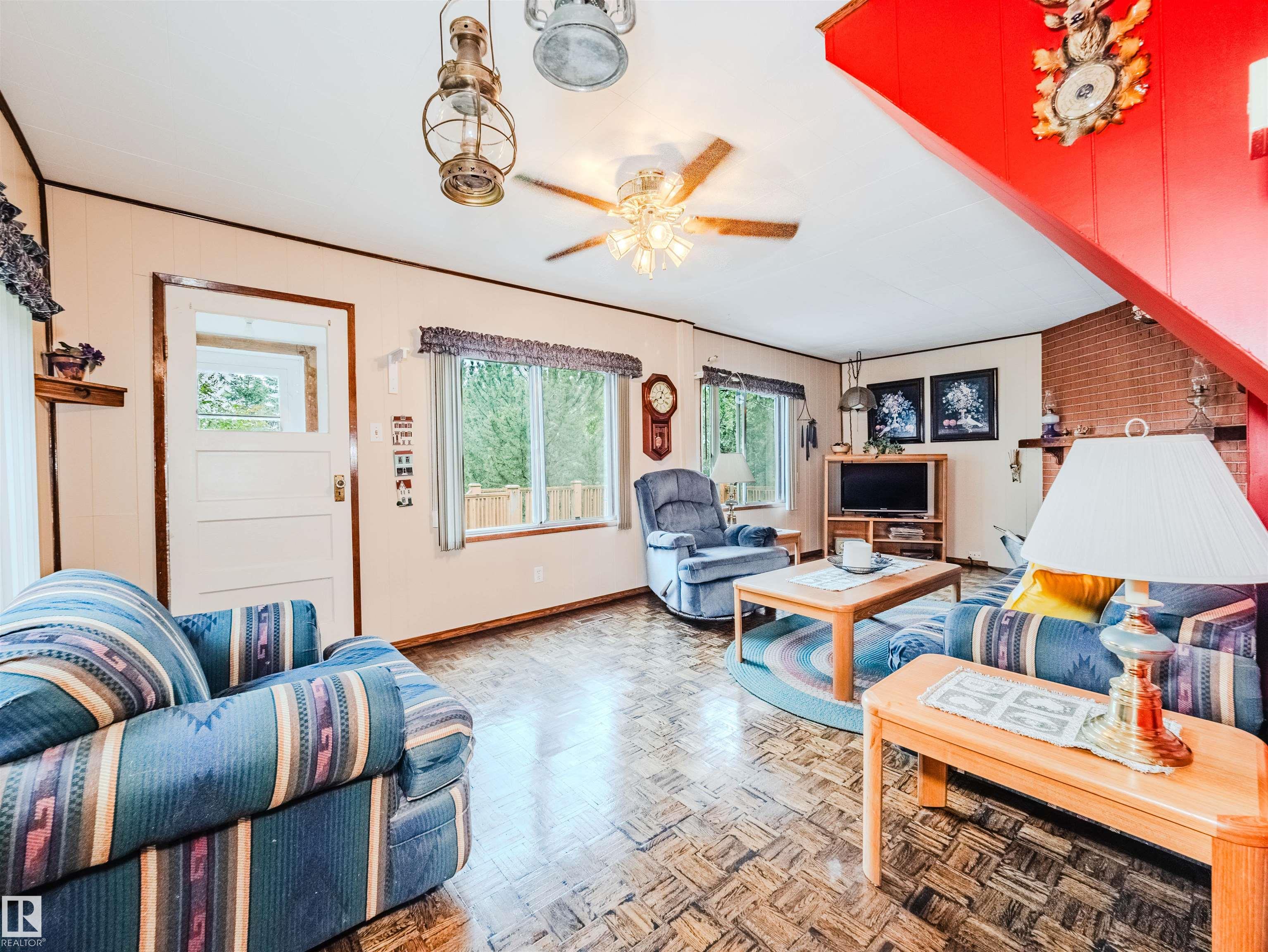 Welcome to this amazing private oasis! Did you need somewhere to enjoy less than an hour to Edmonton? These properties in Whitewood Sands do not come available very often! This property has one primary bedroom on the main floor with a sliding door to the deck and view of your treed backyard. The landscaping here will bring anyone joy. It has an updated kitchen and a good sizing living space for you to enjoy. The loft space is unfinished for your imagination to run wild and a finished basement as well. The property has its own sauna for those days of relaxing, multiple sheds for storage and tons of space for you to invite your family and friends. This all season property is waiting for you to call it home.