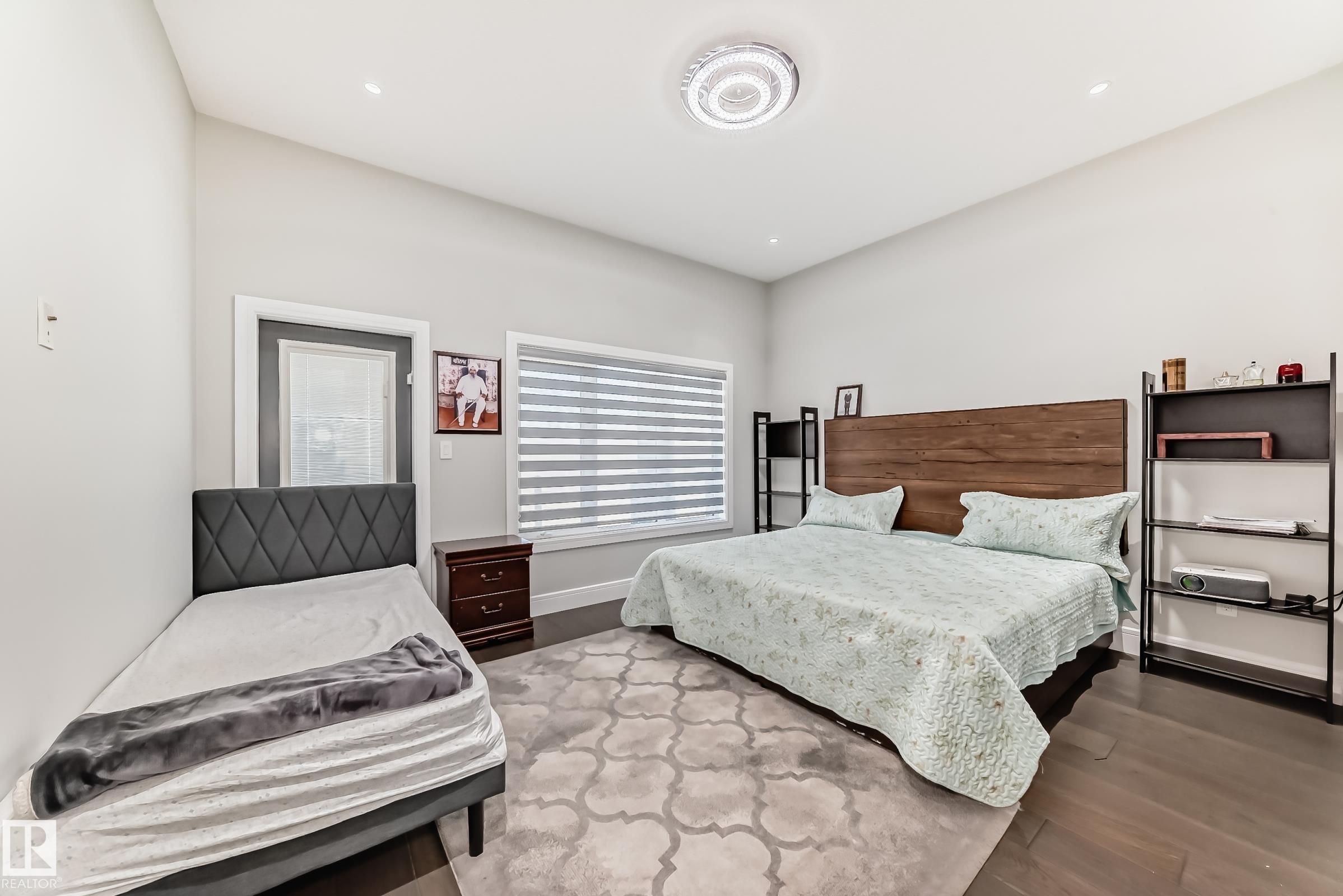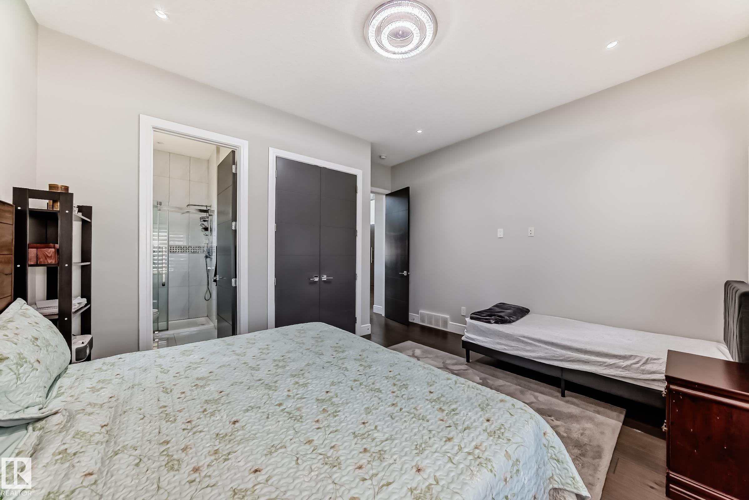 Stunning 5-Bedroom Home on Over 2 Acres of Serene Sherwood Park Cul-de-Sac in beautiful subdivision of Crimson leaf, this impressive two-story residence is on private, tree-lined land, offering the perfect blend of peaceful country living and modern convenience. Boasting an elevator, 5 spacious bedrooms, this home is designed with family and entertaining in mind. Main floor offers full size bedroom with full washroom, living room, open kitchen concept, official dinning, den and a spice kitchen, The heart of the house features a grand family room with soaring ceilings, abundant natural light, and a cozy fireplace—ideal for gathering with loved ones. 2nd floor with open media room, grand ensuit to primary bedroom with three additional bedrooms all with attached full bath suites. The walkout basement is open for future development, providing additional living space and direct access to nature.