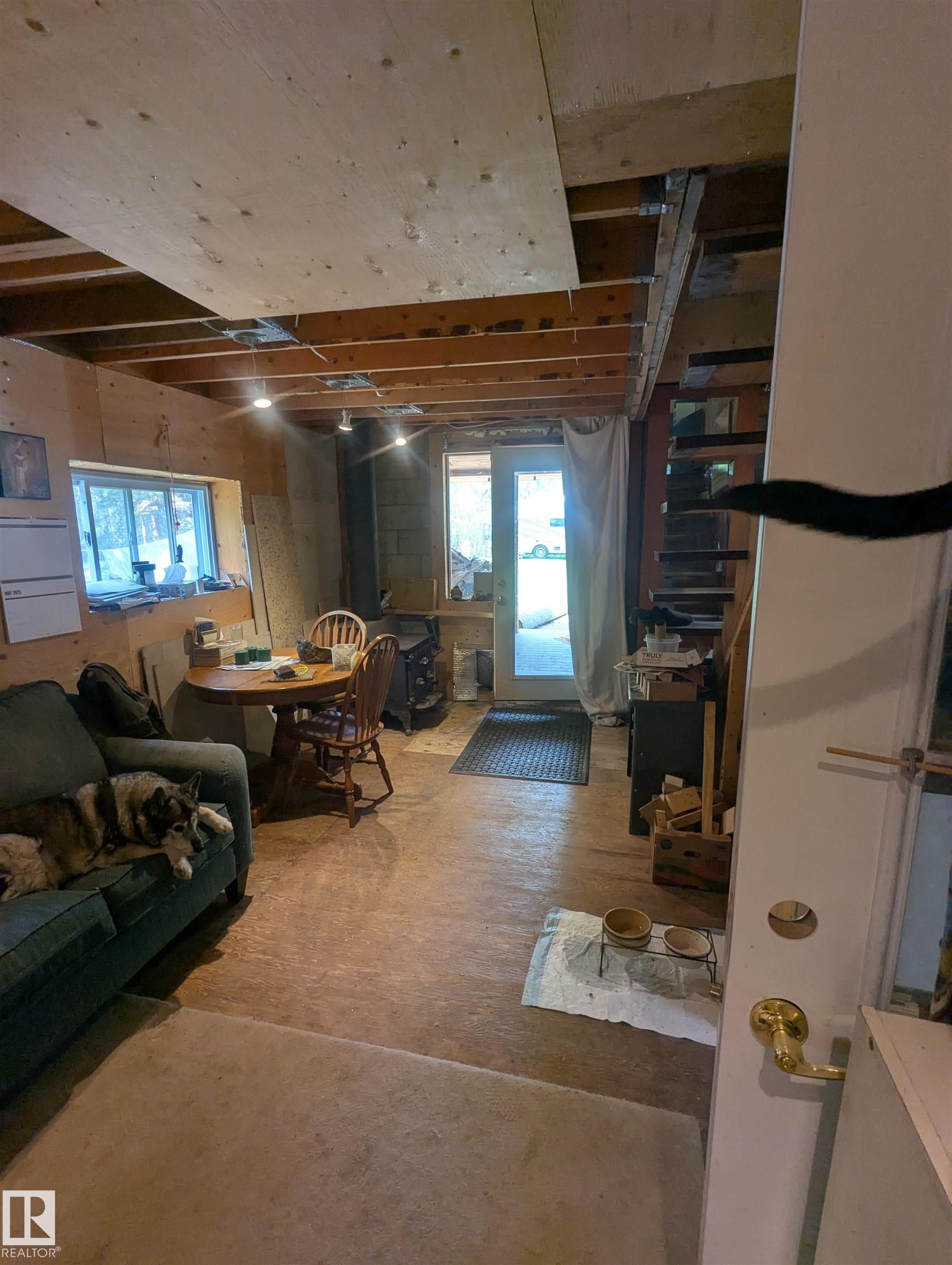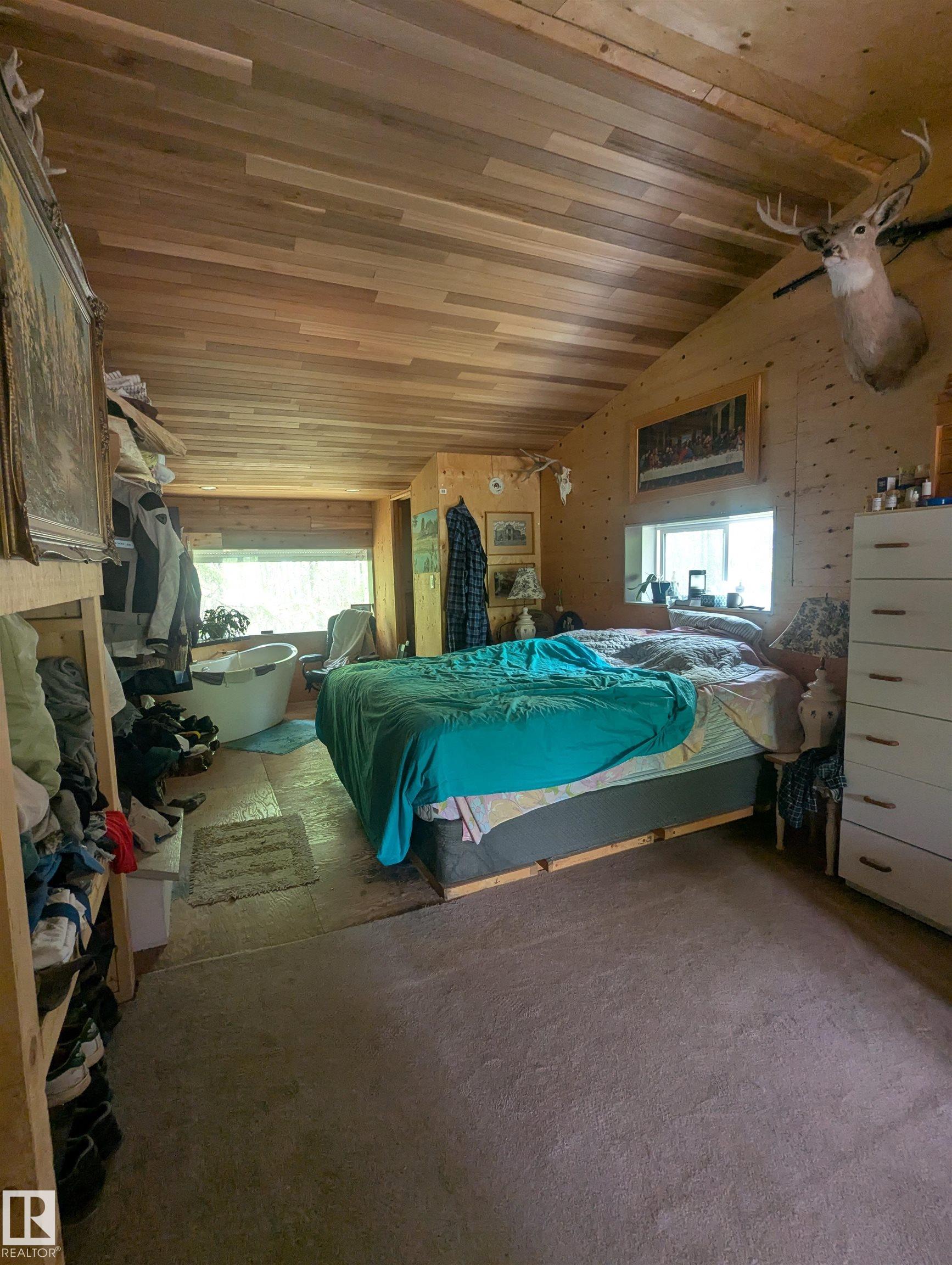 Outdoor and nature enthusiasts dream! Massive (approx 30'x34', 15' ceiling) heated shop, with second level mezzanine. Living quarters partitioned in shop (approx 12'x34') feature kitchen and living space plus 2-piece bath on lower level. Second level of living space has vaulted ceilings, set up with bedroom, full bath, and additional seating space. SEE DRAWINGS IN PHOTOS! Living space heated with wood stove or natural gas fireplace. Mezzanine space perfect for office, work benches, and has separate bedroom space. Shop building has natural gas furnace, water tank, water heaters for hot water supply, washer/dryer, grey-water system, and septic tank. Property also has 1-bedroom cottage with electric heat and wood stove, and is fully fenced with page wire. Approx 350 m from crown land, snowmobile trails, horse riding areas, hunting possibilities, bird/wildlife watching, close to South Cooking Lake recreation areas.