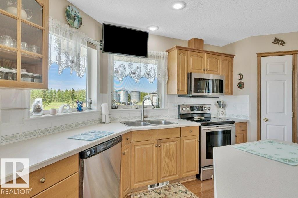 LOCATION!!! EXECUTIVE BUNGALOW w/TRIPLE ATTACHED GARAGE on 43 ACRES located only 1 MILE from EDMONTON CITY LIMITS! 2700 sq ft DETACHED SHOP with 16' CEILINGS! Oversized shop doors are 16' wide x 14 high! ORIGINAL OWNER & CUSTOM BUILT QUALITY! Spacious 4 BEDROOM MAIN FLOOR complete with Primary ENSUITE & HUGE WALK IN CLOSET! Open concept throughout with TONS OF NATURAL LIGHT w/ MANY LARGE WINDOWS! Wall to wall HARDWOOD, MAIN FLOOR LAUNDRY w/ MUDROOM, + cozy GAS FIREPLACE! The list goes on w/ large South facing MAINTENANCE FREE DECK, nearly 1200 sq ft OVERSIZED ATTACHED GARAGE w/floor drain. Recent upgrades include 50 YEAR ROOF (2023), 42'x64' METAL CLAD SHOP w/STEEL ROOF (2013), & kitchen appliances + lighting (2024). Outside you will LOVE the MATURE LANDSCAPING, large machine storage shed, large pond for winter hockey rink, gently rolling landscape, and most of all FREEDOM + PRIVACY on the doorsteps of the City with PAVEMENT ALL THE WAY! Only 5 mins from all amenities in BEAUMONT & SOUTH EDMONTON!