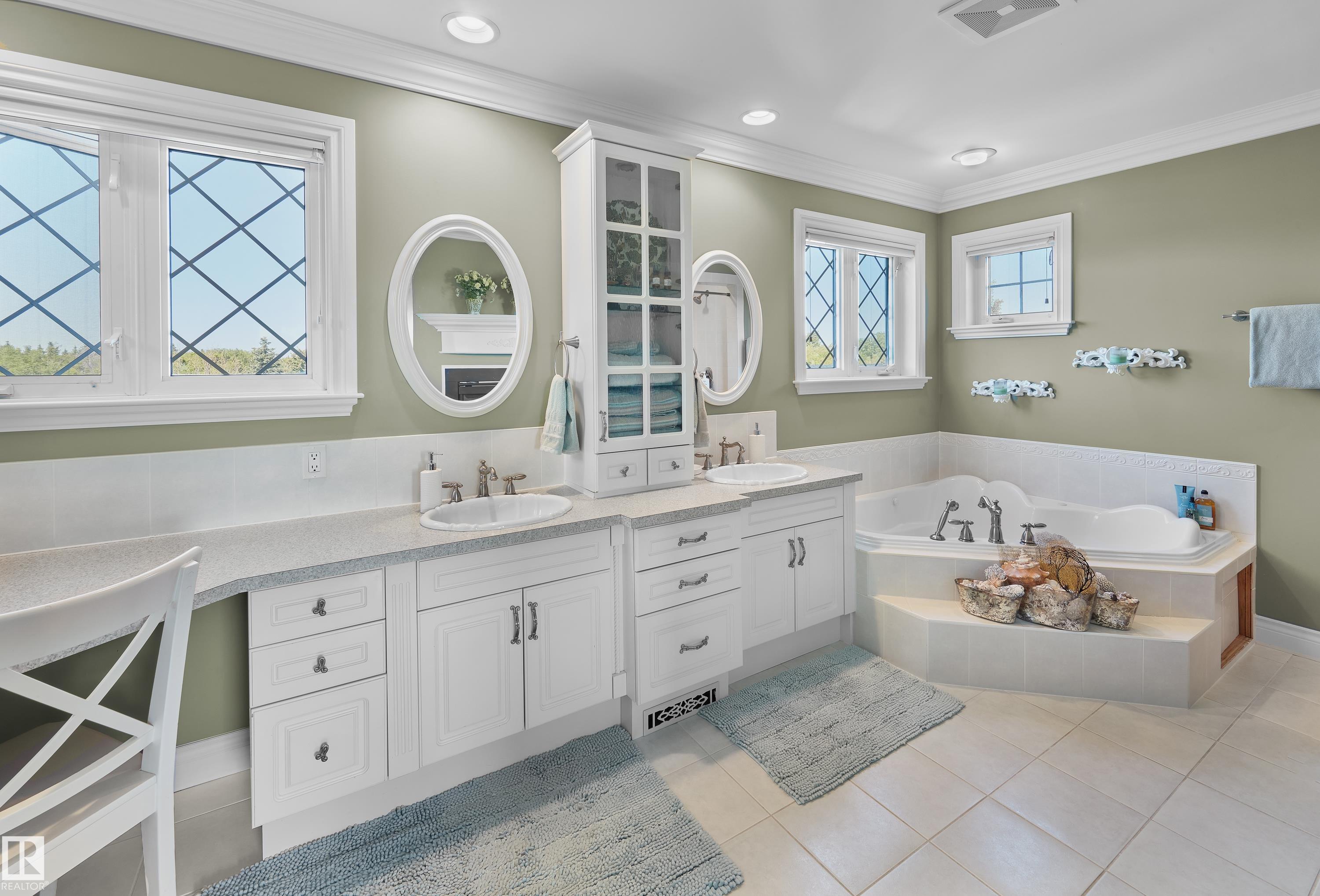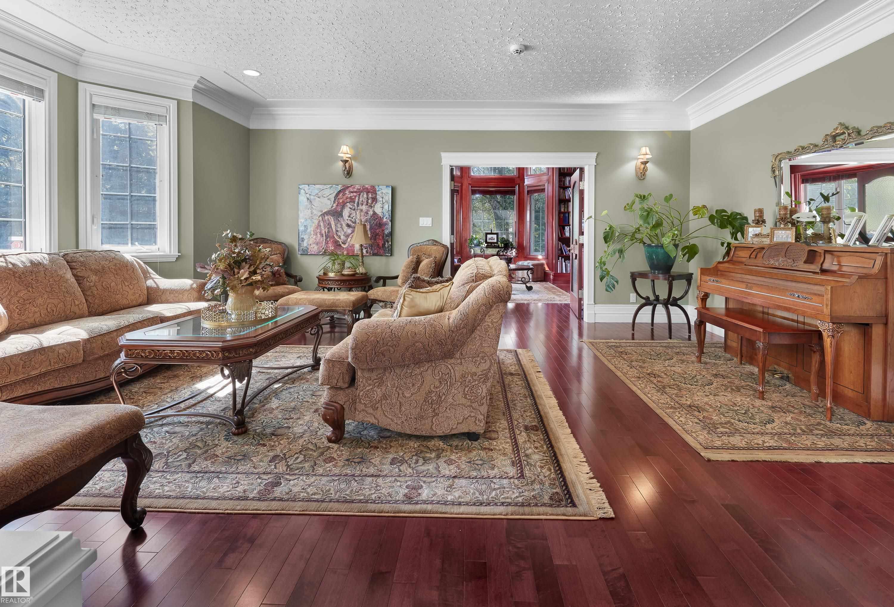 Discover the ultimate luxury escape in this one-of-a-kind six thousand plus SqFt custom home, set on 2.04 acres in the Barry Hill subdivision, minutes from Sherwood Park. This entertainer’s dream, with six bedrooms, 4.5 bathrooms, welcomes you with striking curb appeal and meticulously manicured landscaping as you arrive along the paved driveway. Inside, a grand staircase, exquisite finishings, and ten-foot ceilings create an atmosphere of sophistication and warmth. The separate library, with twelve-foot ceilings, a gas fireplace, and custom woodwork, is a sanctuary for quiet moments. The gourmet kitchen features an abundance of cabinetry, granite countertops, and generous pantry. Upstairs, discover an expansive primary suite retreat with dual walk-in closets and a grande five-piece ensuite. Downstairs, the heated basement includes a bedroom, full theatre room, kitchen, recreation area, exercise room, and an incredible twenty-foot high gymnasium, offering a lifestyle of grandeur, comfort and tranquility!